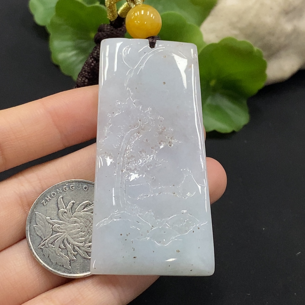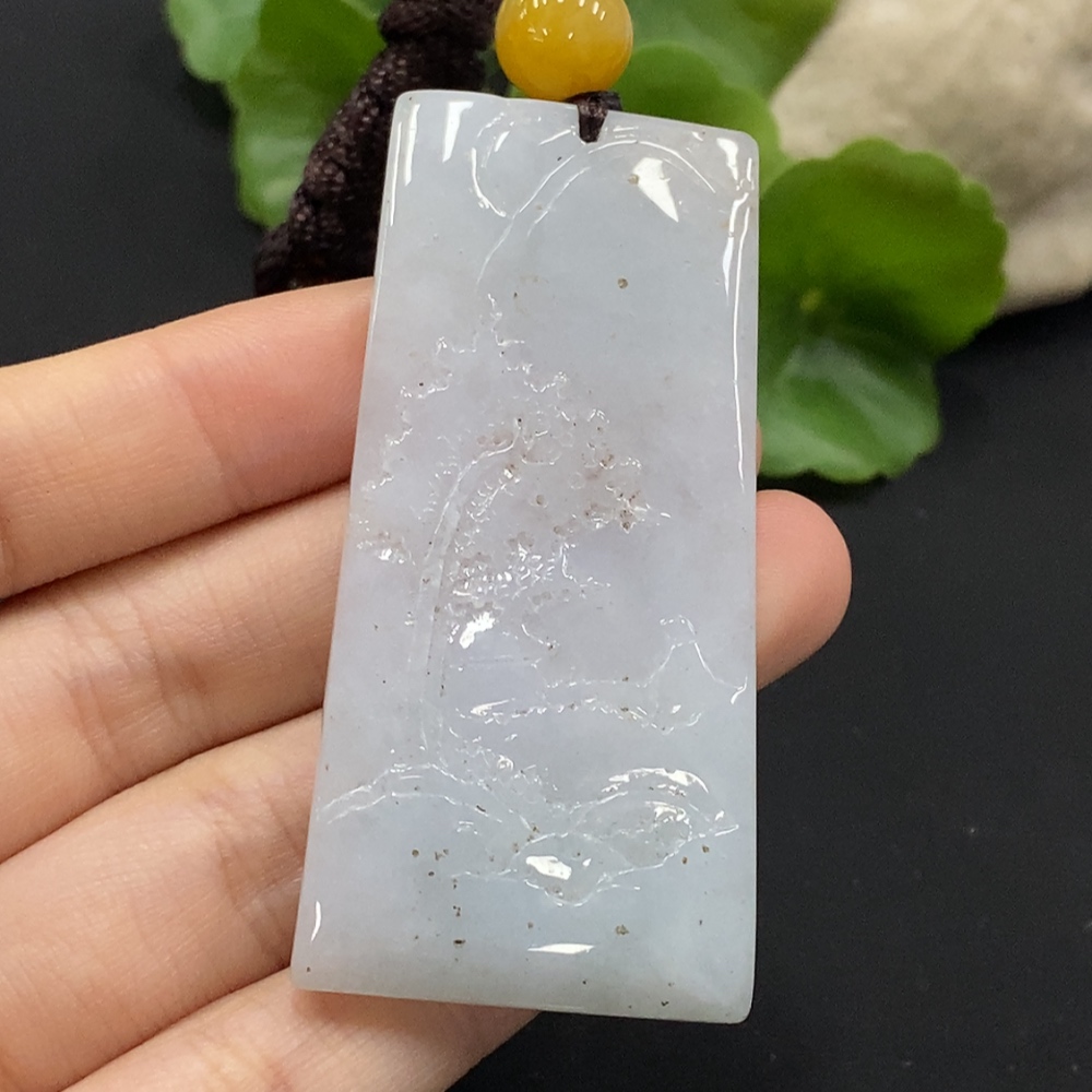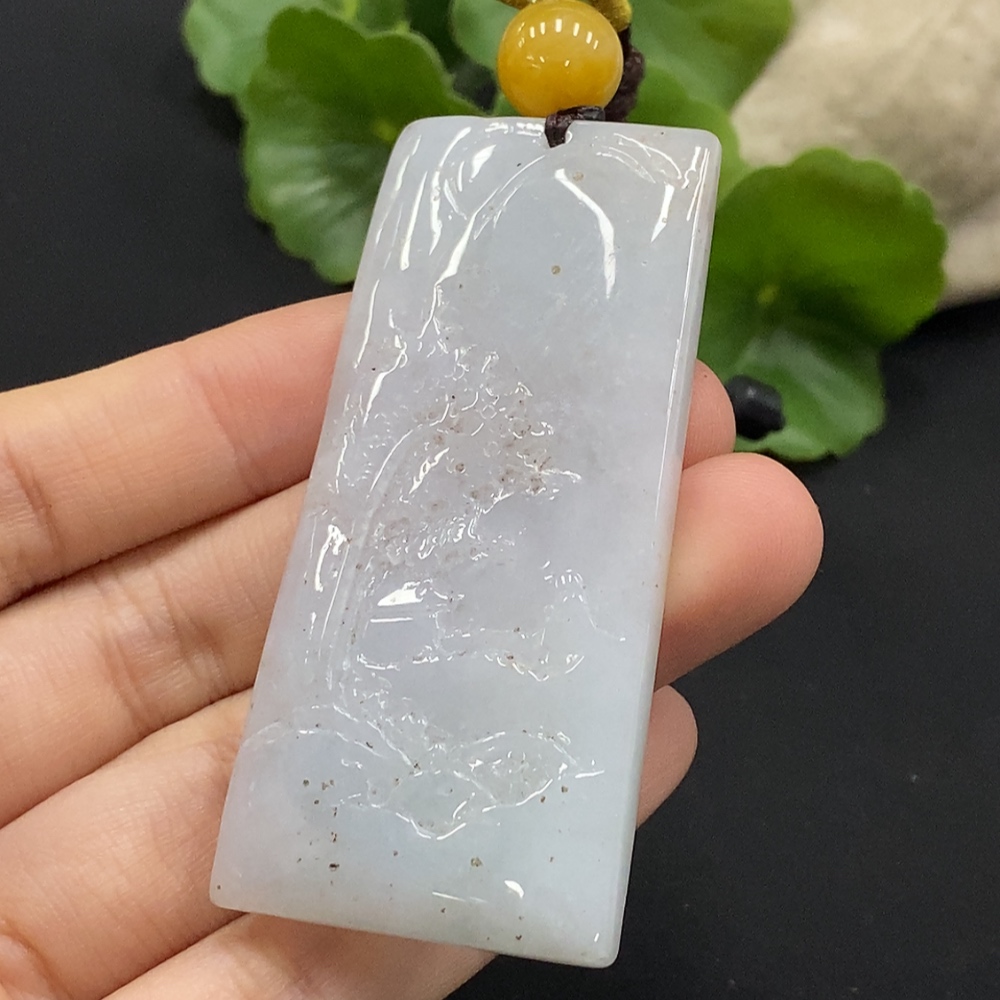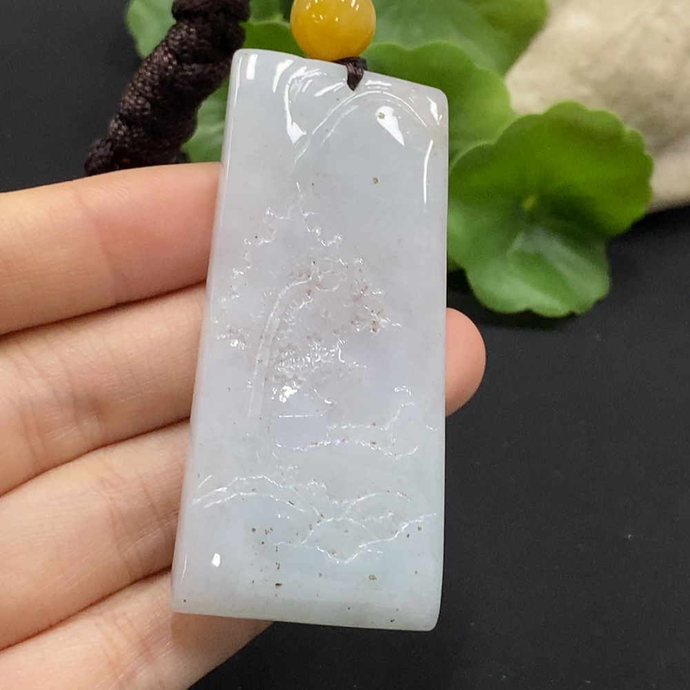 Jadeite Landscape Pendant Total Weight Approx. 34.6g with Non-Grade A Beads