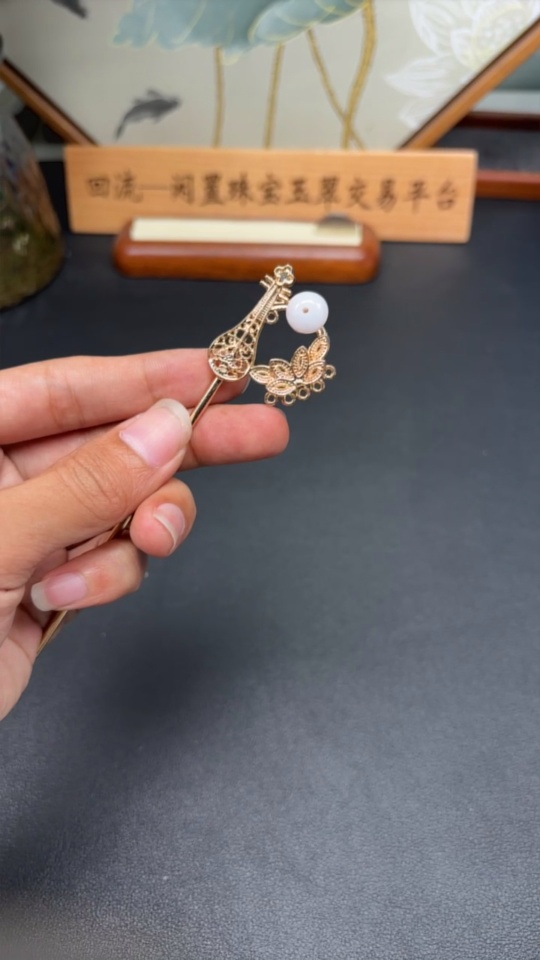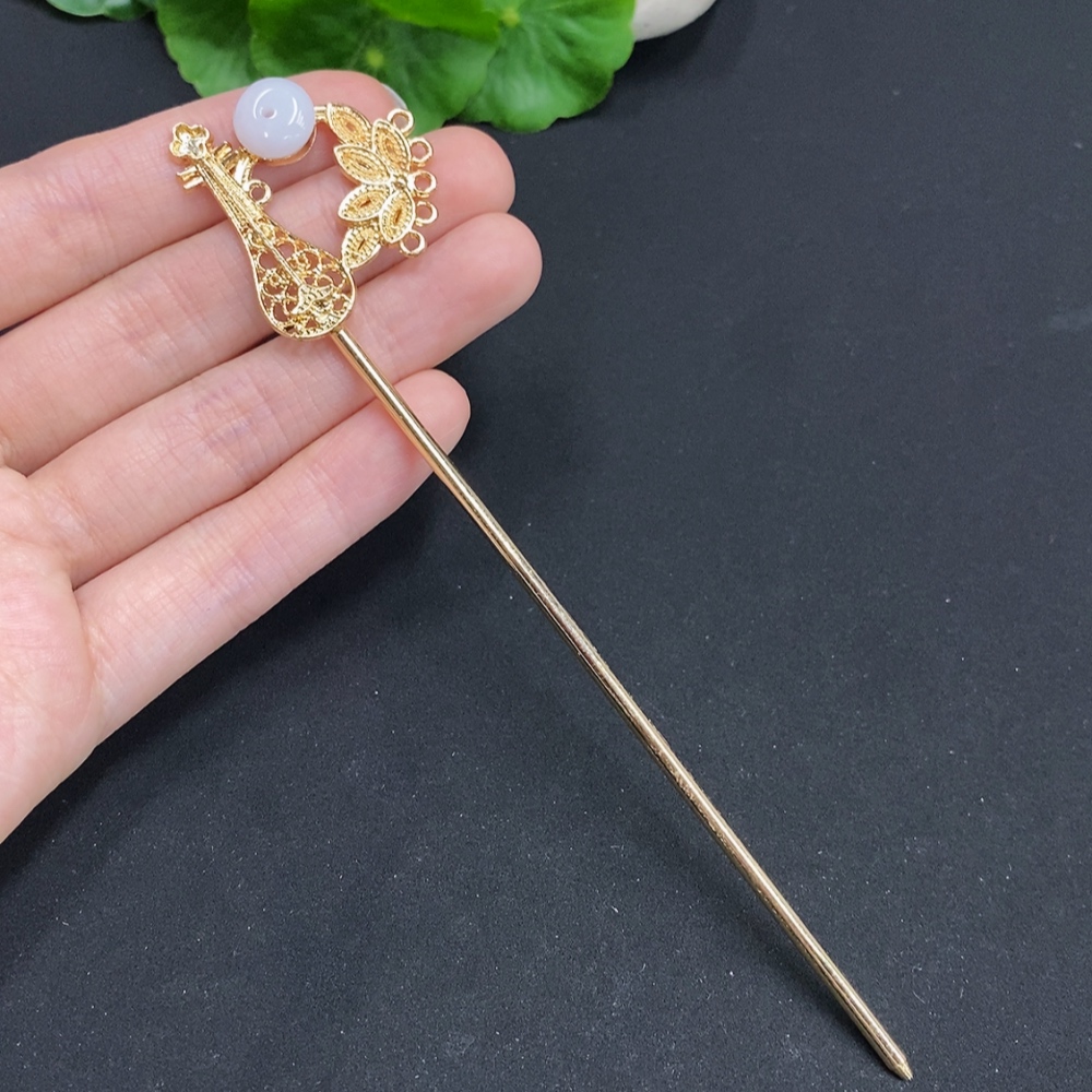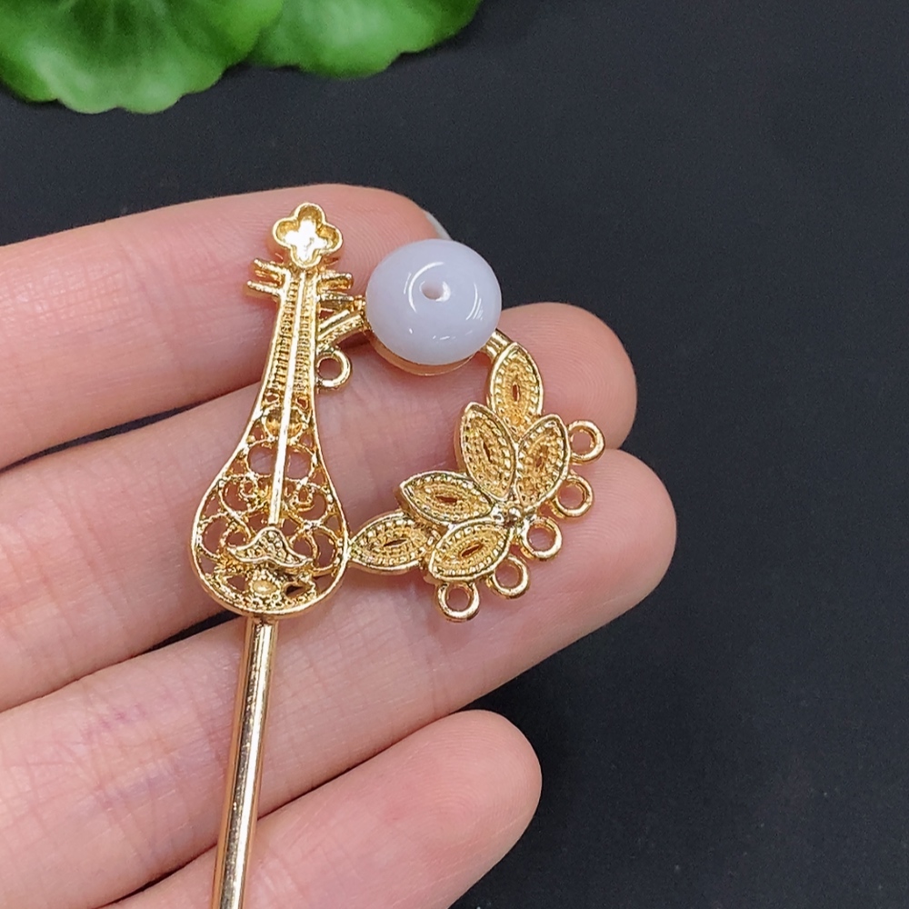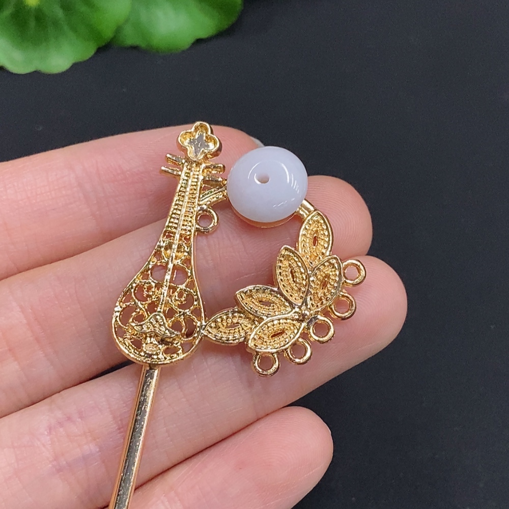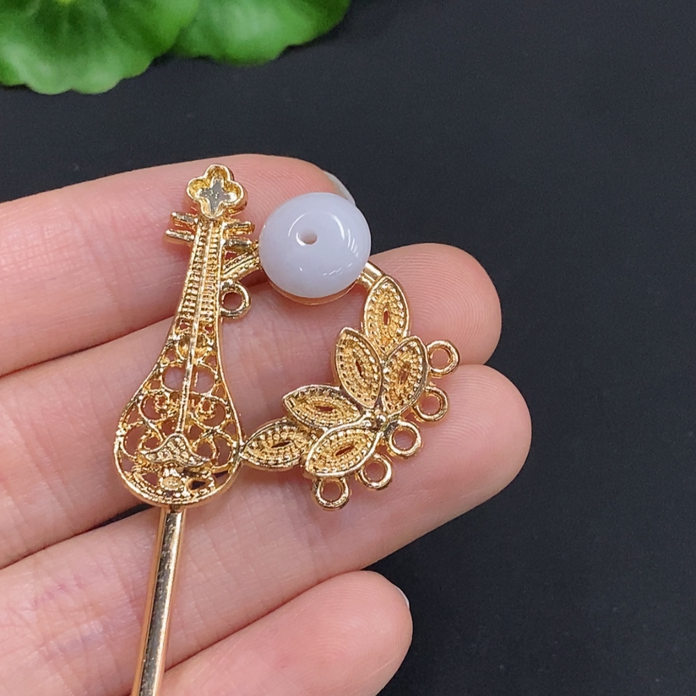 Jadeite Inlaid Hairpin Non-Gold Inlaid Total Weight Approx. 9.1g