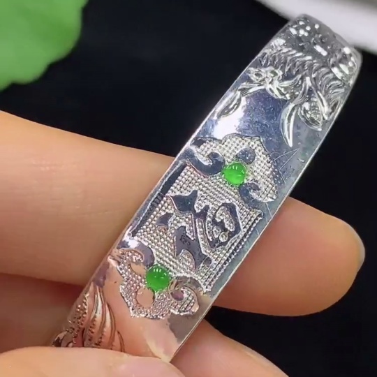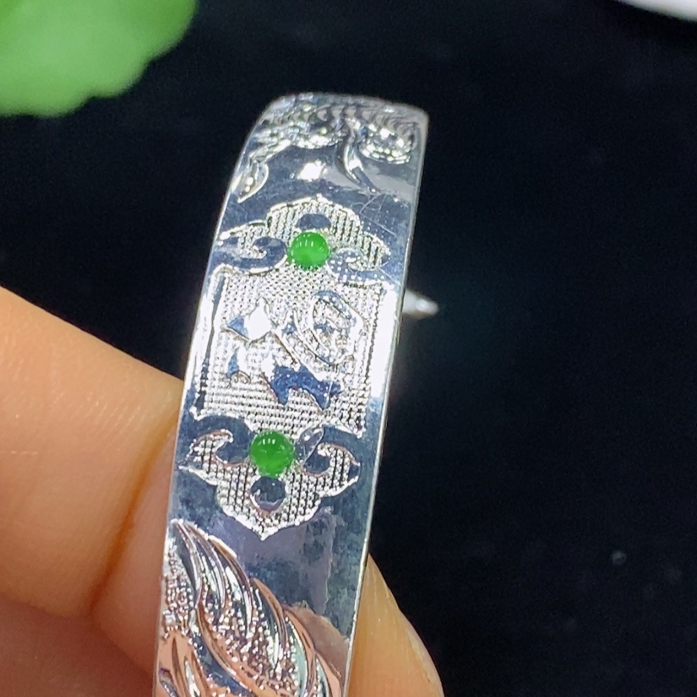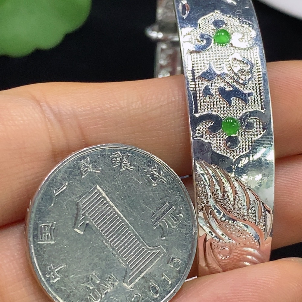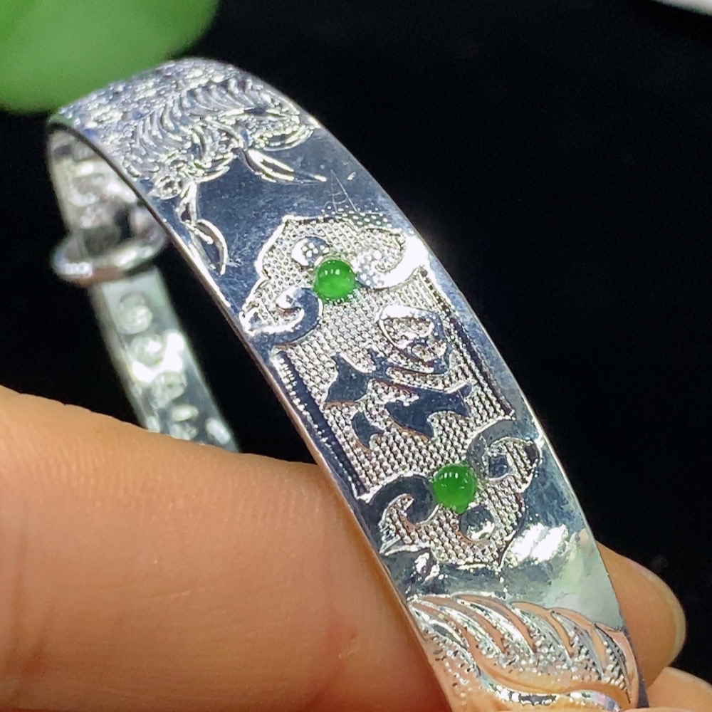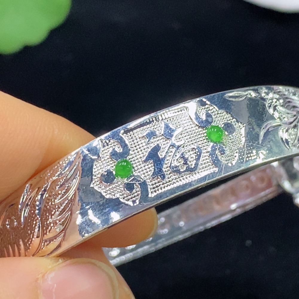 Jadeite Cabochon Inlaid Bracelet Non-Gold Total Weight Approx. 16.93g
