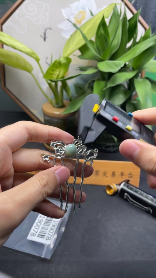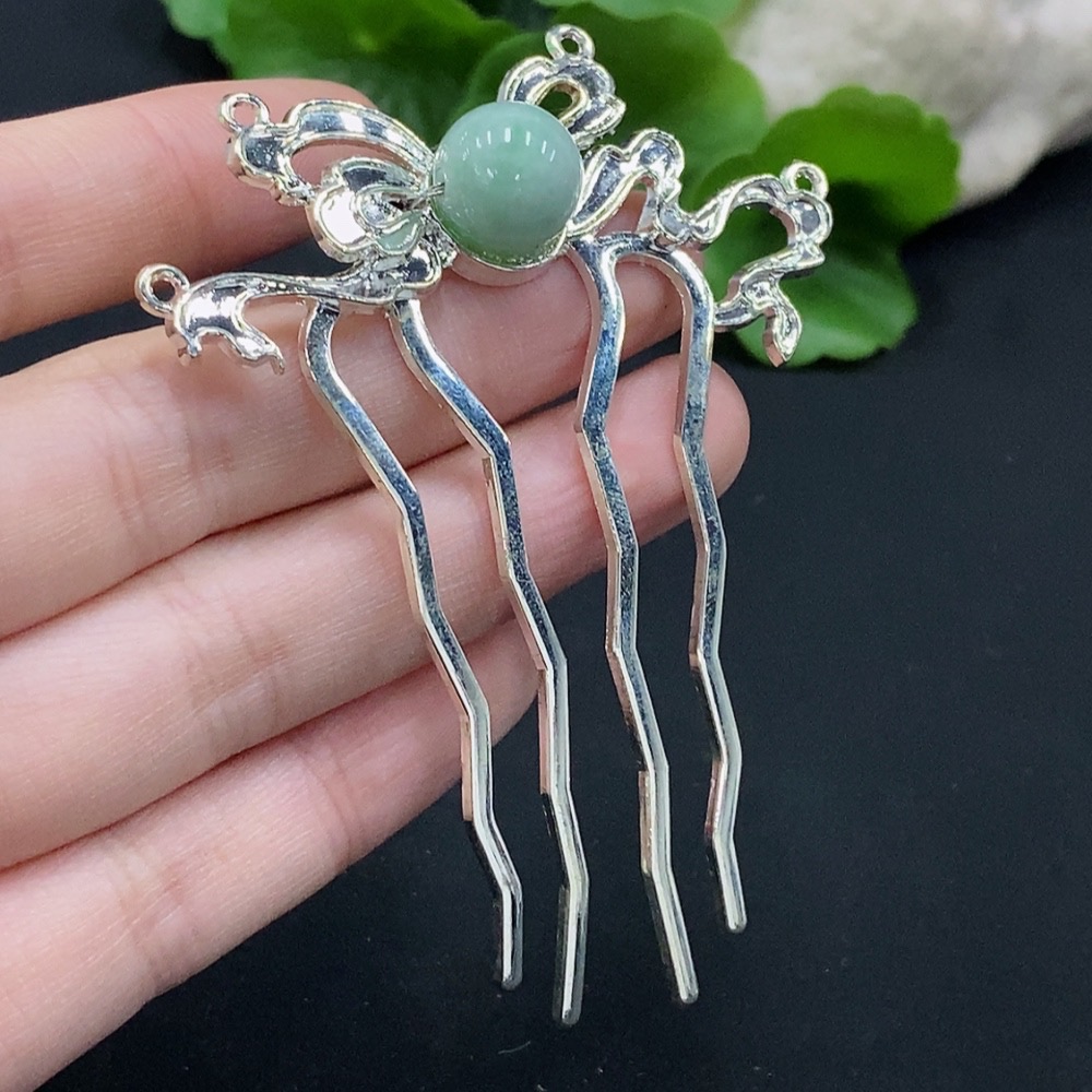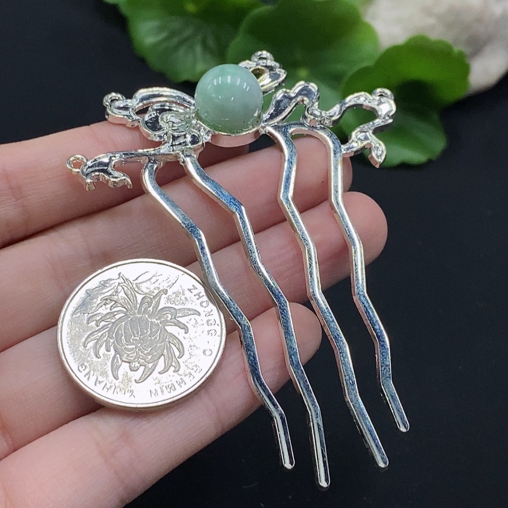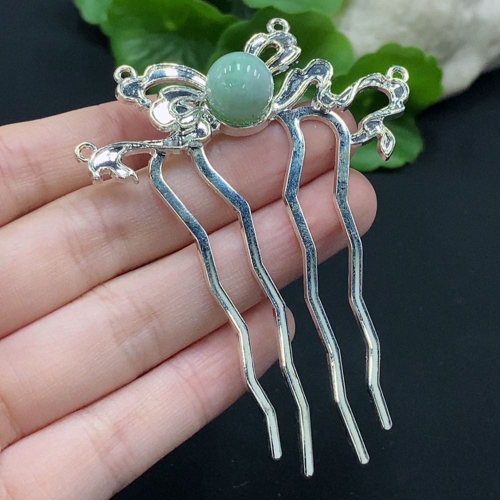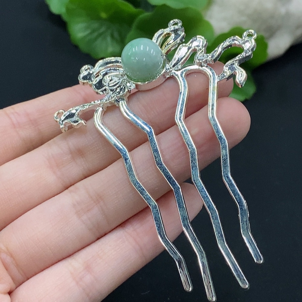 Jadeite Hair Accessory Non-Gold Inlaid Total Weight Approx. 9.41g