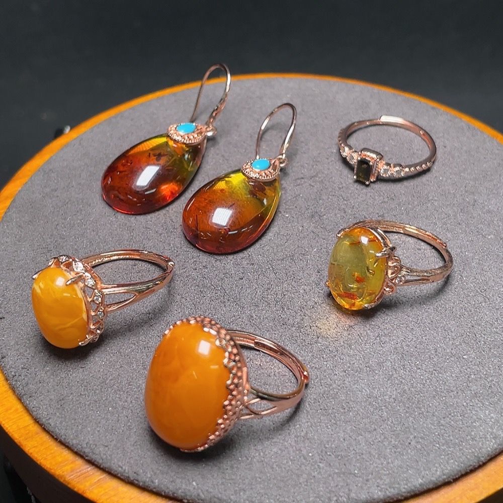 Amber Beeswax + Tourmaline Jewelry Non-Gold Adjustable Total Weight Approx. 15.7g Sell as a Lot