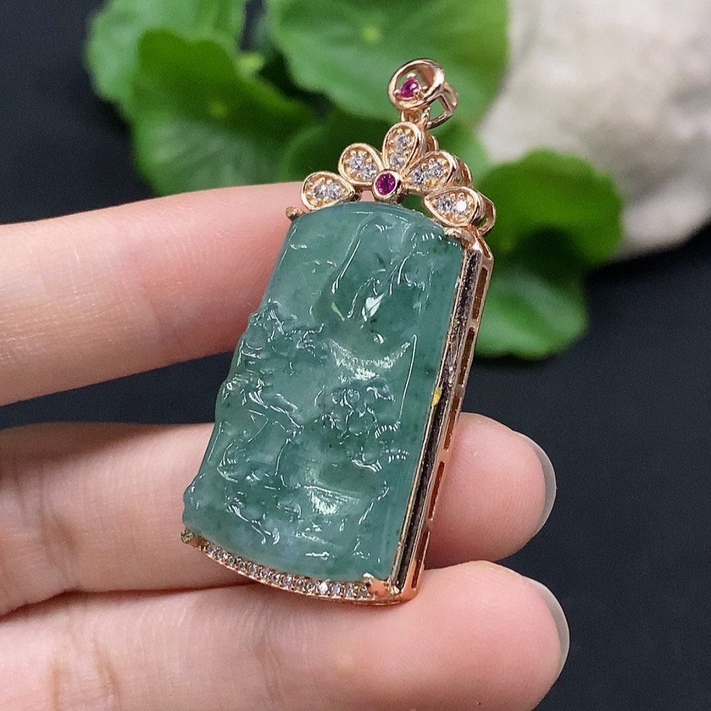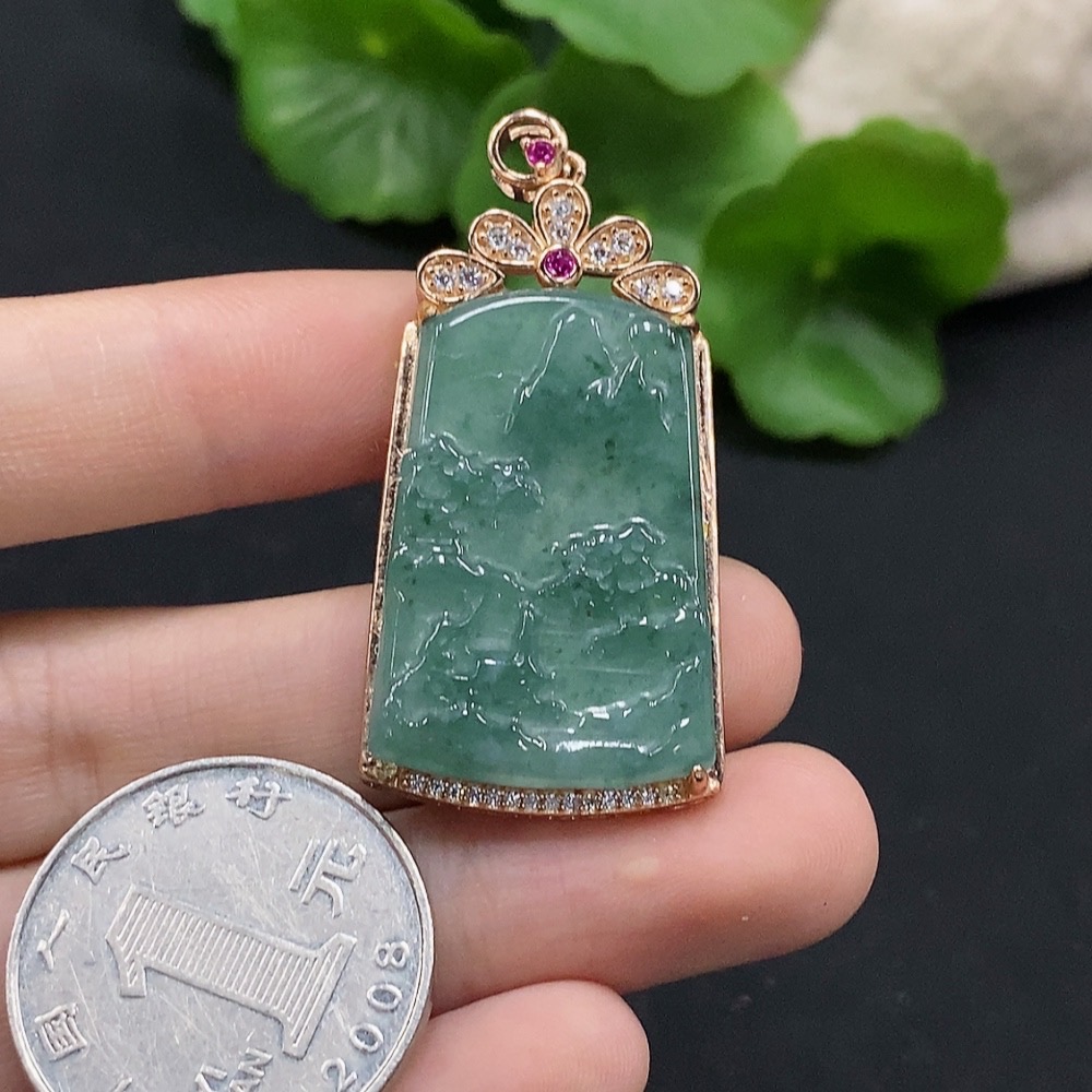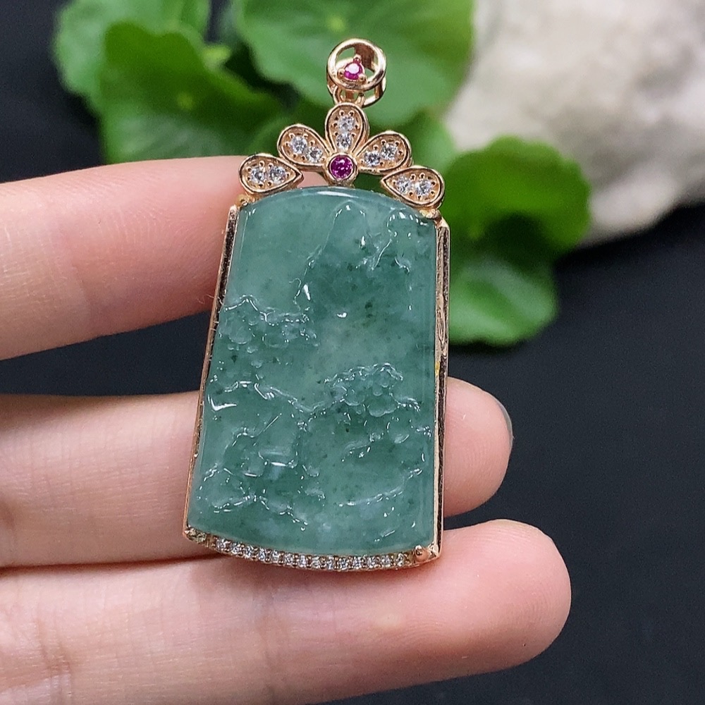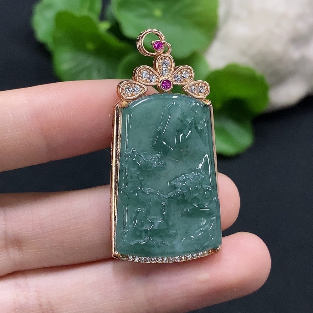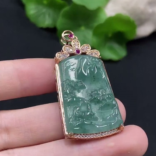 Jadeite Landscape Inlaid Pendant Non-Gold Inlaid Total Weight About 6.86g