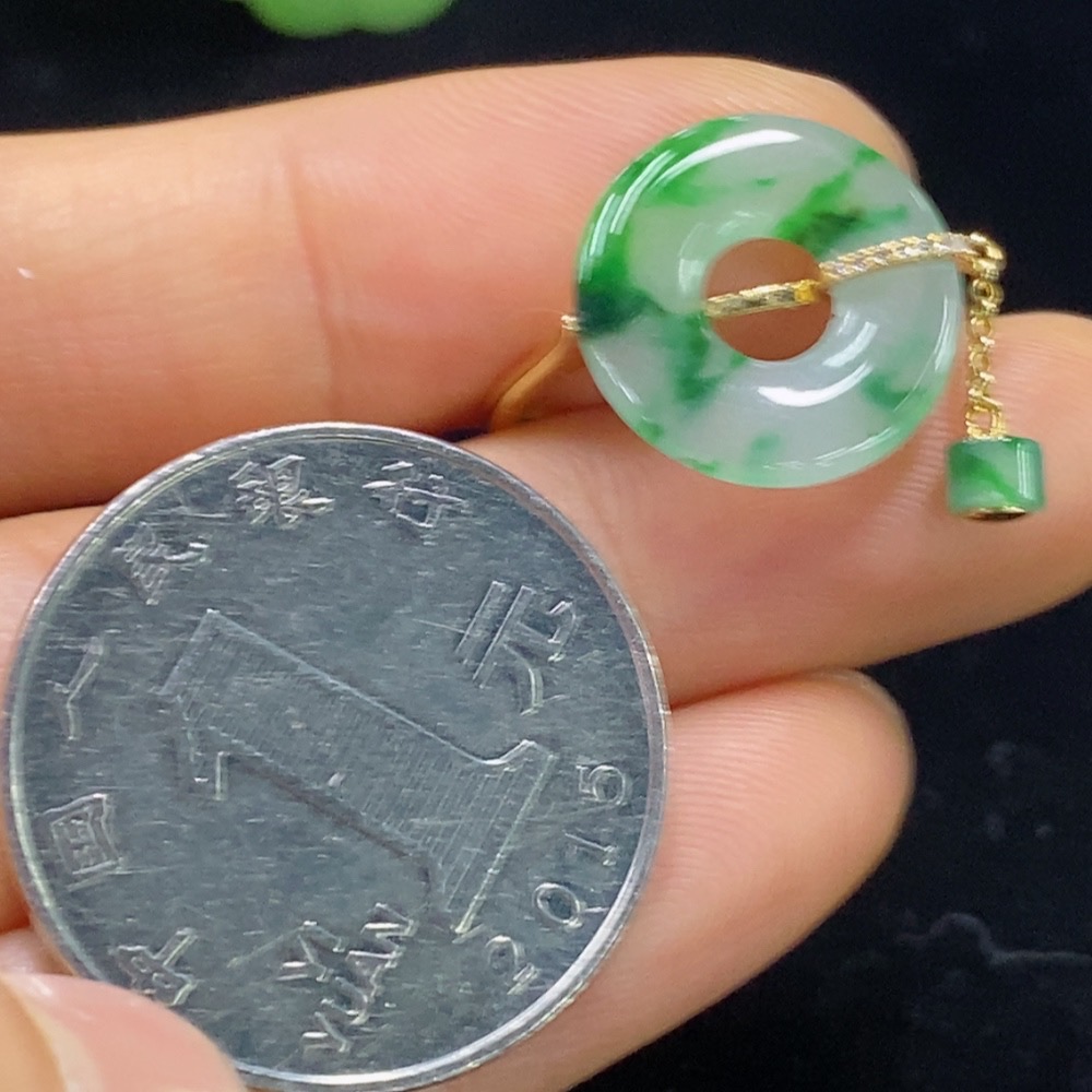 Jadeite Ring 73% Gold Content with Diamond Accents Total Weight Approx. 2.35g Size 16