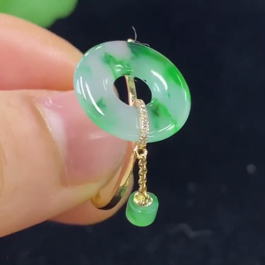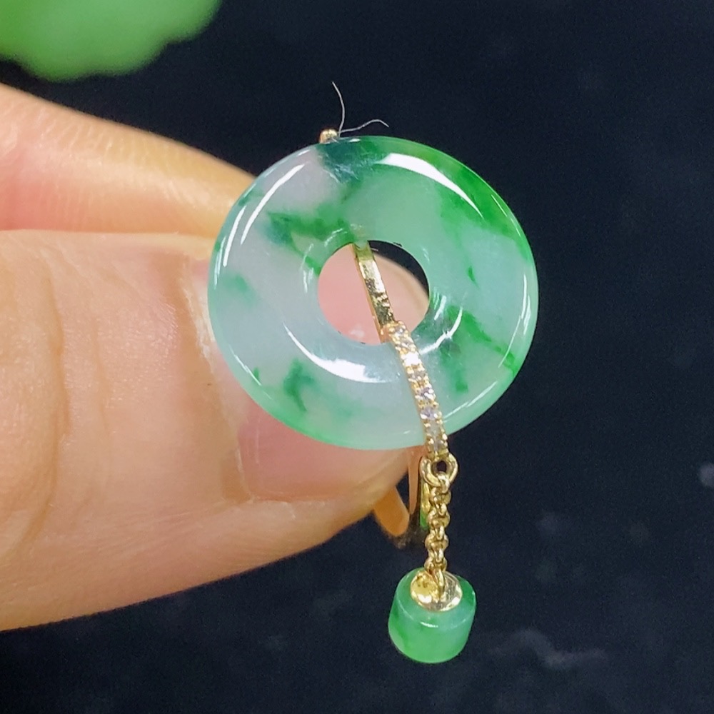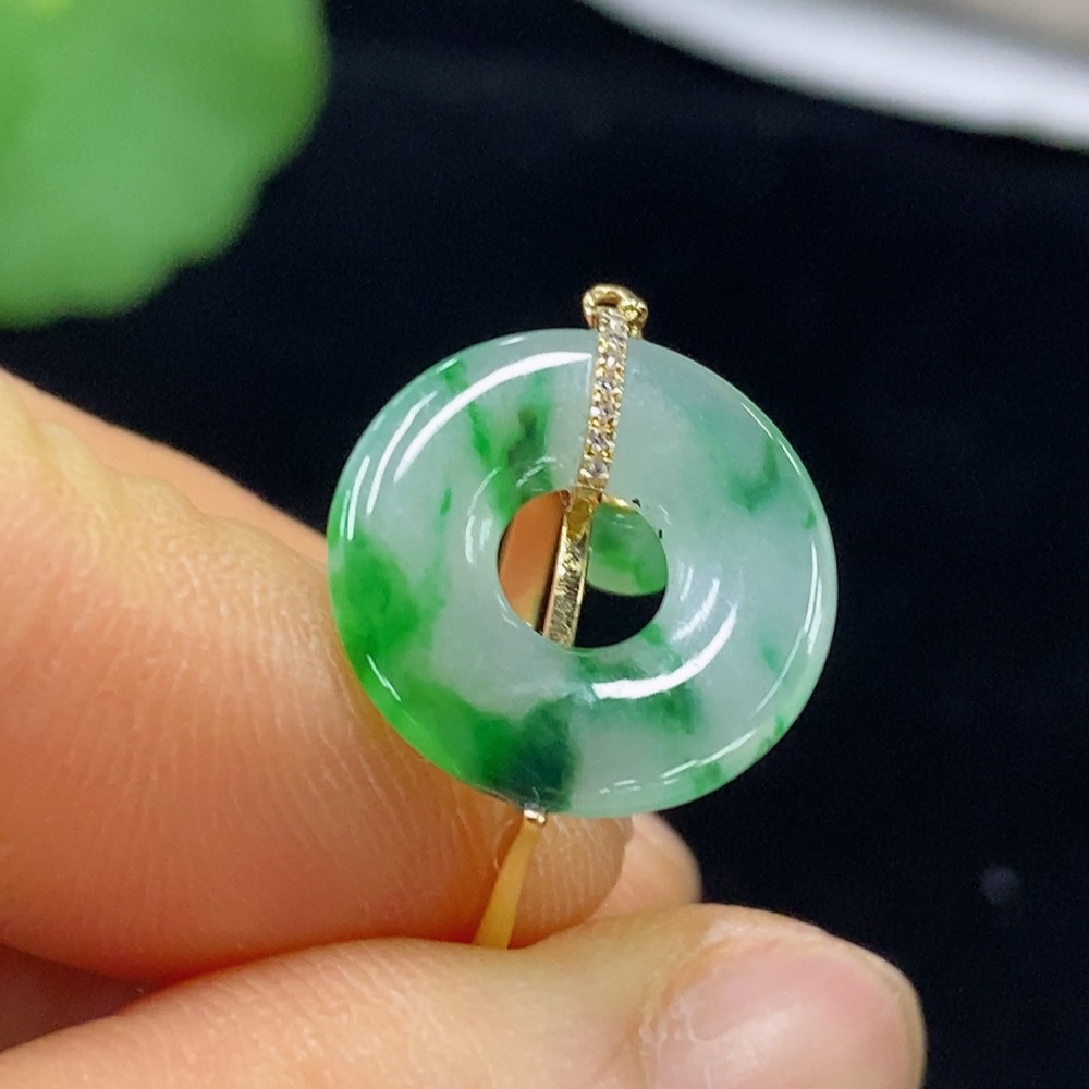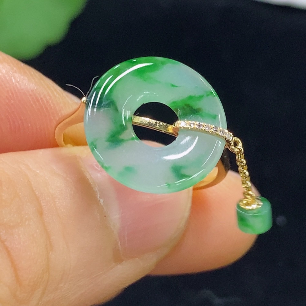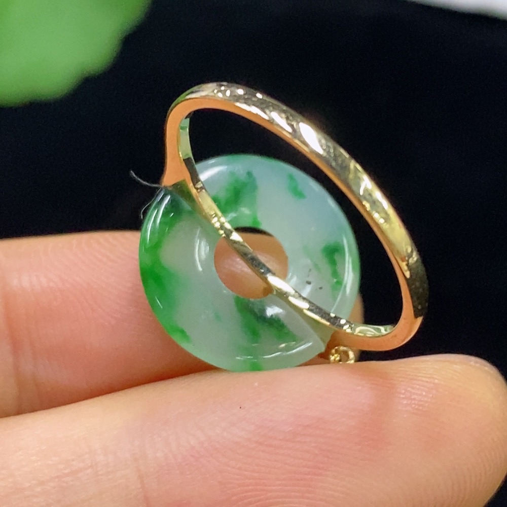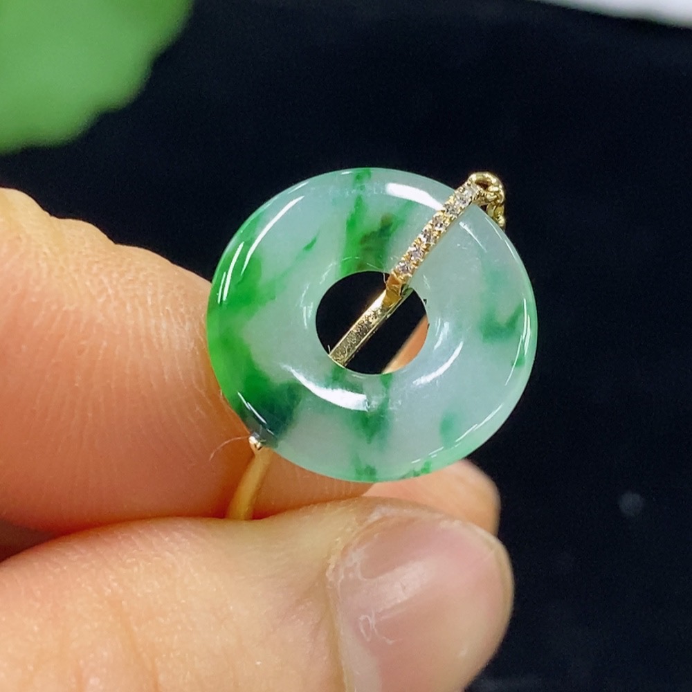 Jadeite Ring 73% Gold Content with Diamond Accents Total Weight Approx. 2.35g Size 16