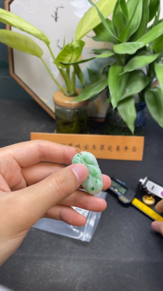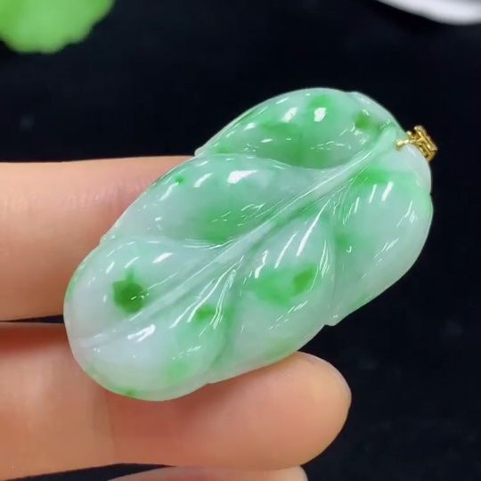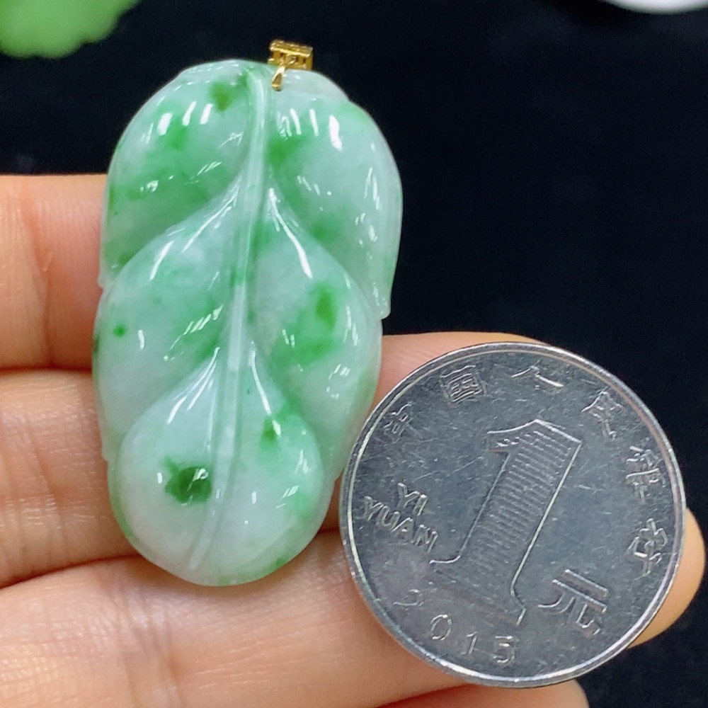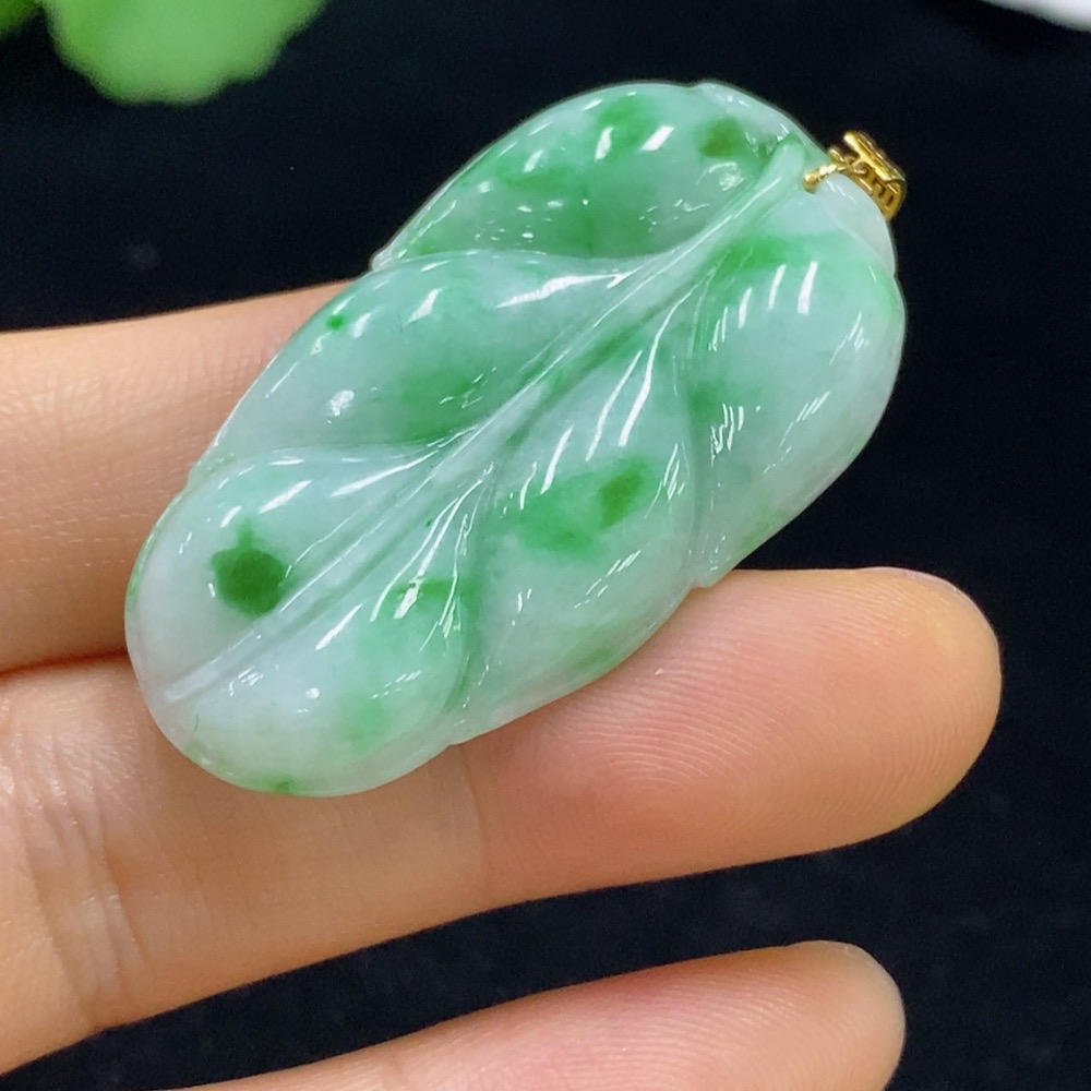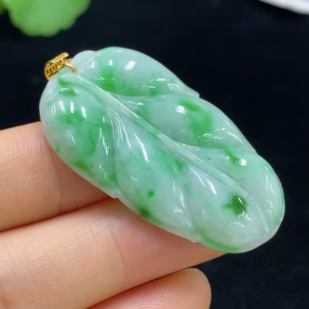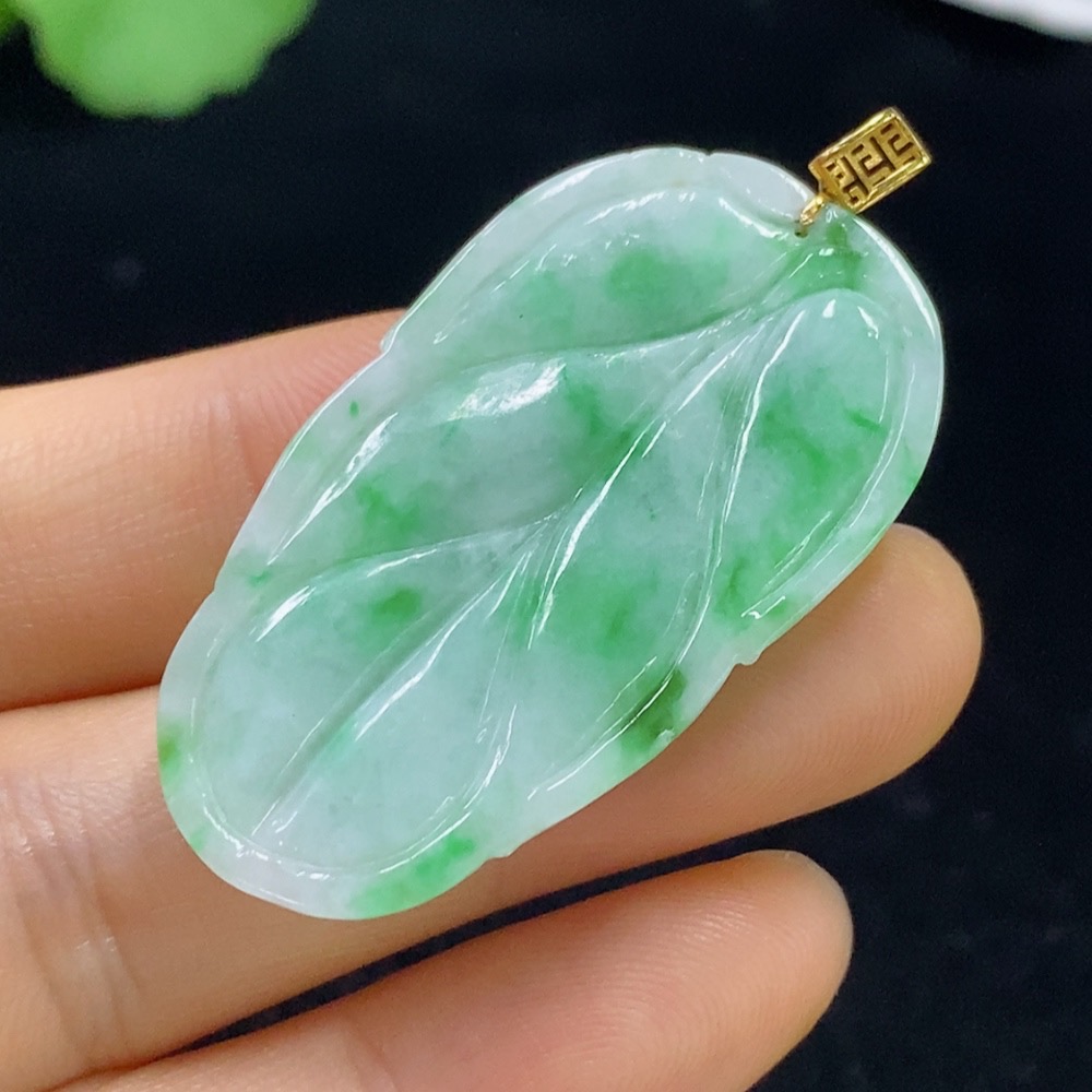 Jadeite Leaf Pendant 18k Total Weight Approx. 8g