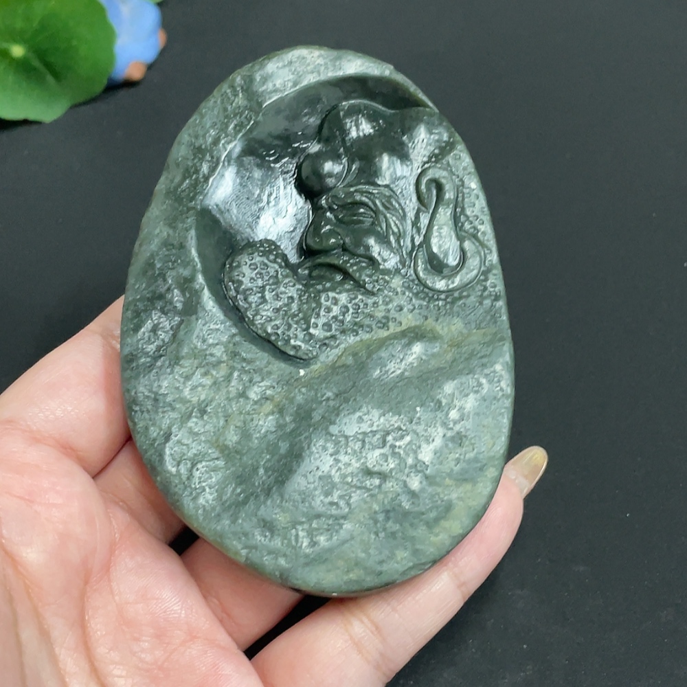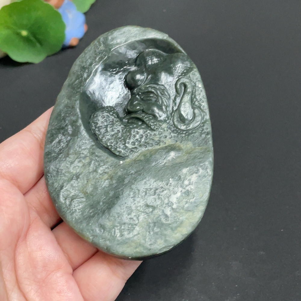 Hetian Jade Handheld Carving - Patriarch Bodhidharma, Total Weight Approx. 161.7g