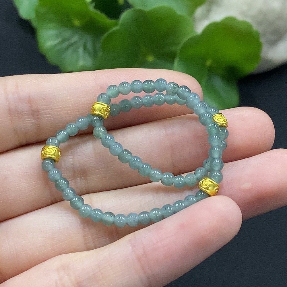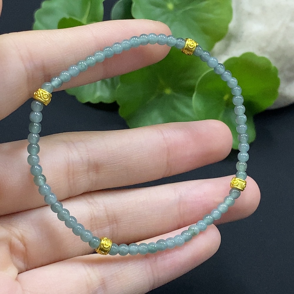 Trezaar - Jadeite Bracelet Approx. 3mm Beads Non-Gold Inlaid Total Weight Approx. 3.49g