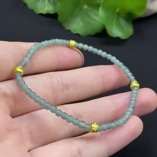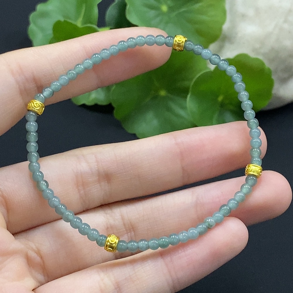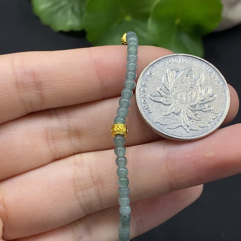 Jadeite Bracelet Approx. 3mm Beads Non-Gold Inlaid Total Weight Approx. 3.49g