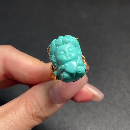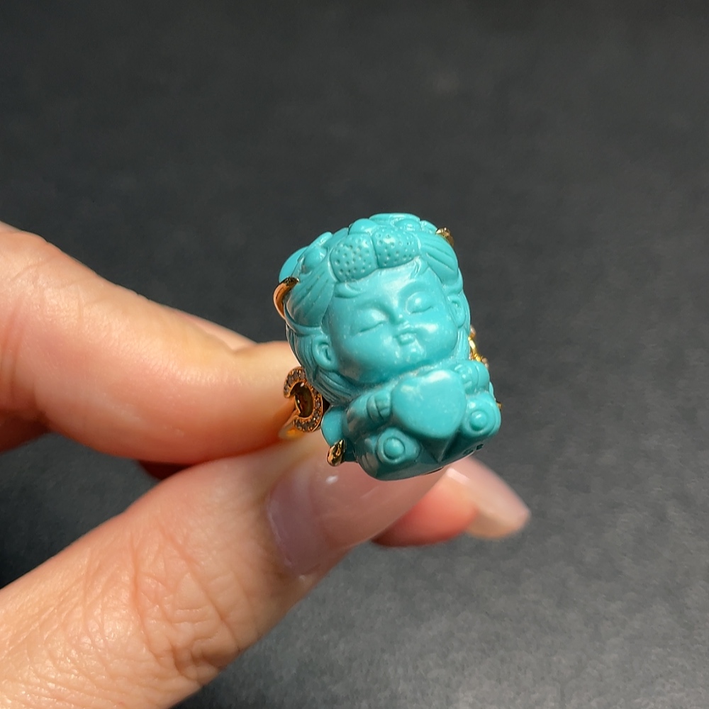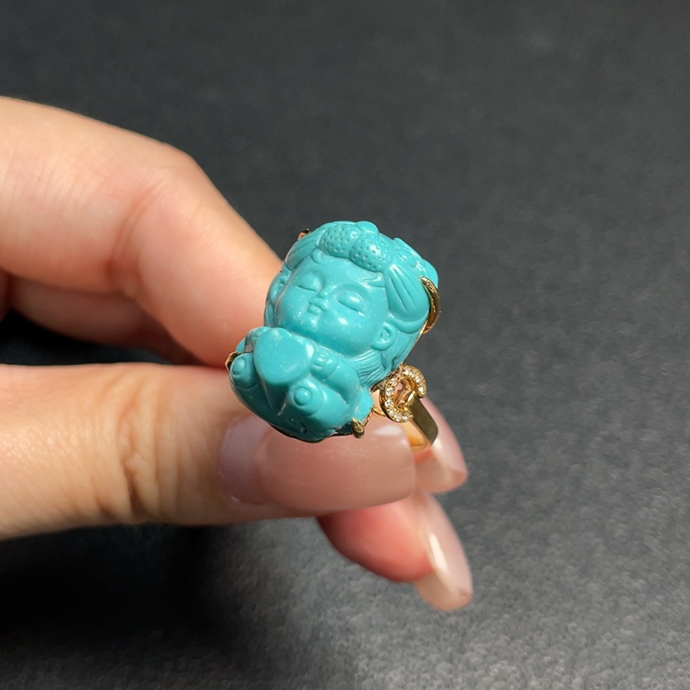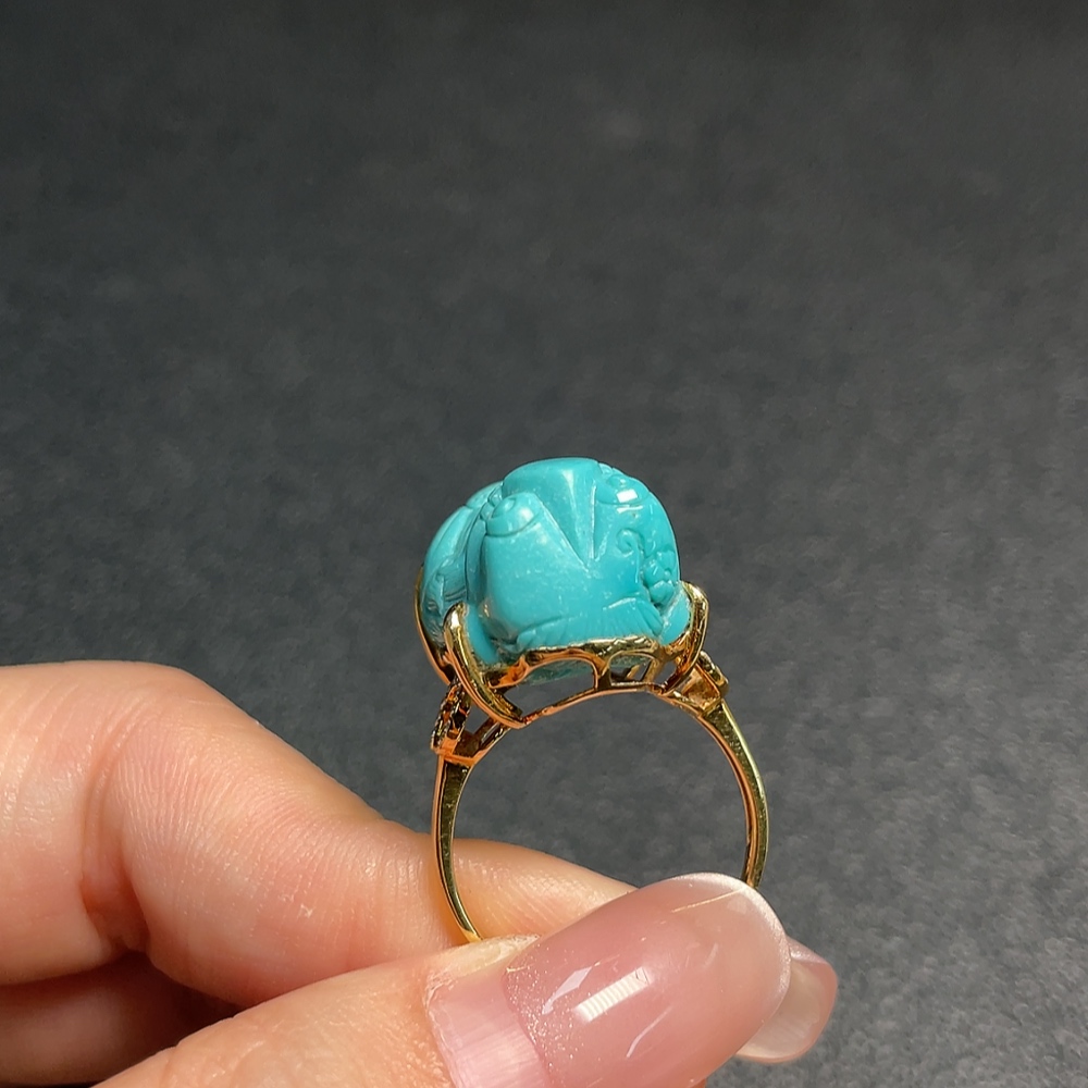 18K Turquoise Ring with Diamond Accents, Total Weight Approx. 9.08g, Size 18