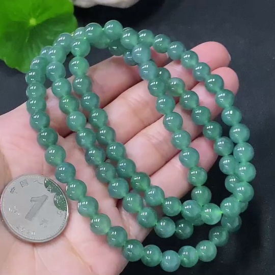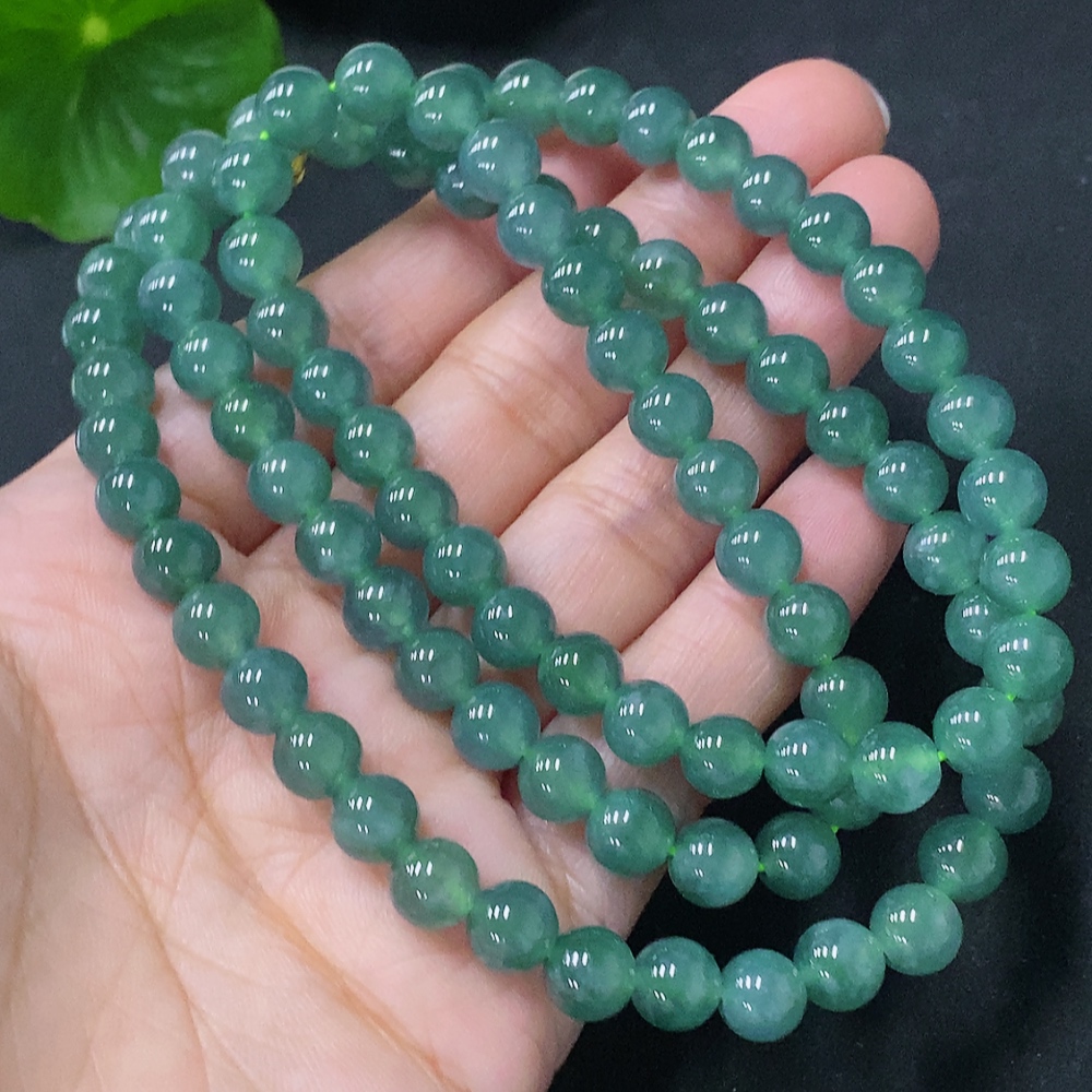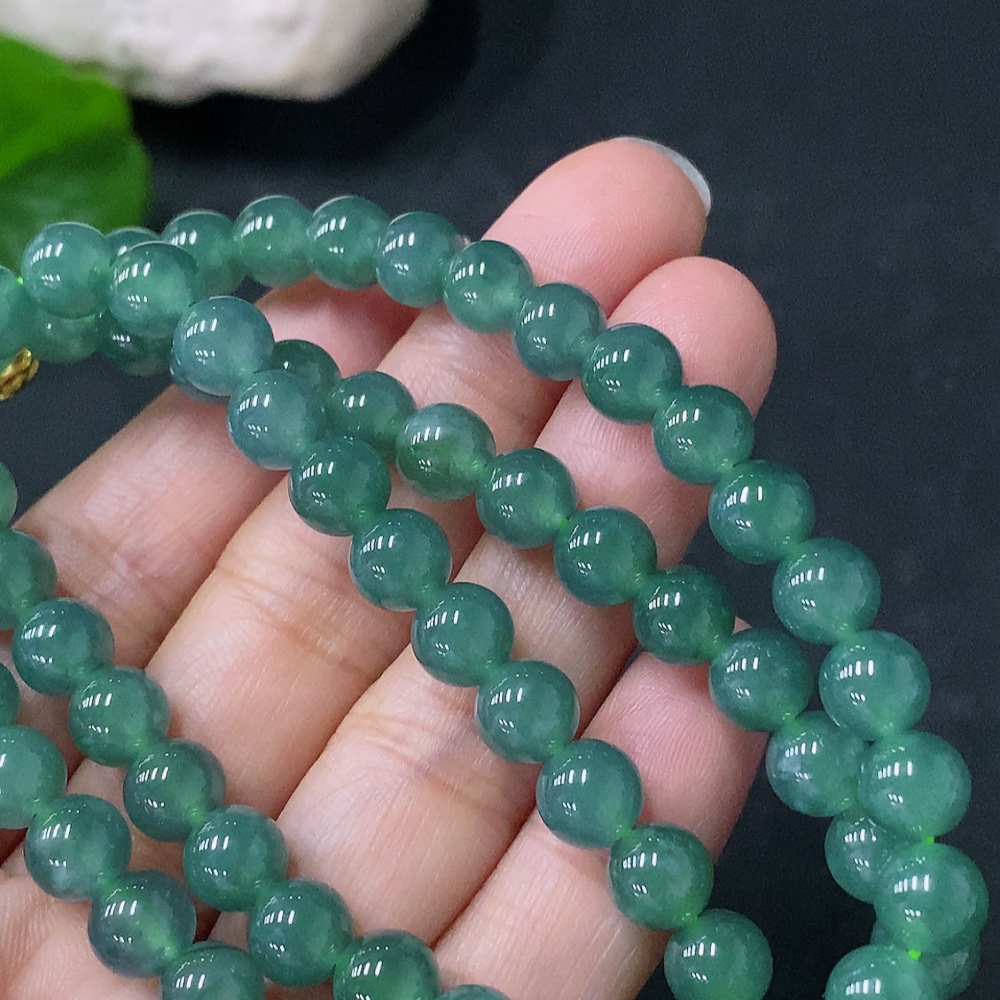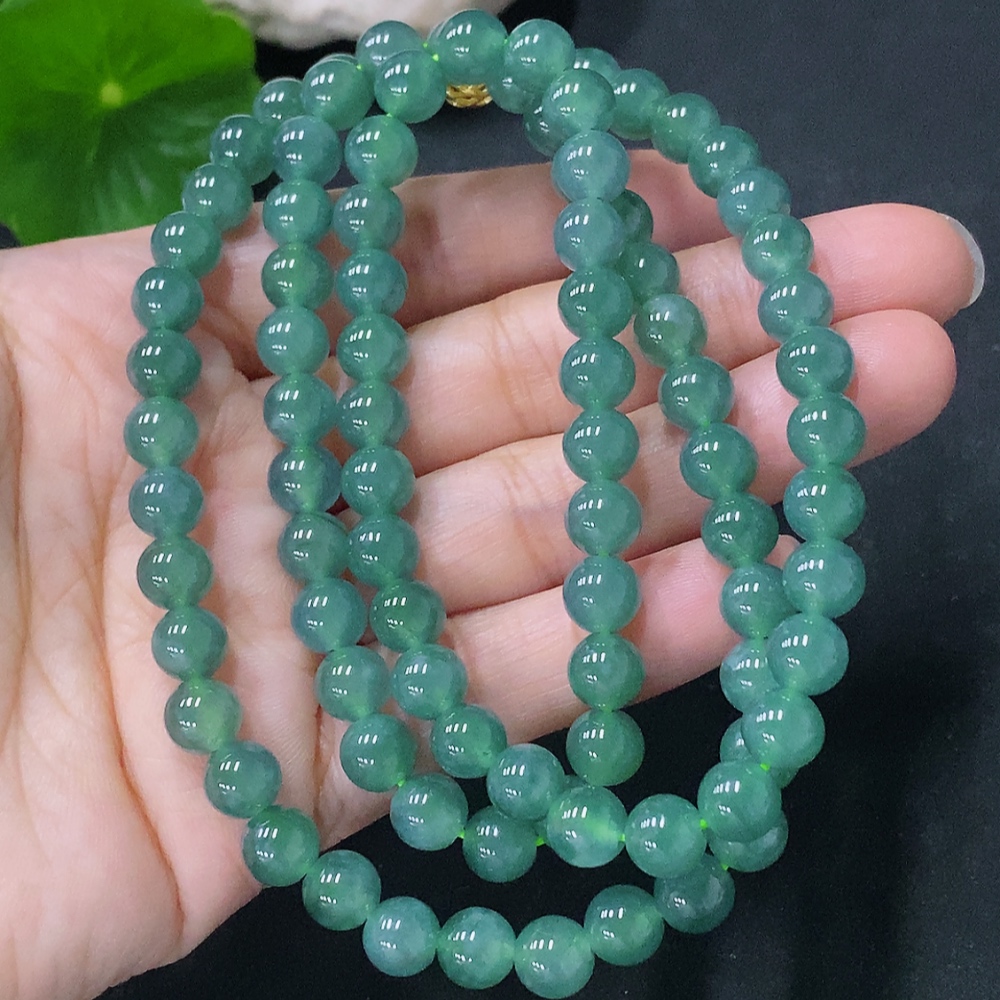 Jadeite Bead Necklace Approx. 7mm Non-Gold Total Weight Approx. 49.32g