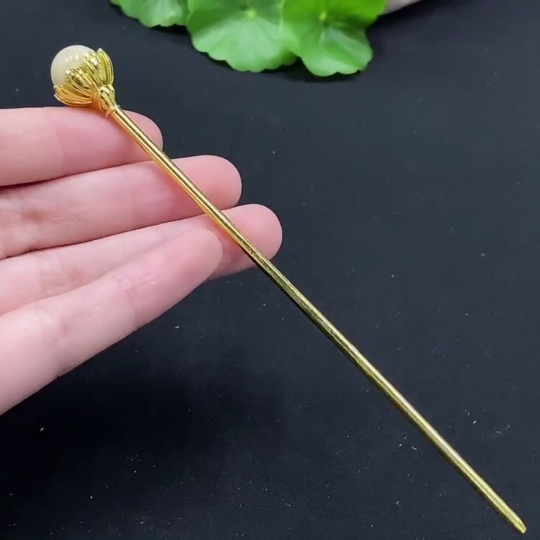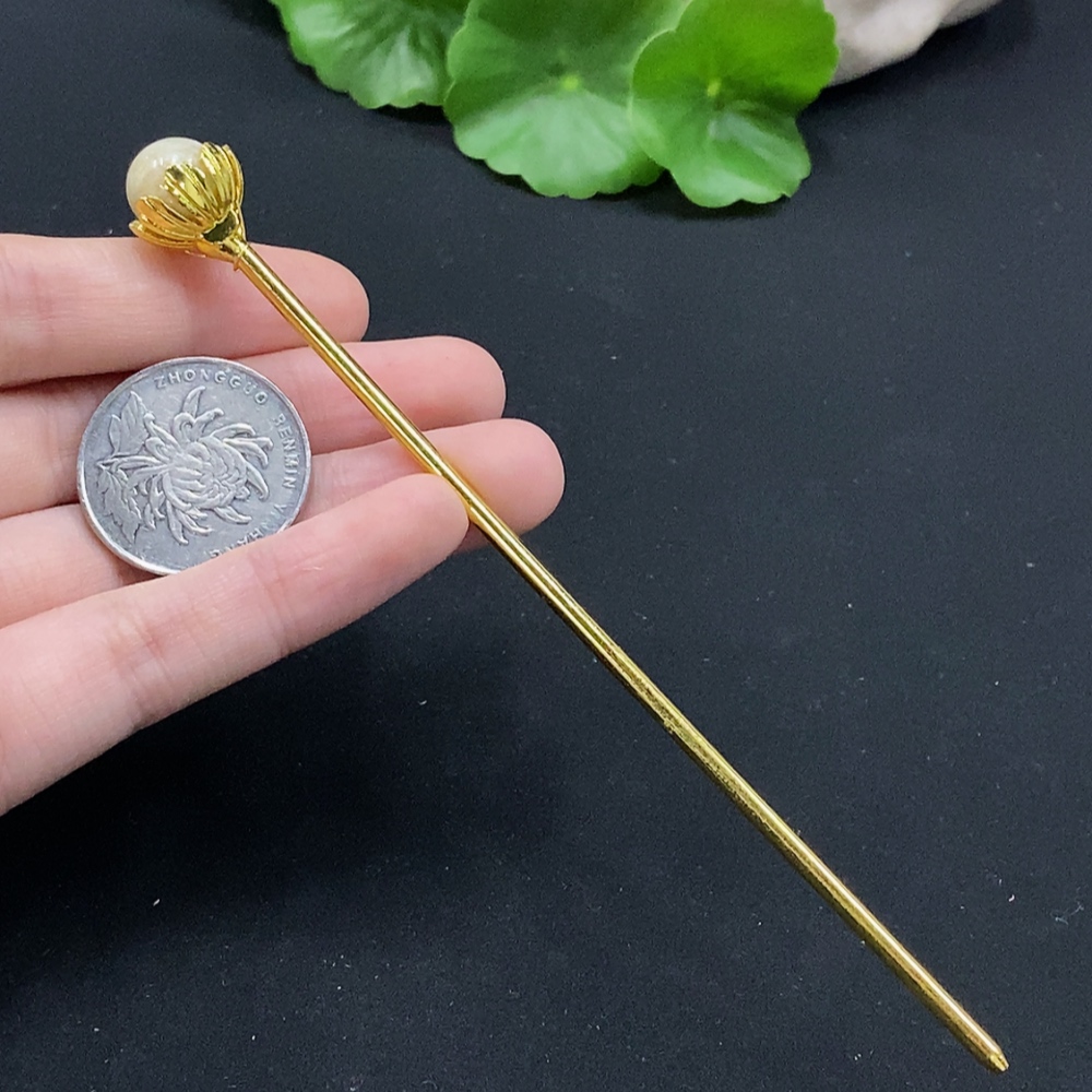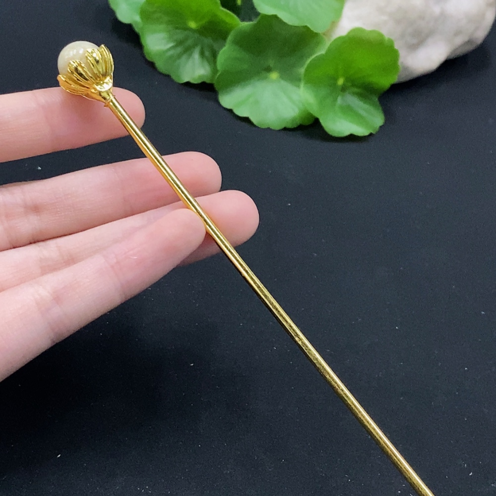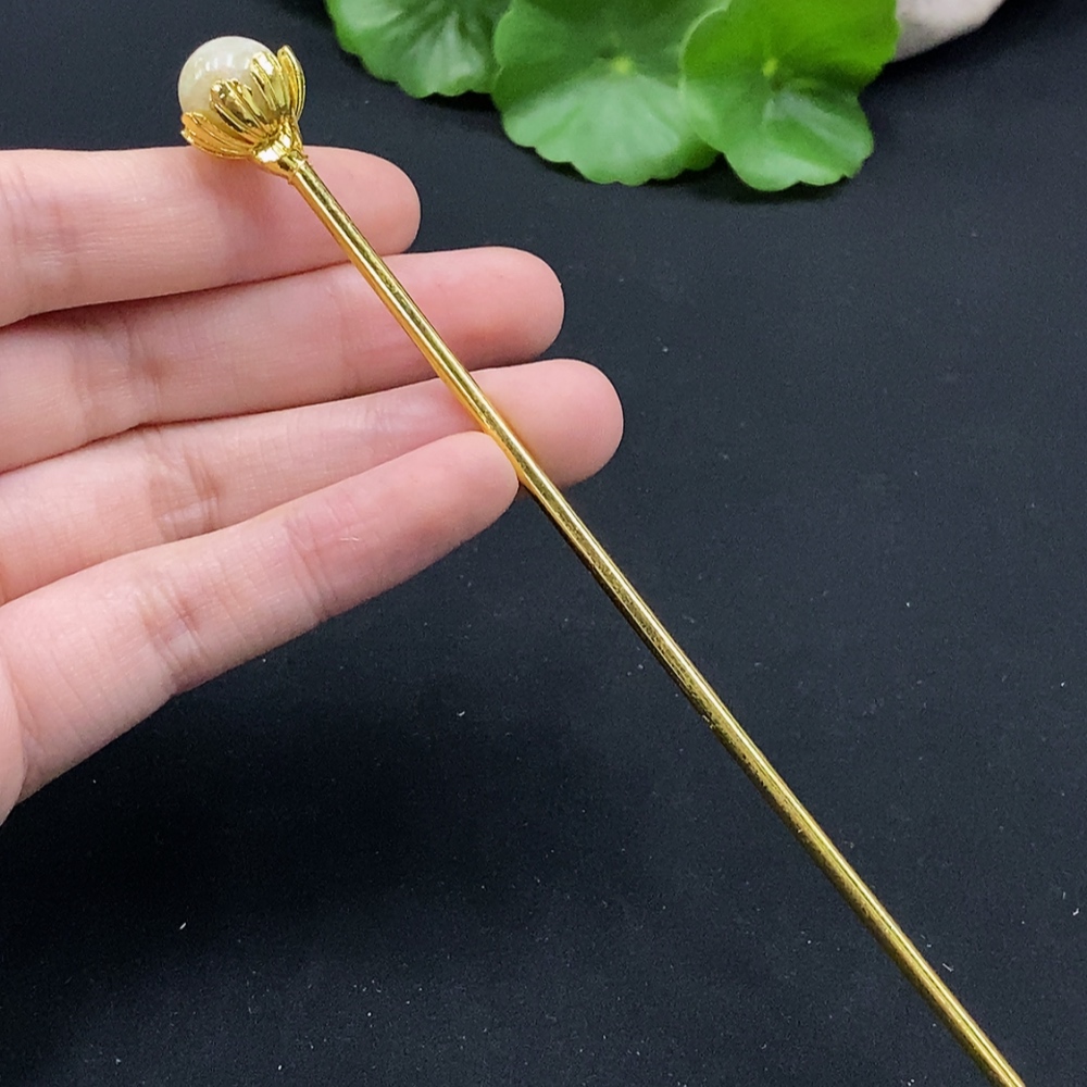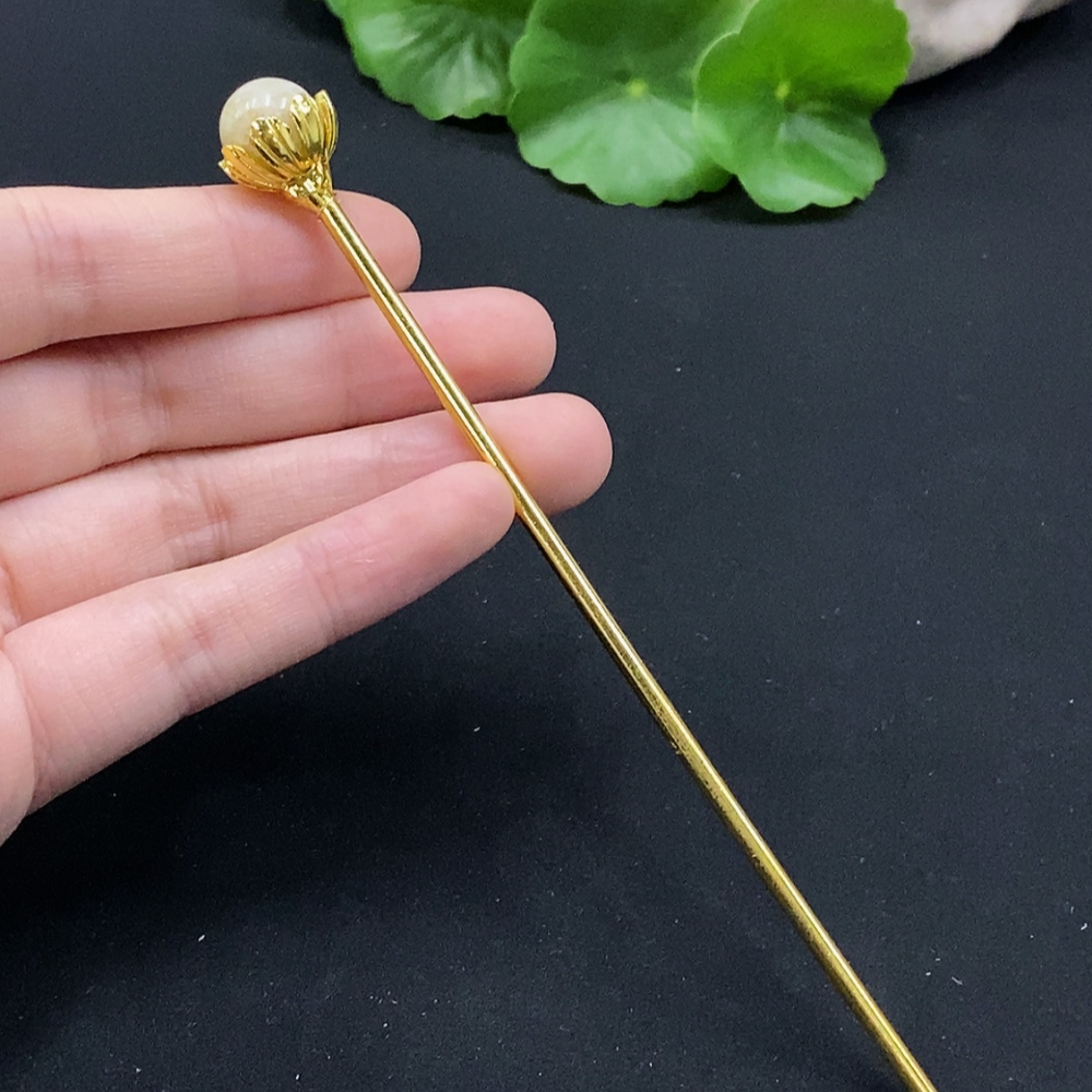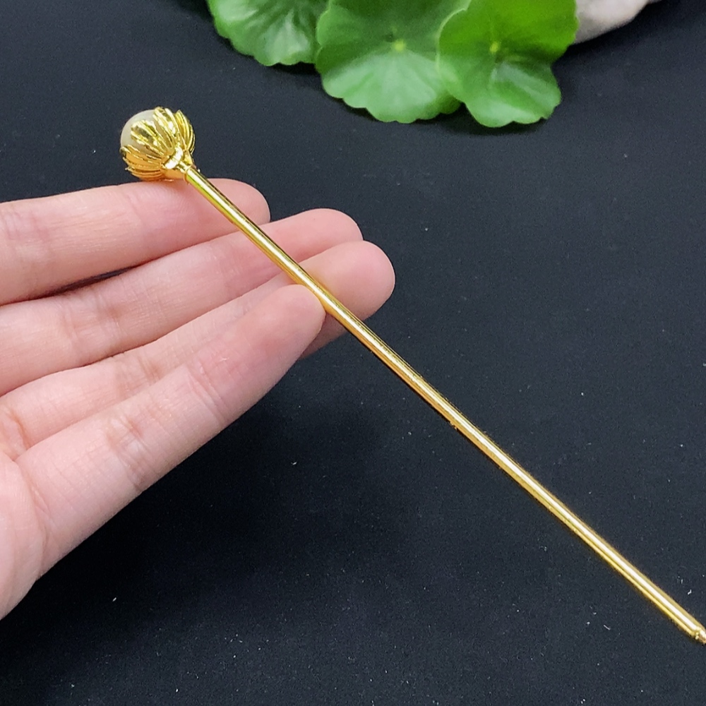 Jadeite Bead Inlaid Hairpin Non-Gold Inlaid Approx. 10.2mm Total Weight Approx. 8.79g