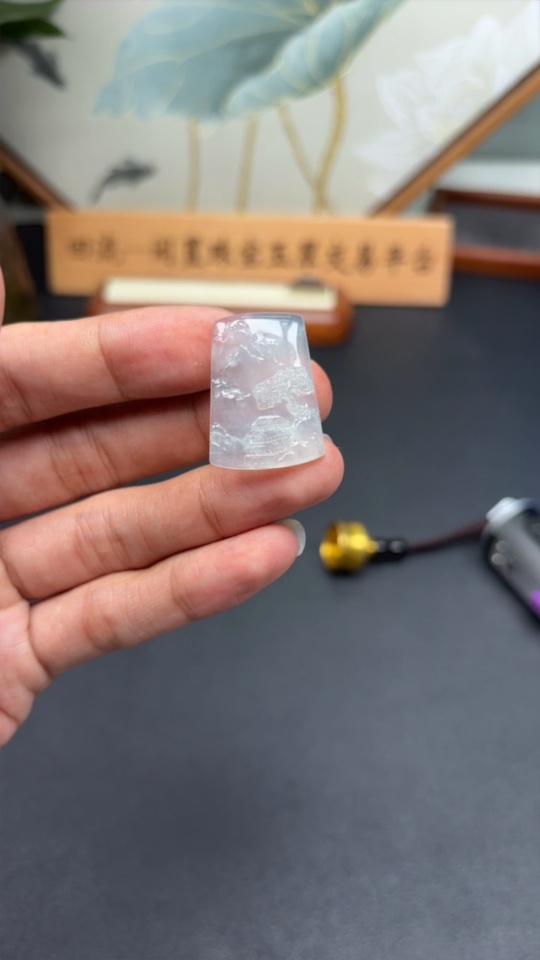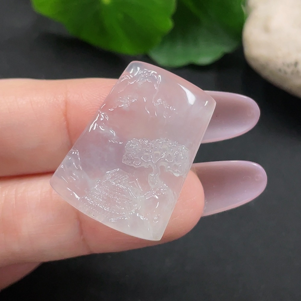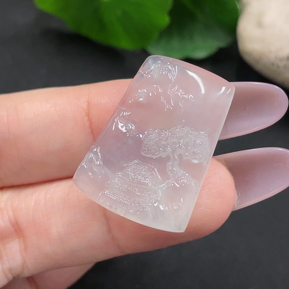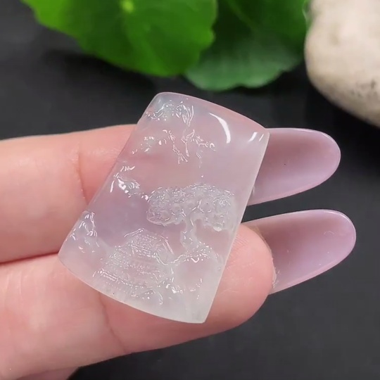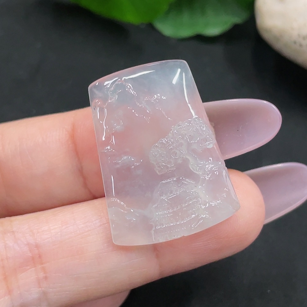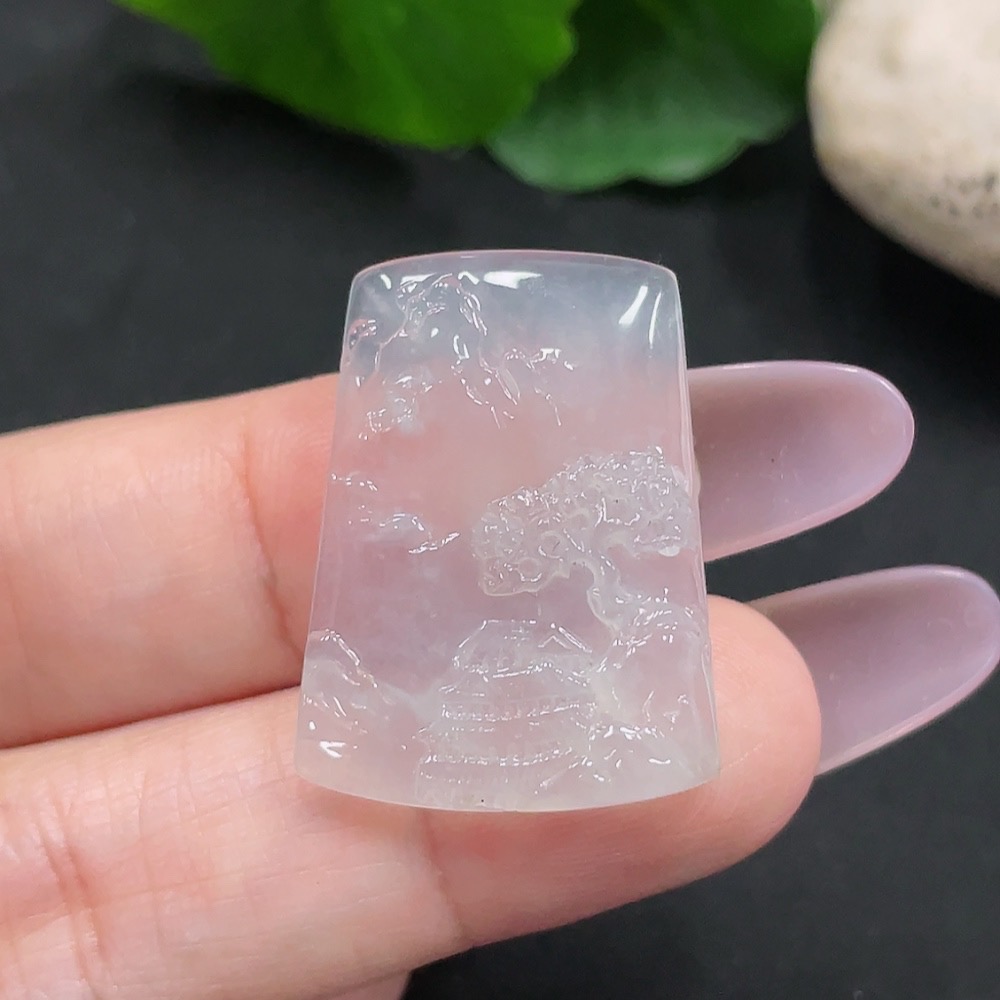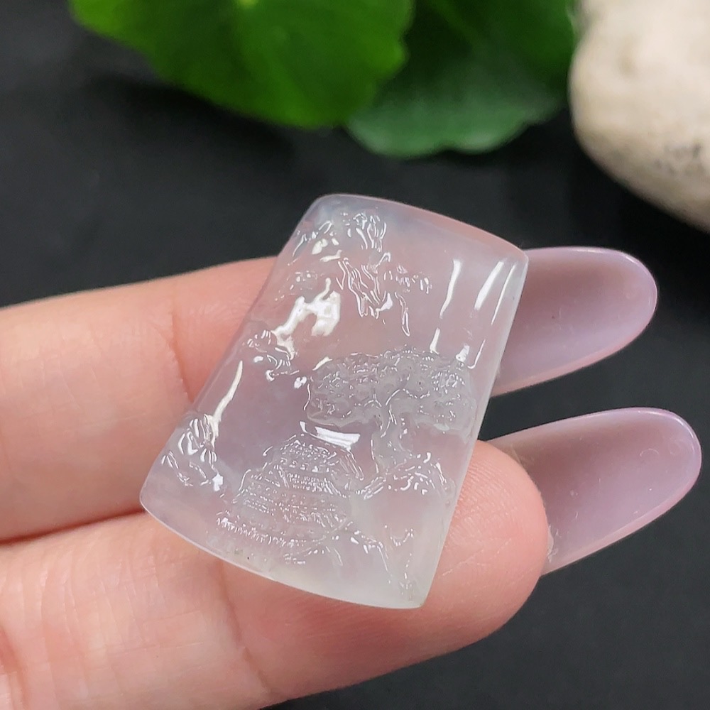 Jadeite Landscape Pendant Inlaid Piece Total Weight Approximately 4.4g