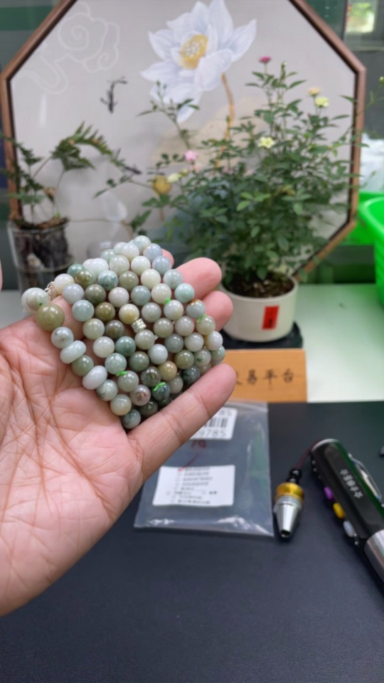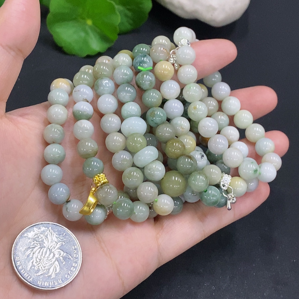 Jadeite bead strand (color origin undetermined)