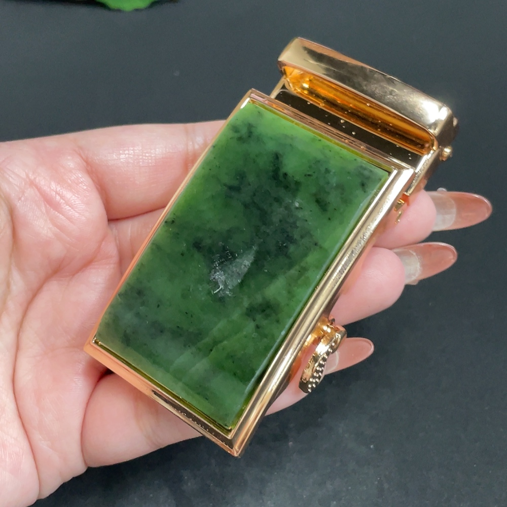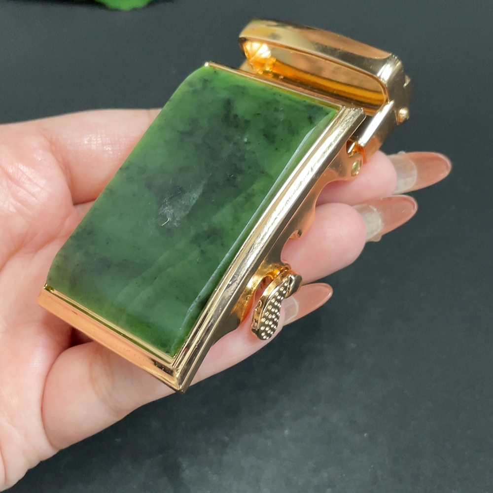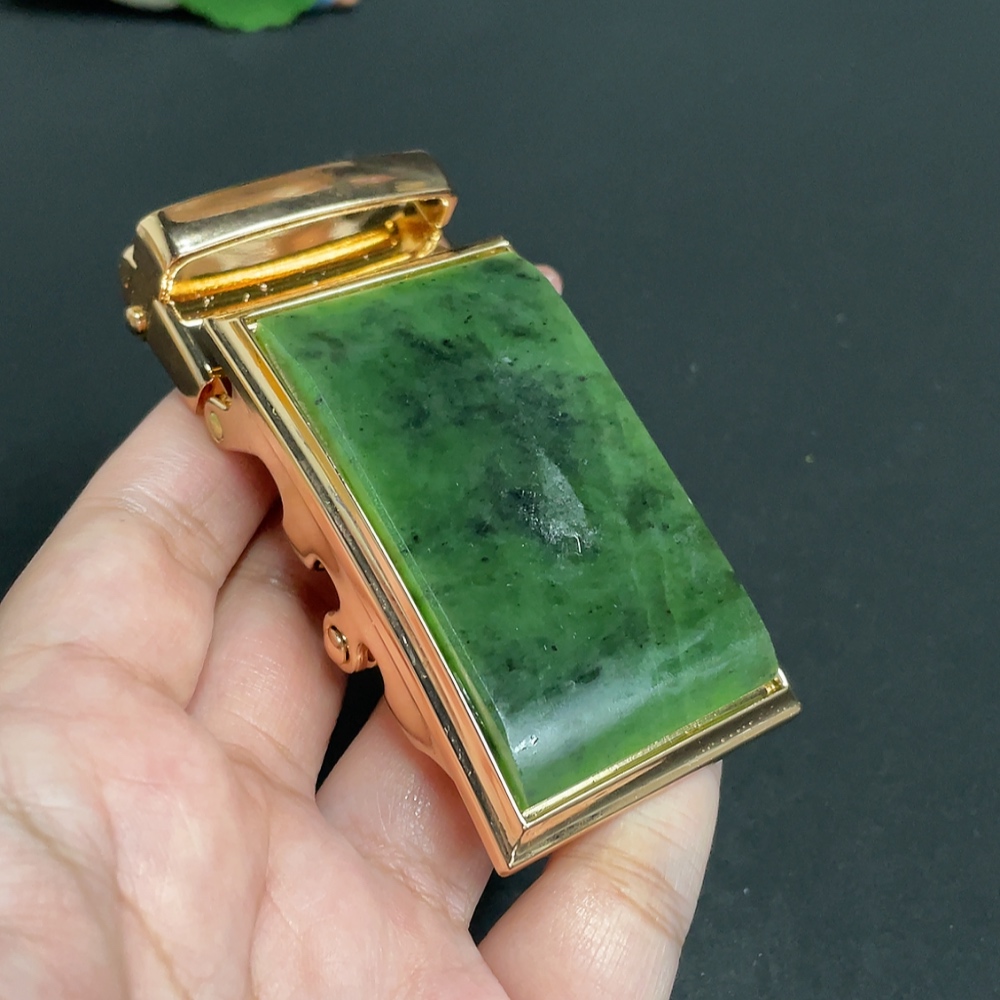 Hetian Jade Inlaid Belt Buckle, Total Weight Approximately 124.9g, Non-Gold