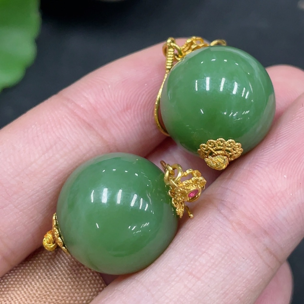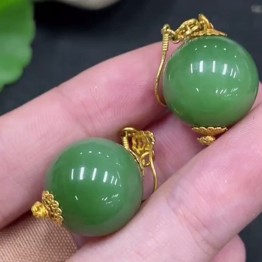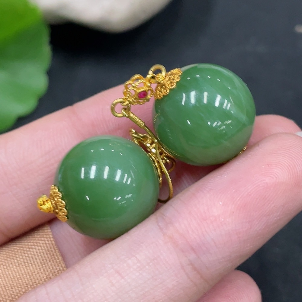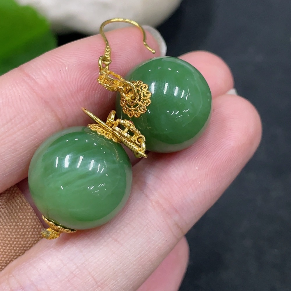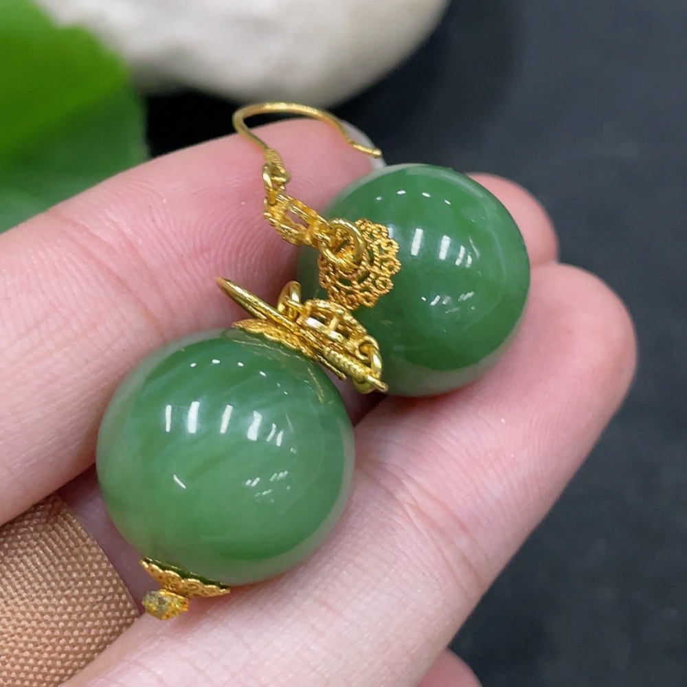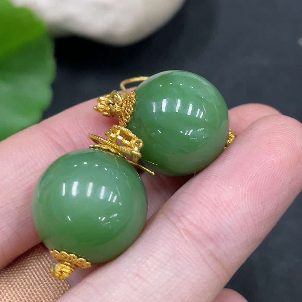 Hetian Jade Inlaid Earrings, Approx. 15.5mm, No Hallmark, Gold Content 72%, Total Weight Approx. 12.7g