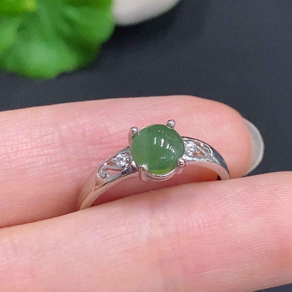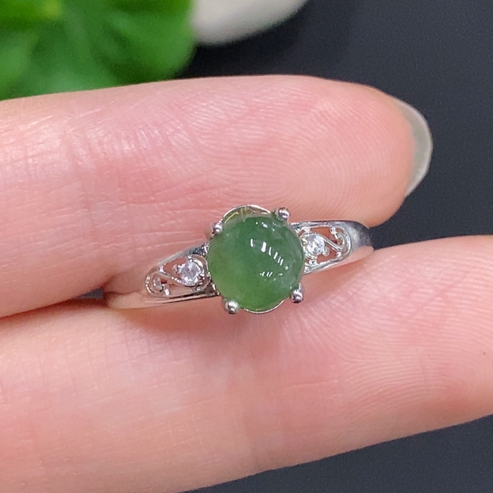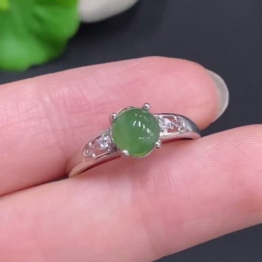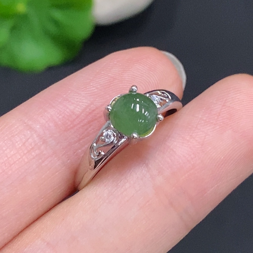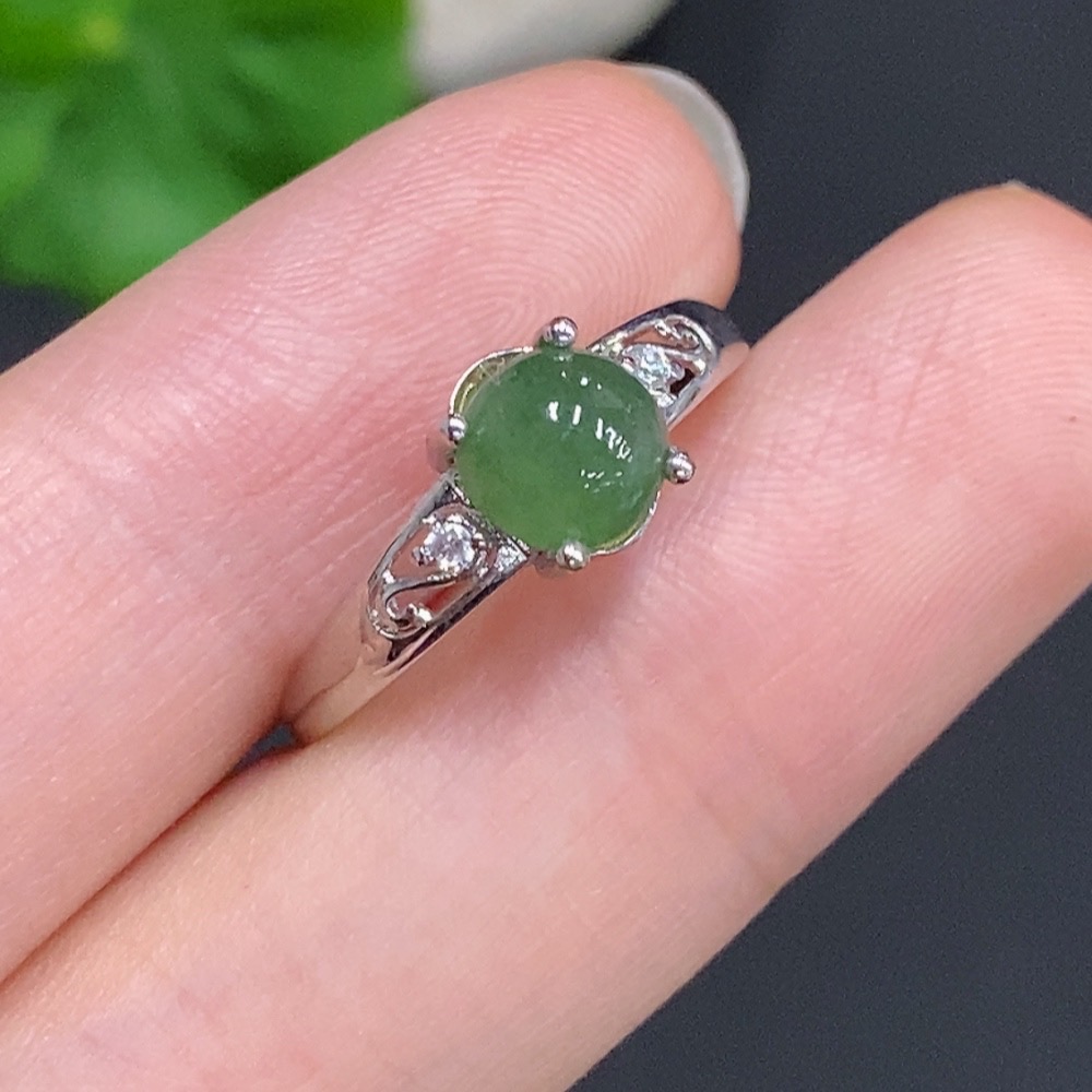 Jadeite Cabochon Ring Non-Gold Setting Adjustable Size Total Weight Approx. 1.2g