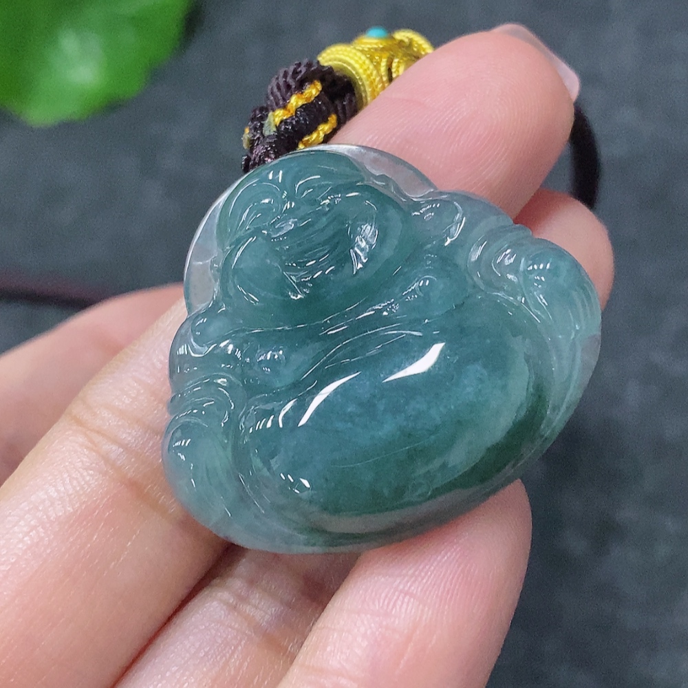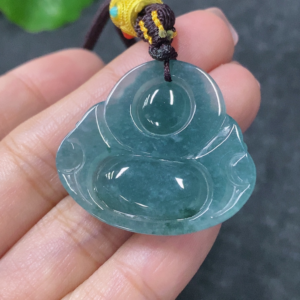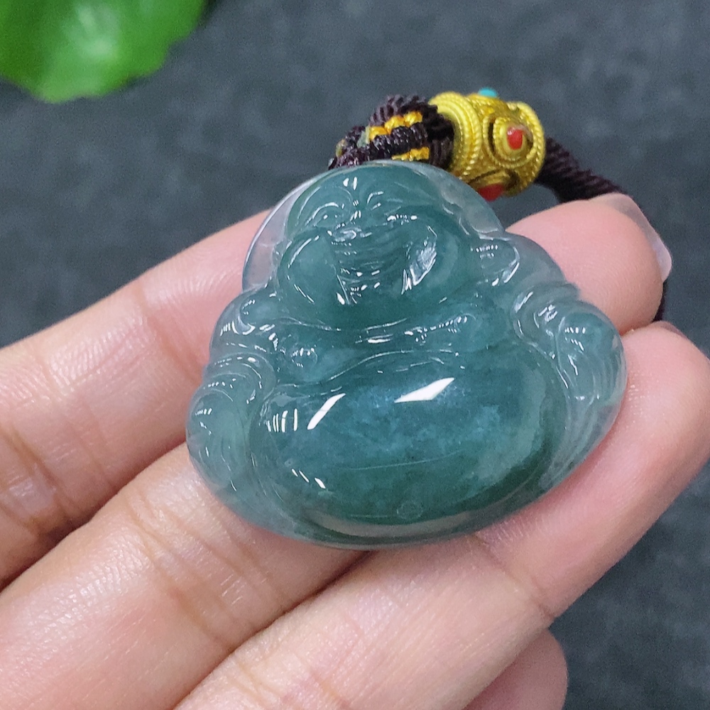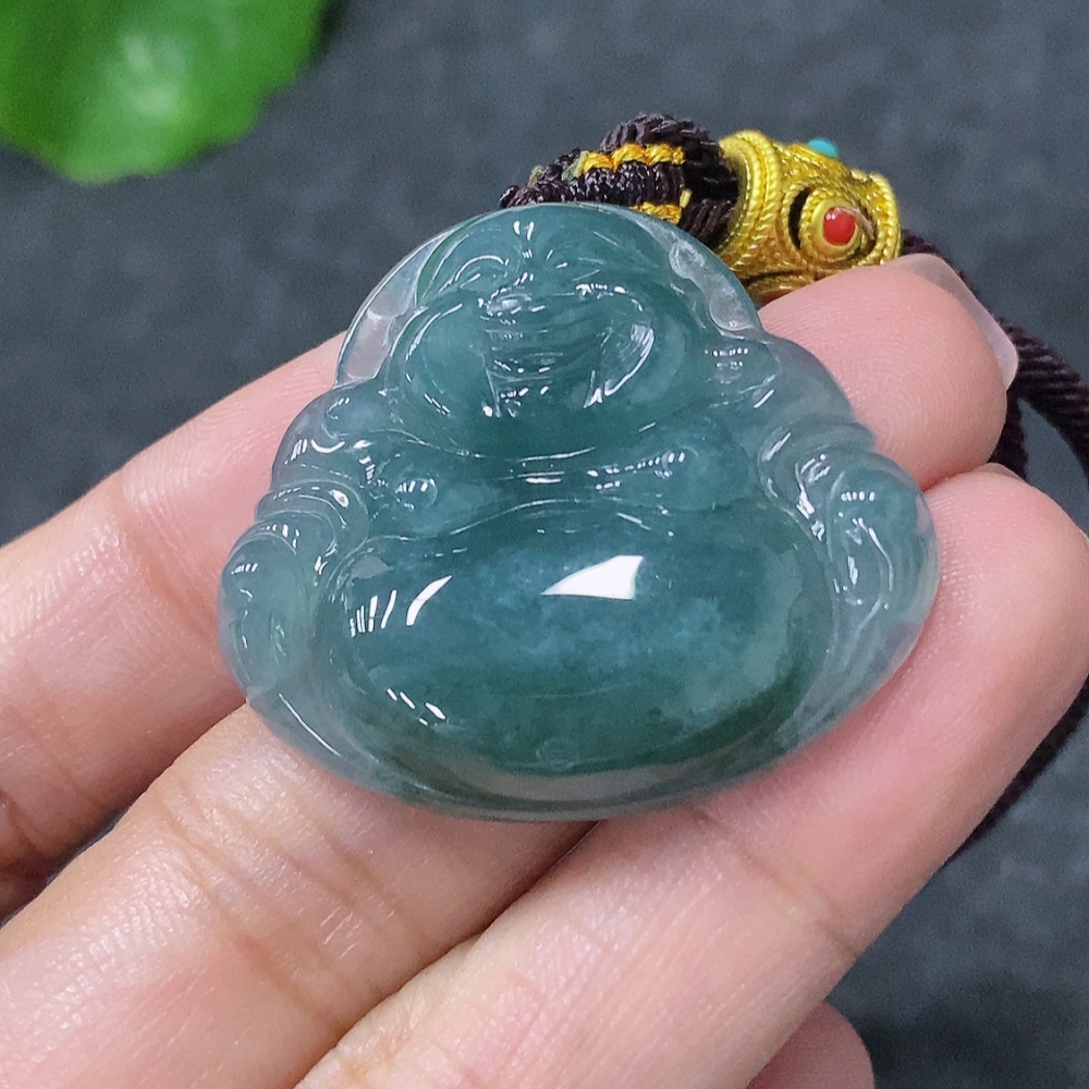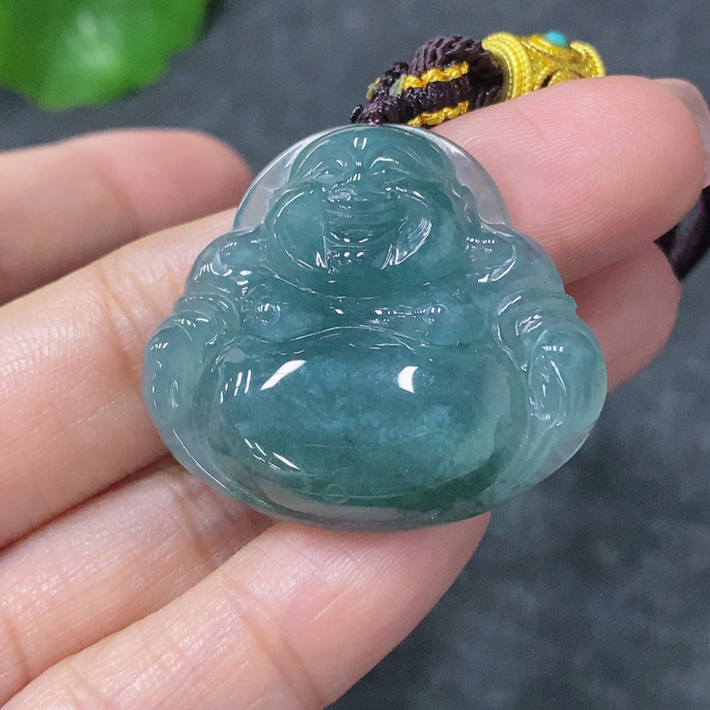 Jadeite Buddha Pendant with Non-Gold Rope, Total Weight Including Rope Approx. 14.2g
