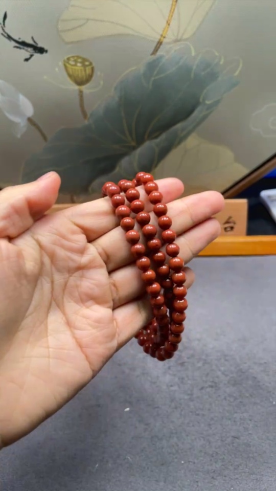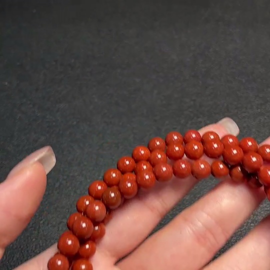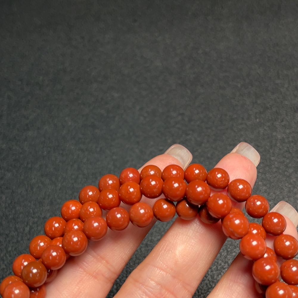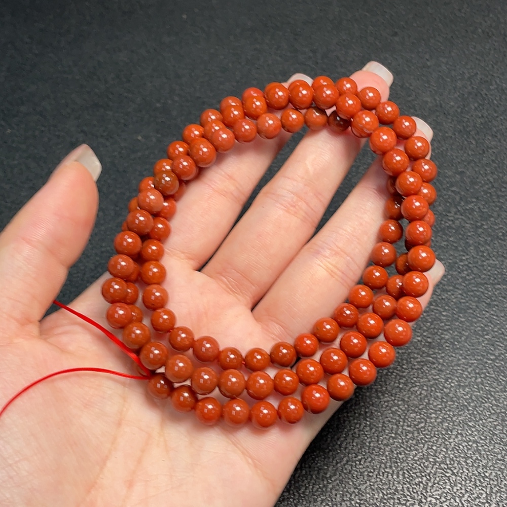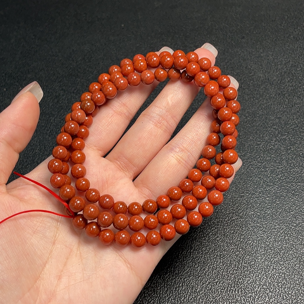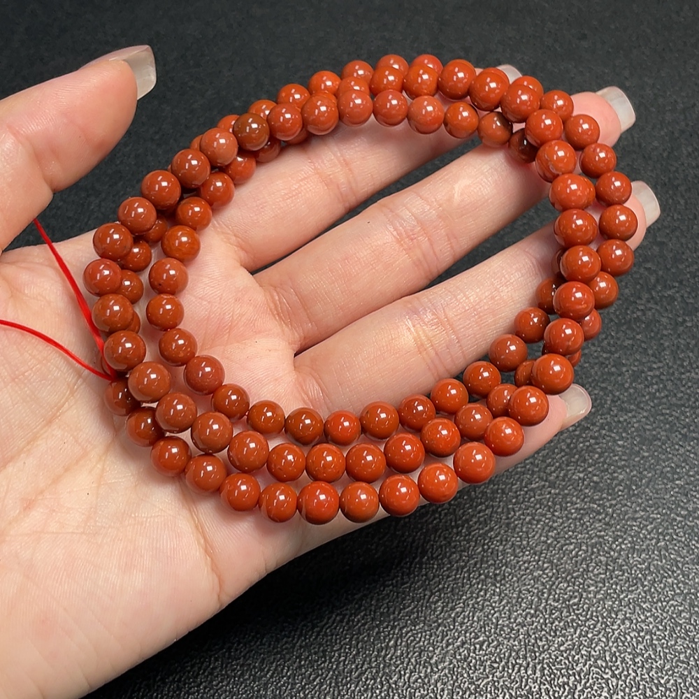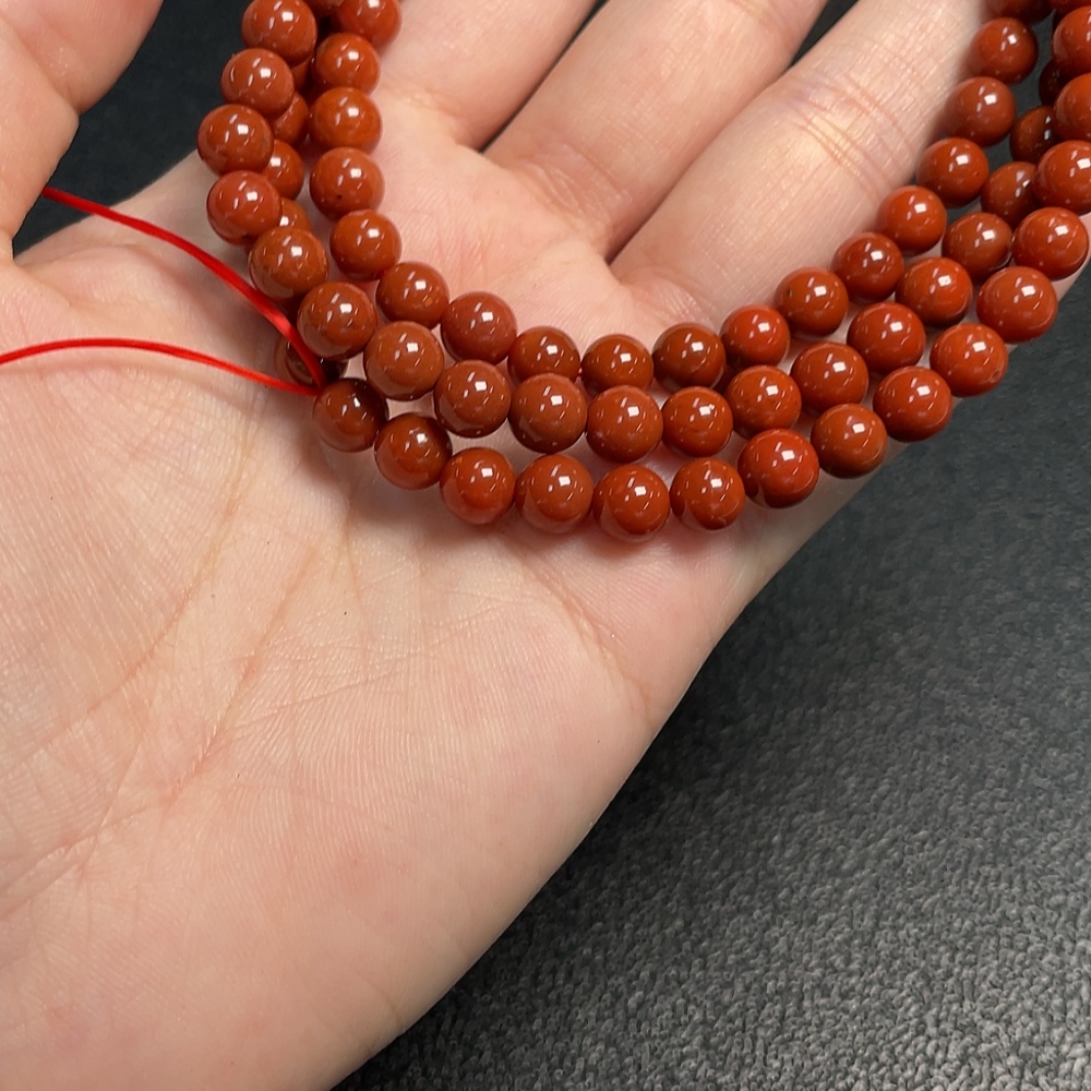 South Red Agate Bead Necklace with Visible Organic Matter, Total Weight Approximately 42.79g, About 6.4mm in Size