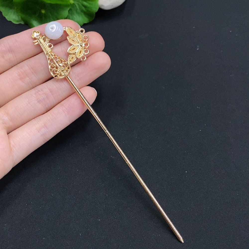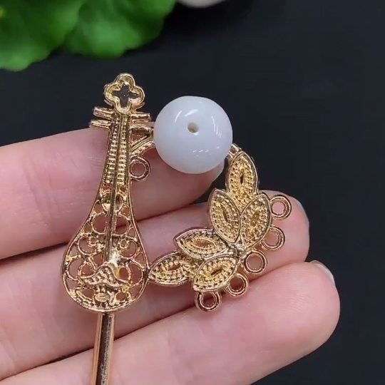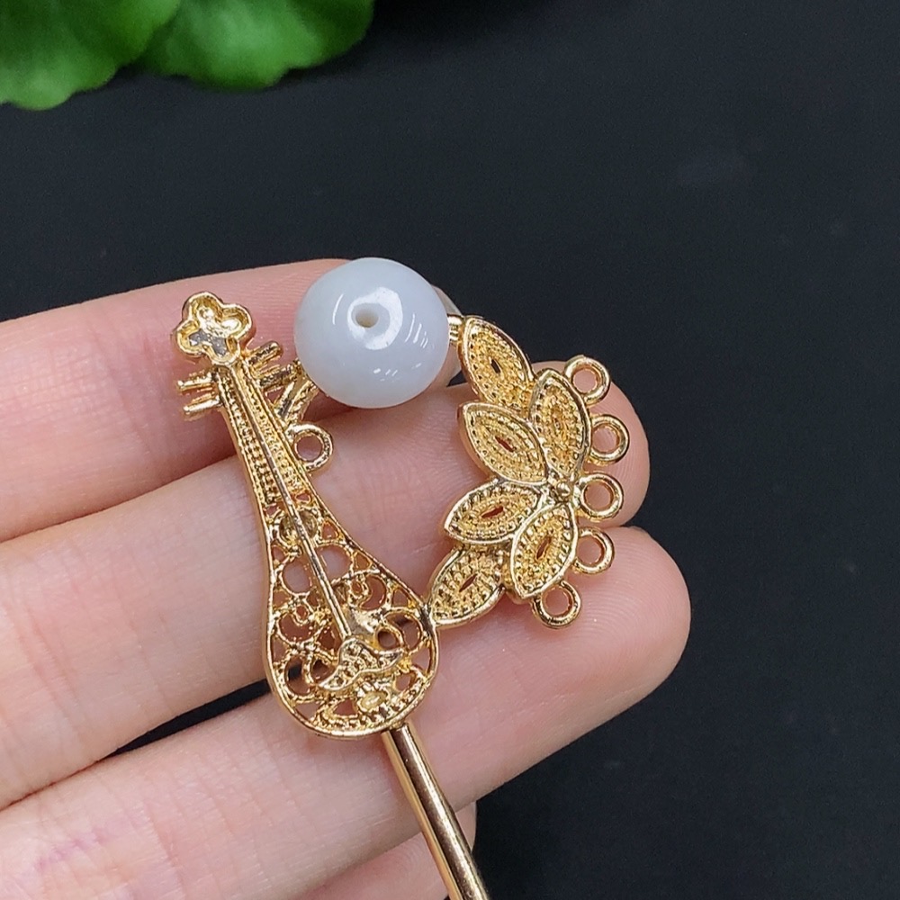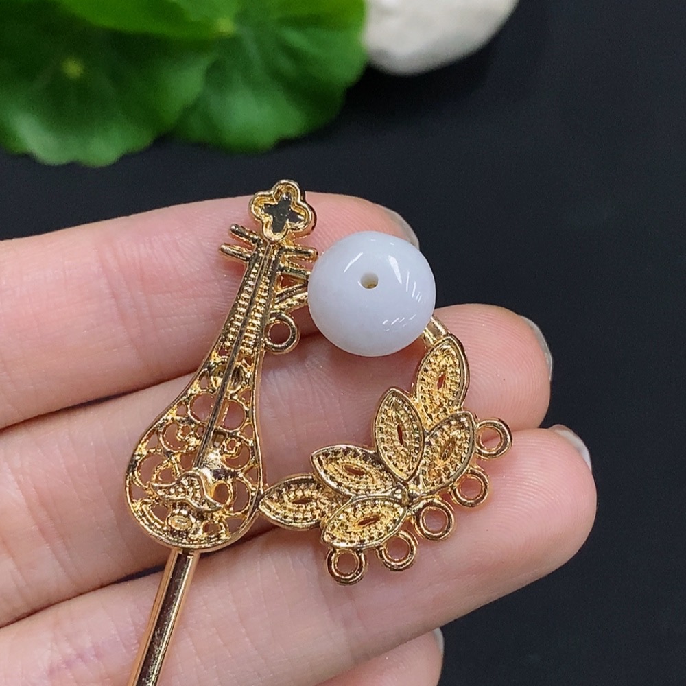 Jadeite Single Bead Inlaid Hairpin Non-Gold Inlaid Total Product Weight Approximately 9.1g