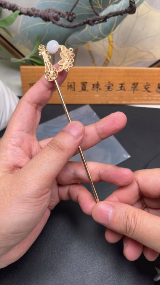 Trezaar - Jadeite Single Bead Inlaid Hairpin Non-Gold Inlaid Total Product Weight Approximately 9.1g