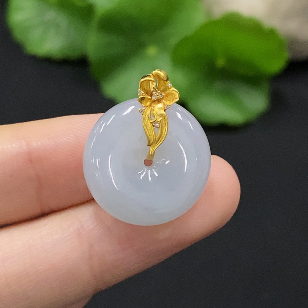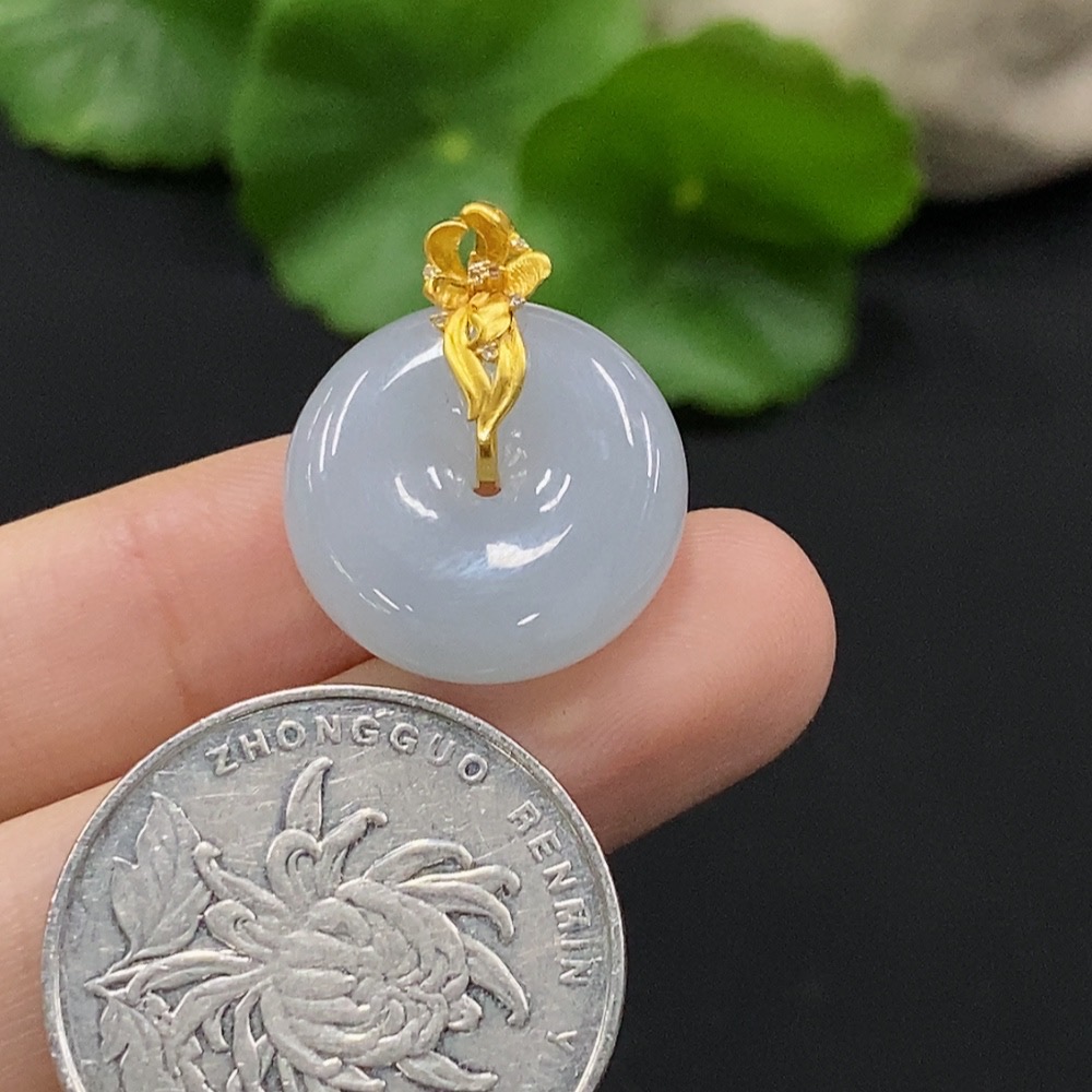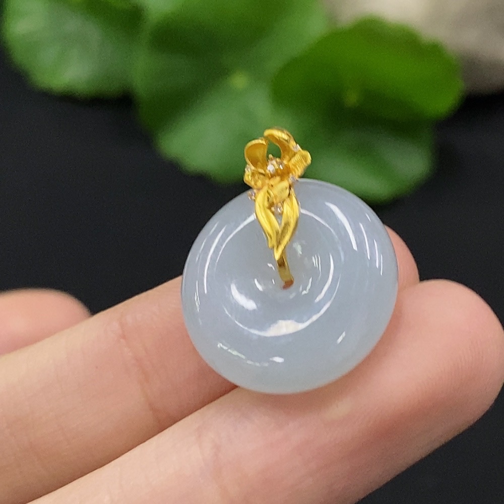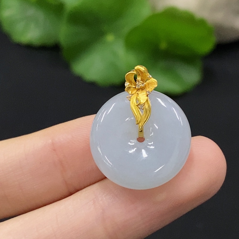 Jadeite Safety Buckle Pendant, No Hallmark, 18K Gold Content Tested, Accented with Diamonds, Total Weight Approximately 4.28g