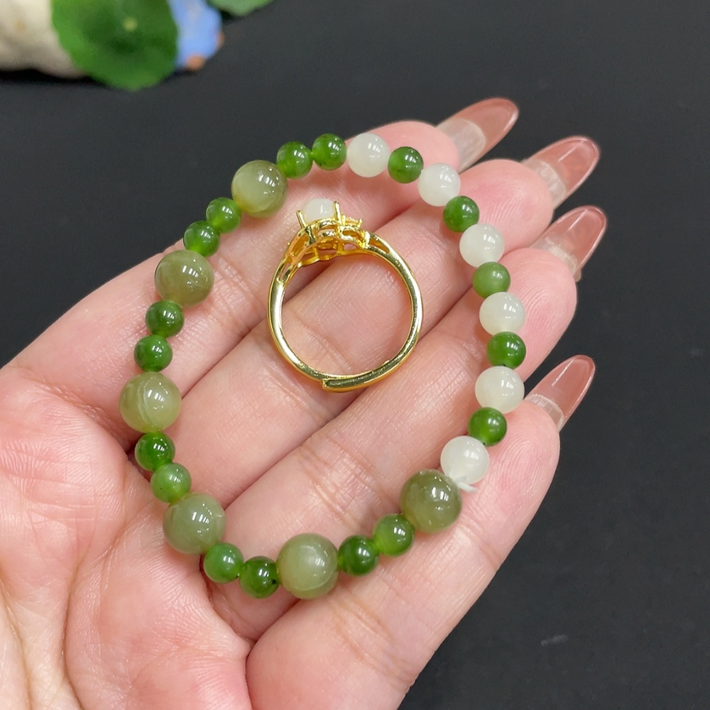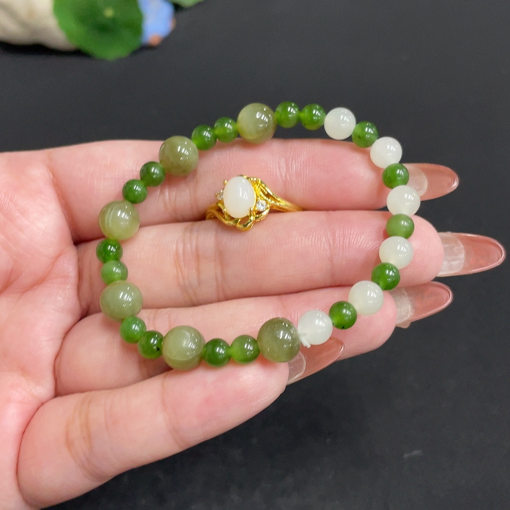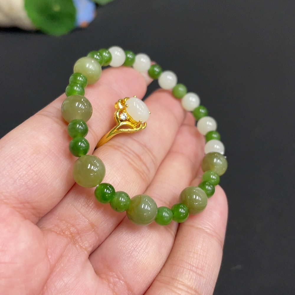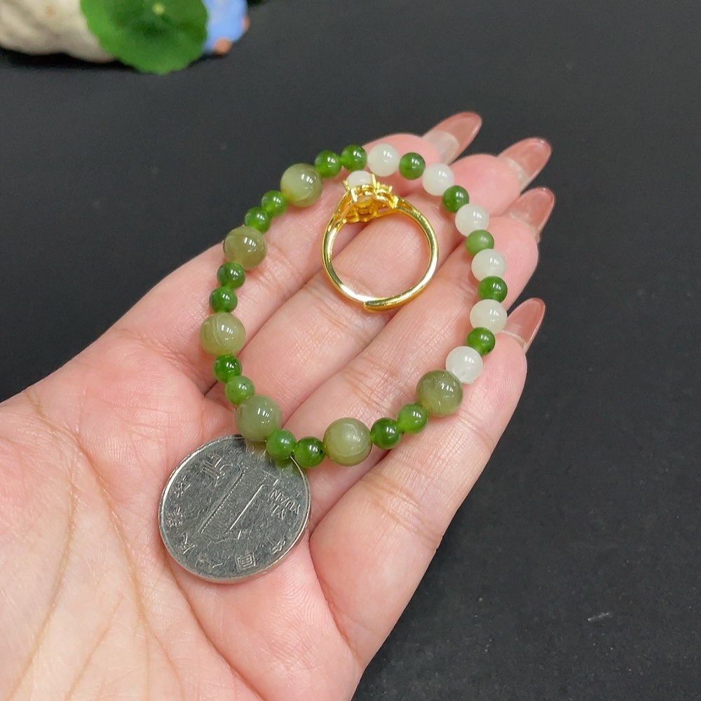 Hetian Jade Bracelet Inlaid with Adjustable Ring Total Weight Approx. 12.1g Non-Gold