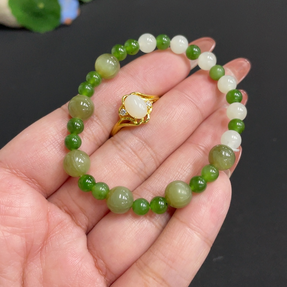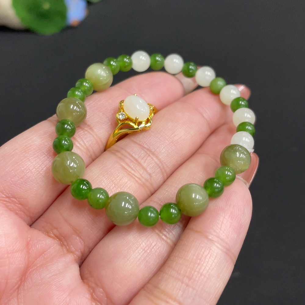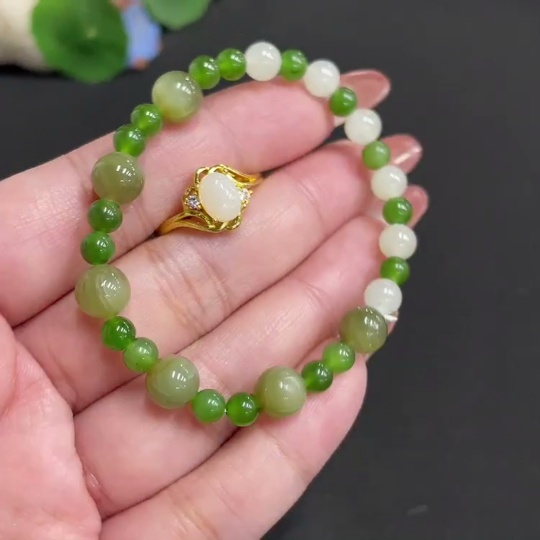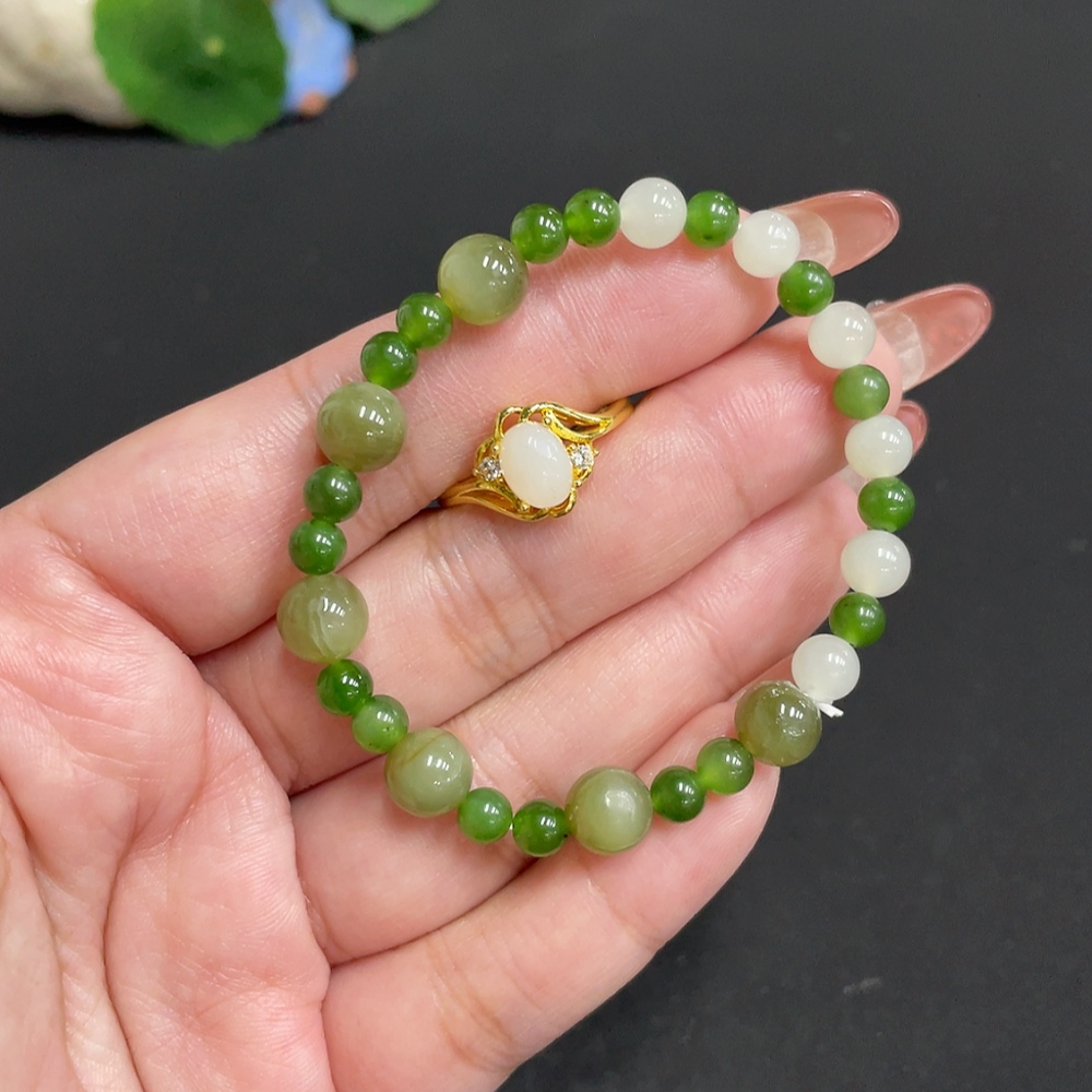 Hetian Jade Bracelet Inlaid with Adjustable Ring Total Weight Approx. 12.1g Non-Gold