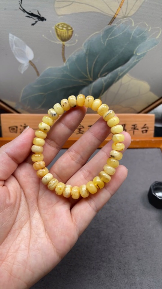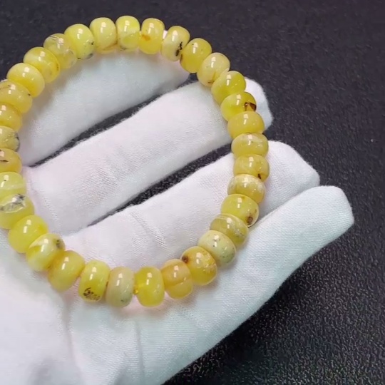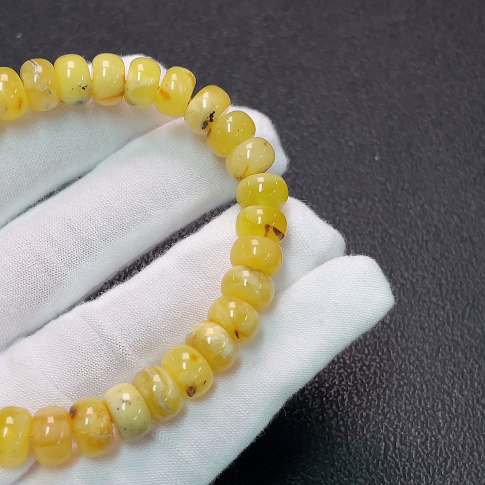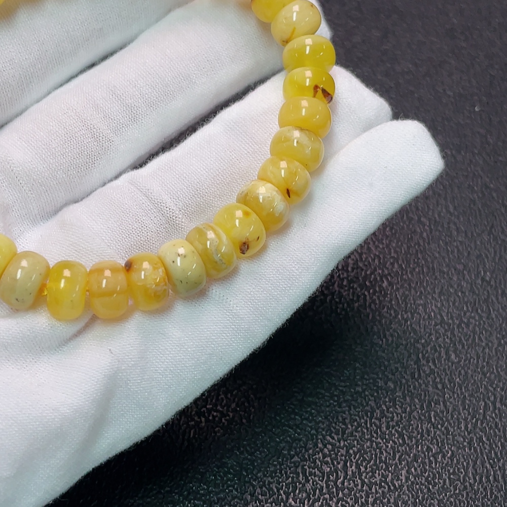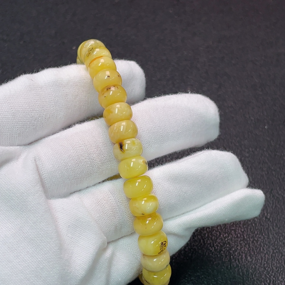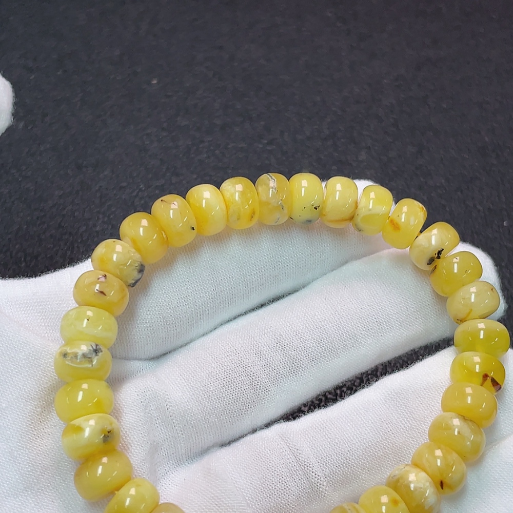 Amber Beeswax Bracelet, Total Weight Approx. 10.47g, Bead Size About 9mm