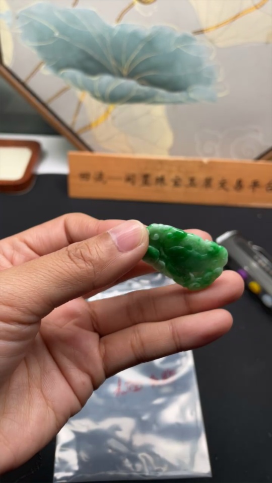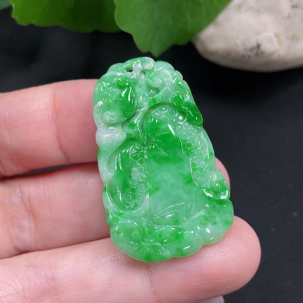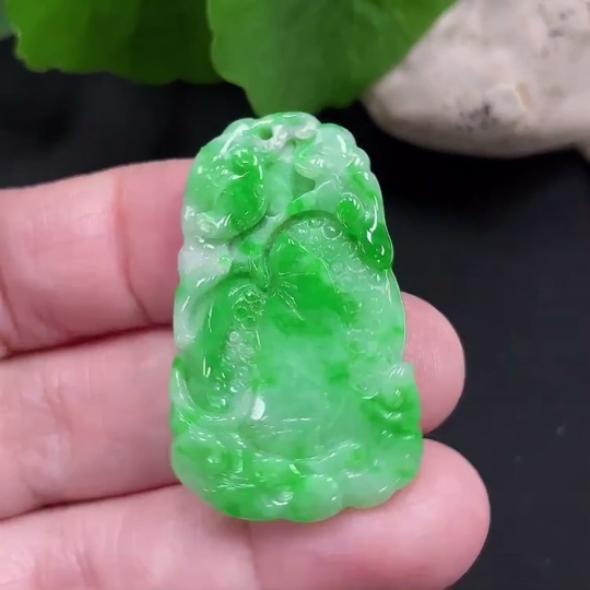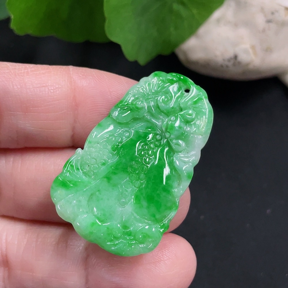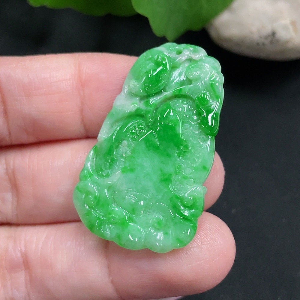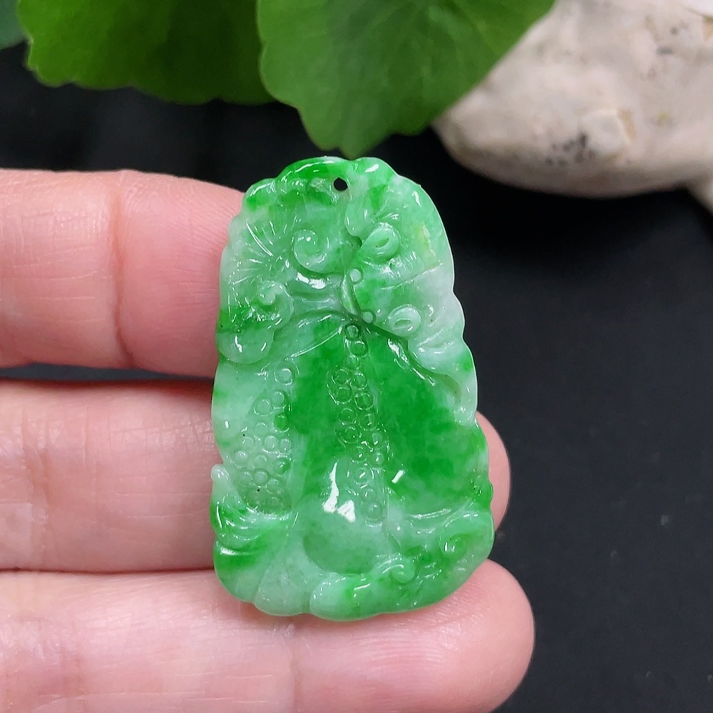 Jadeite Fu Shou pendant with a total weight of approximately 7.3g (surface treated with resin)