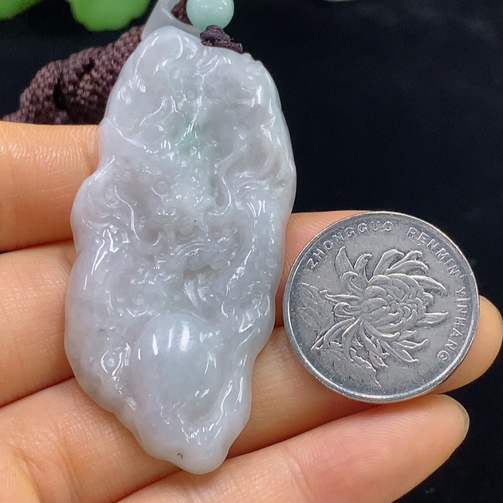 Jadeite Dragon Pendant Total Weight Approx. 24.32g (including rope weight) with non-A beads