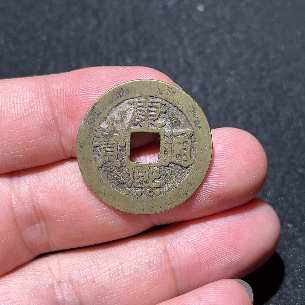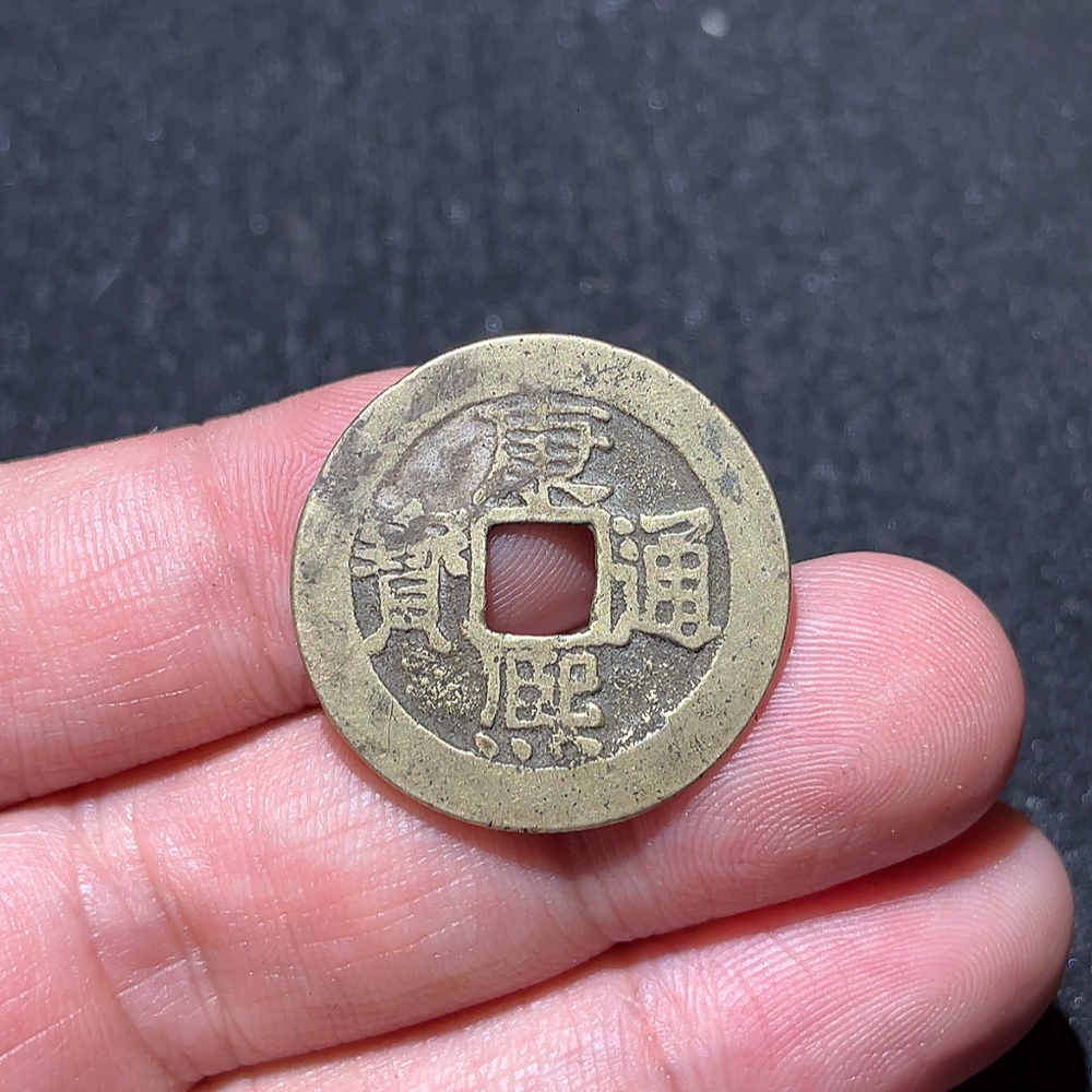 Qing Dynasty Kangxi Tongbao Coin, Baoquan Mint, Yellow and Bright Circulated Ancient Coin
