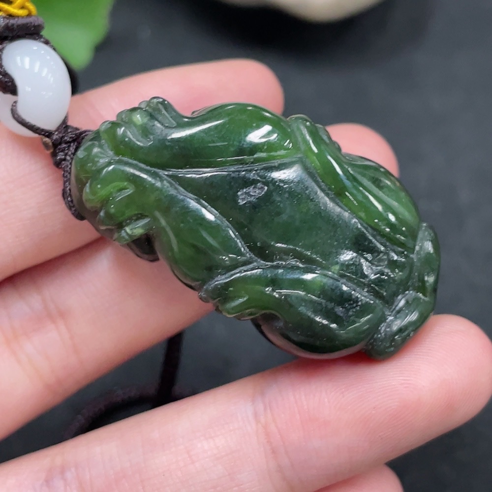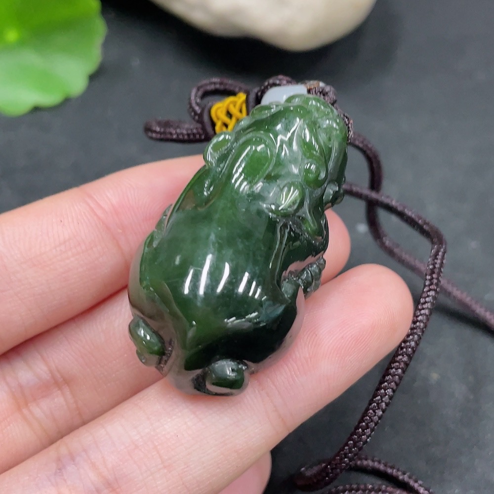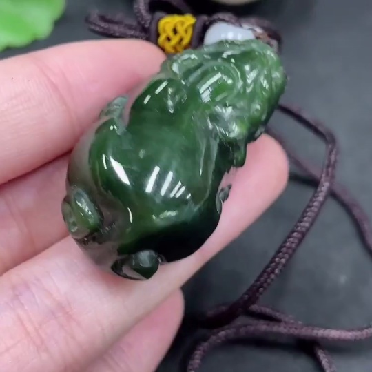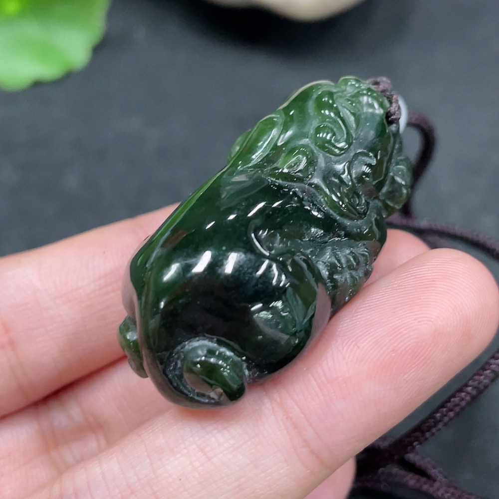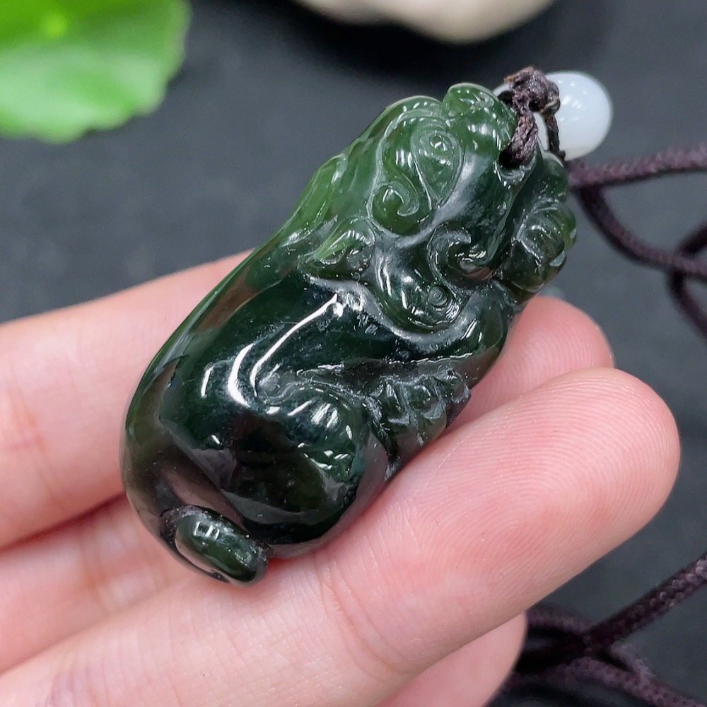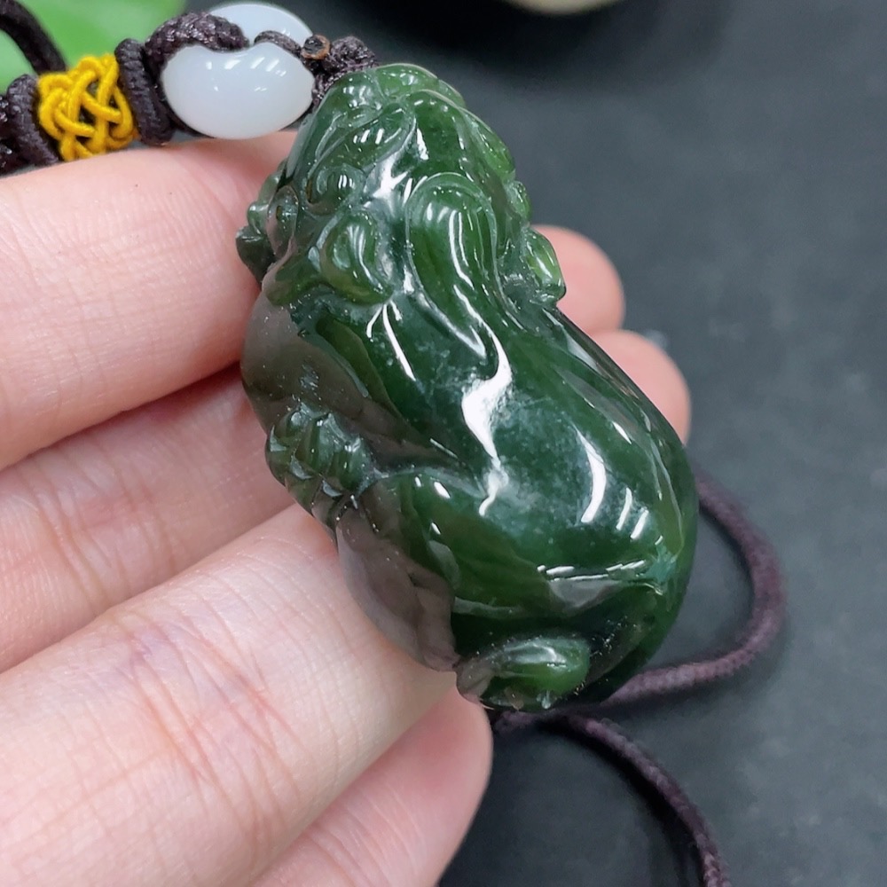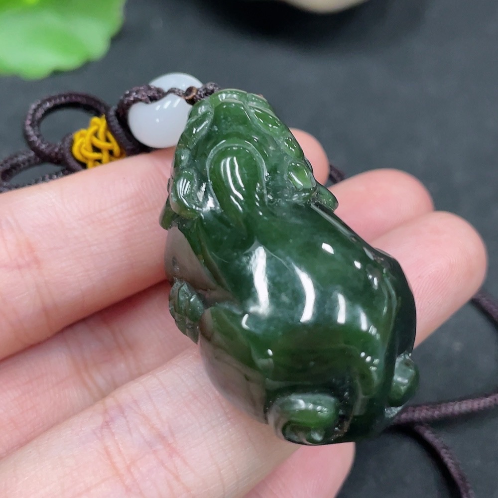 Hetian Jade Pendant Pixiu with Non-Hetian Jade Beads Total Weight Approx. 29.3g (Including Rope)