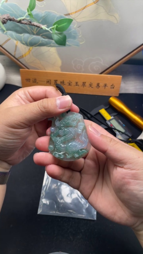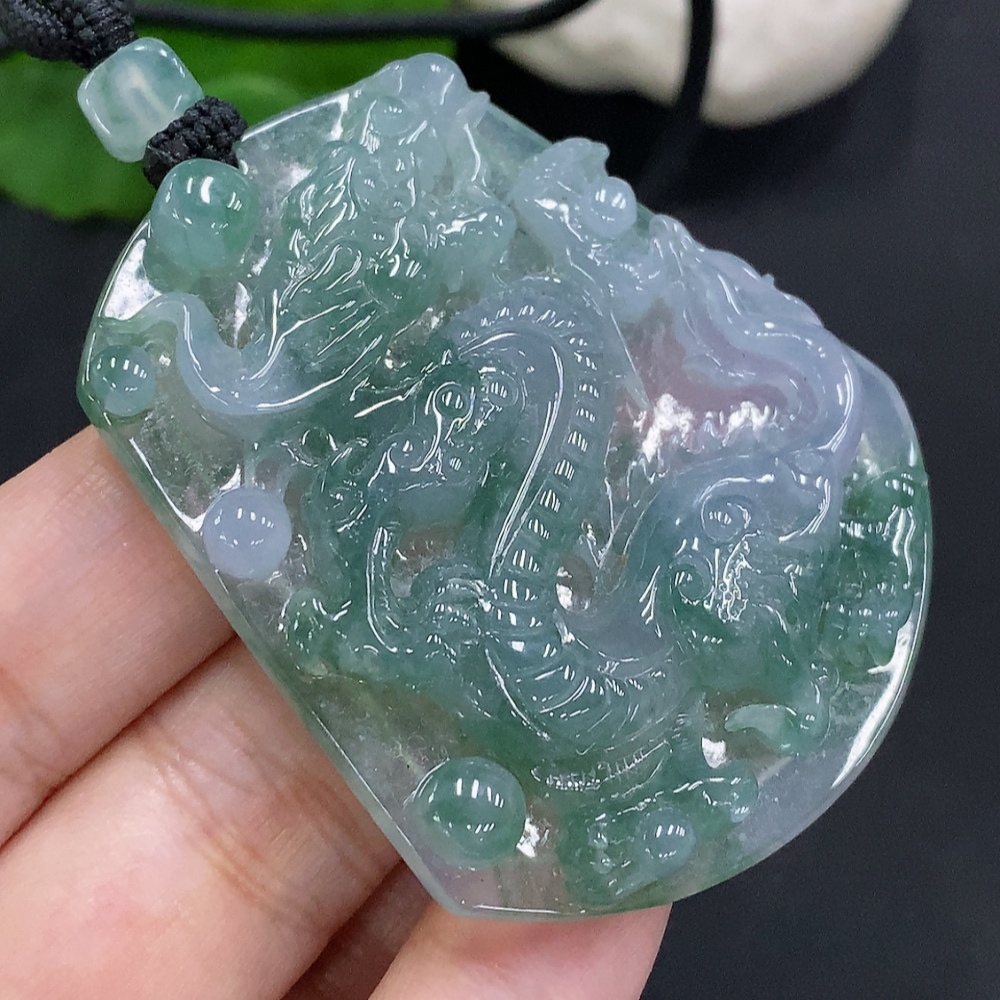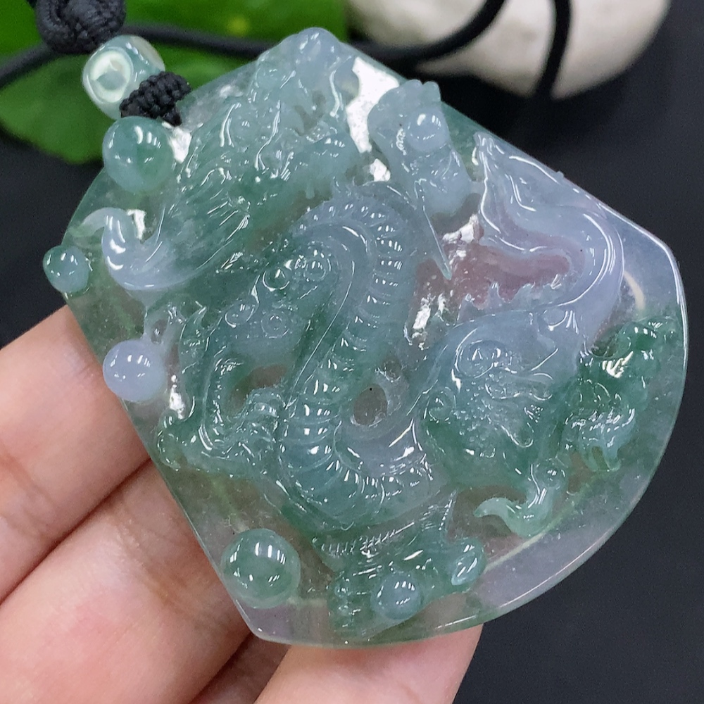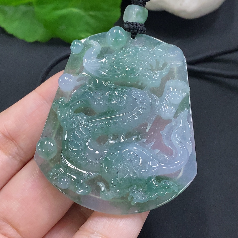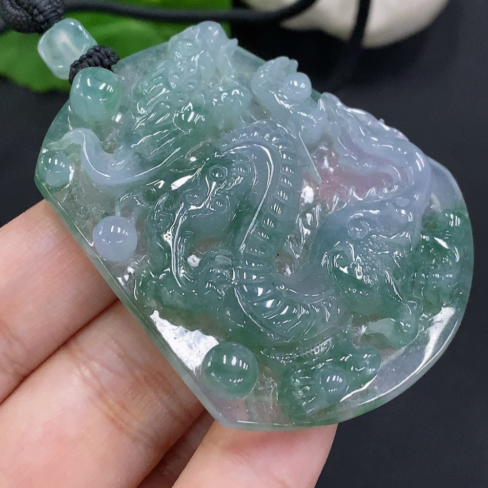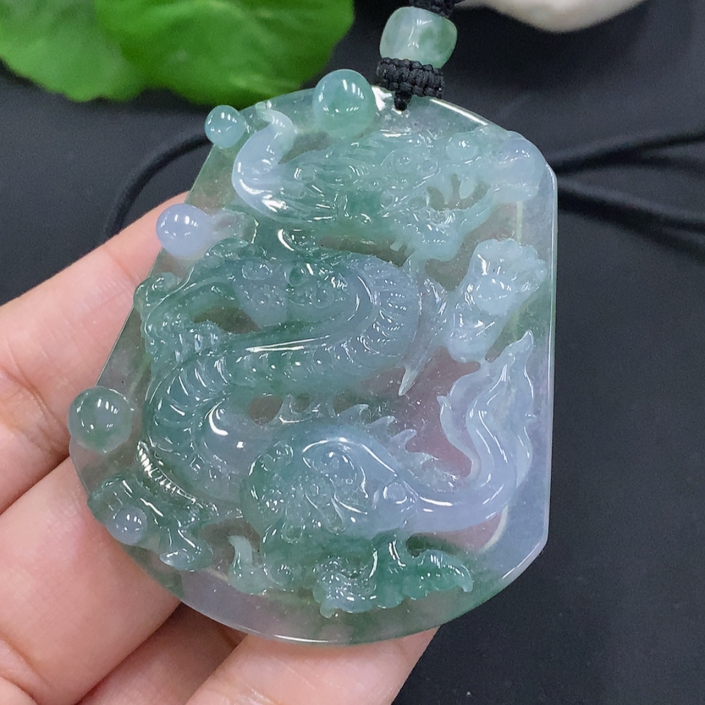 Jadeite Dragon Pendant with Cord, Total Weight Approximately 41.9g