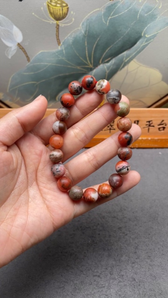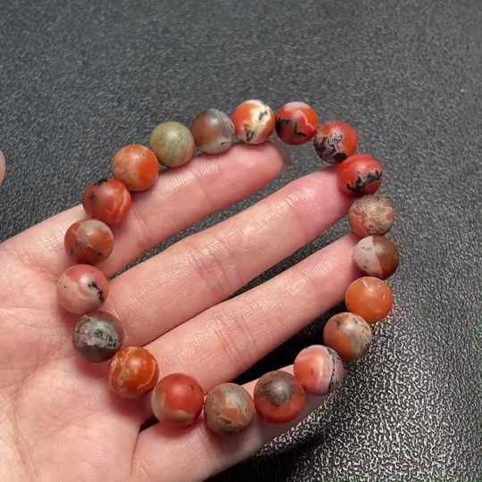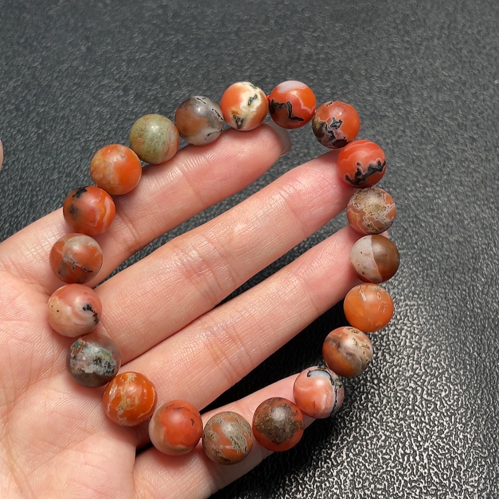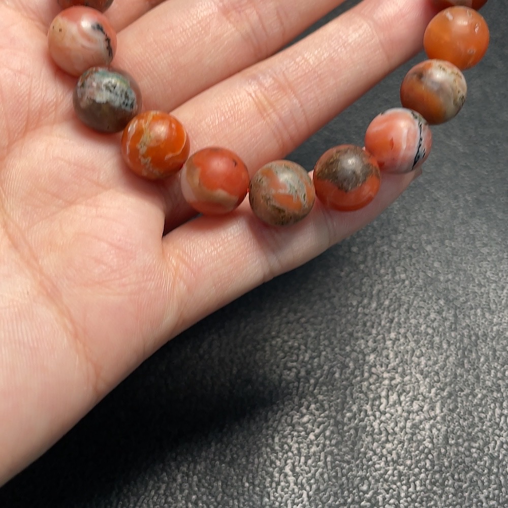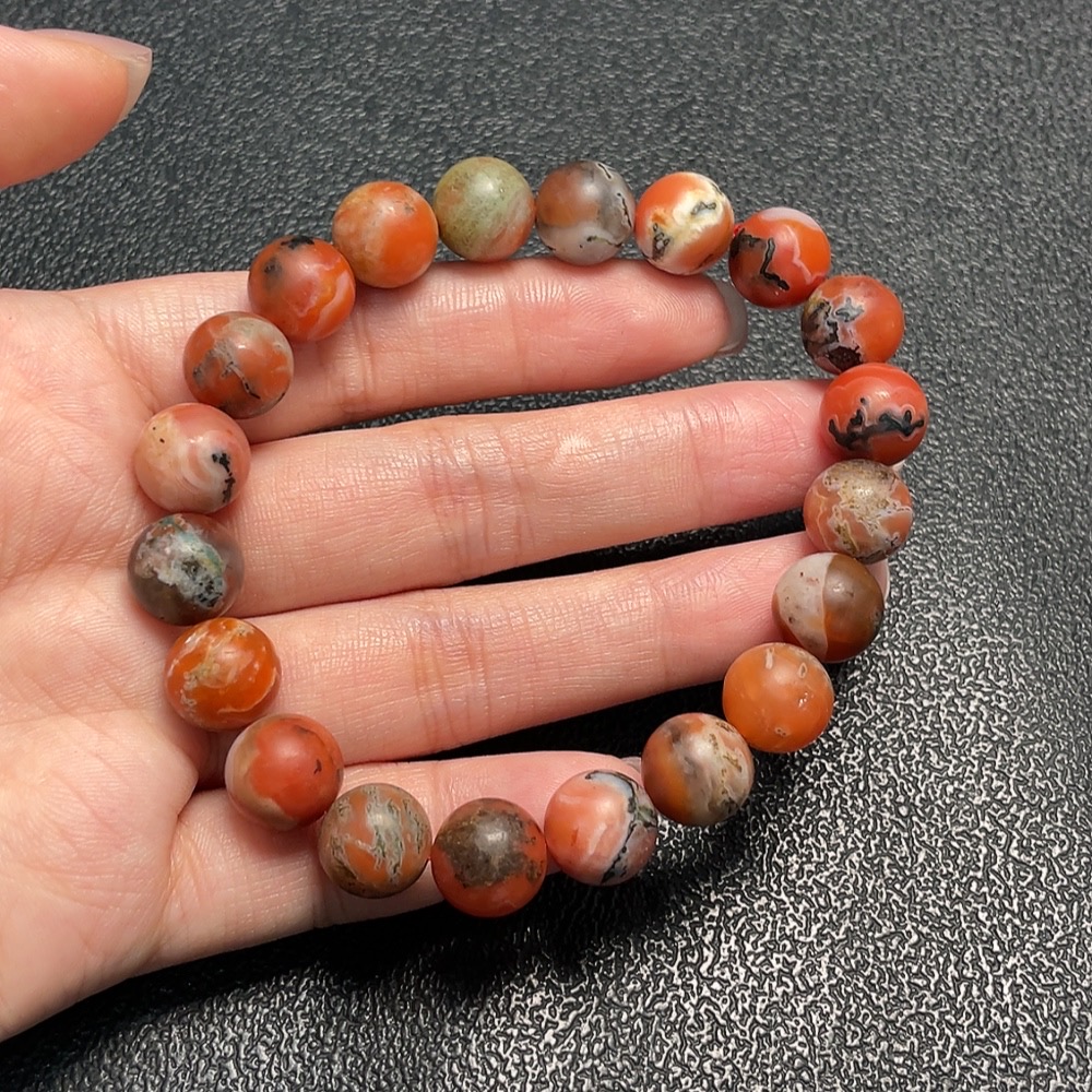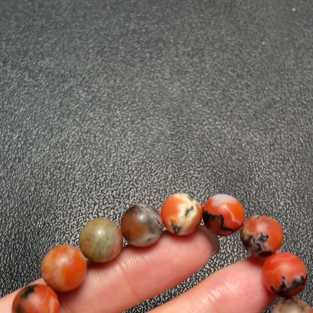 Red Agate Bracelet with Other Mineral Components and Visible Organic Matter, Total Weight Approx. 33.1g (Mineral)