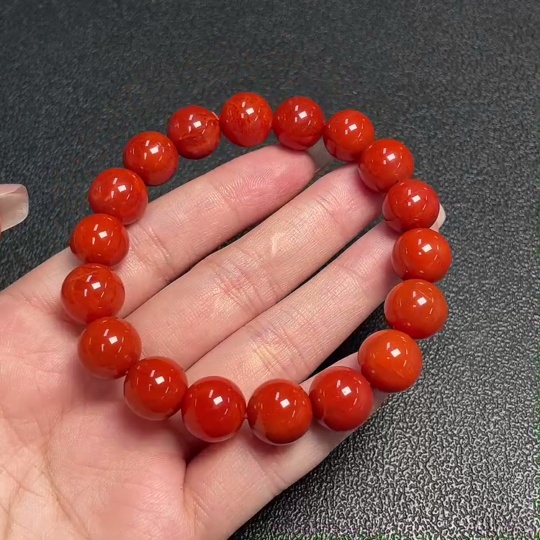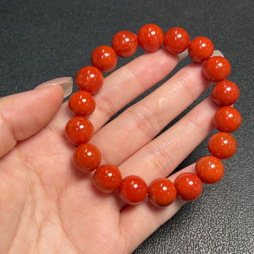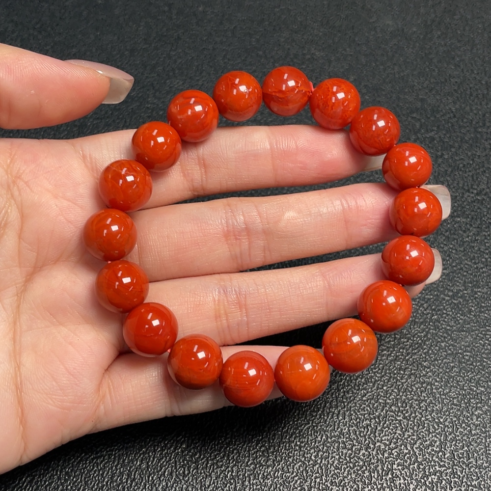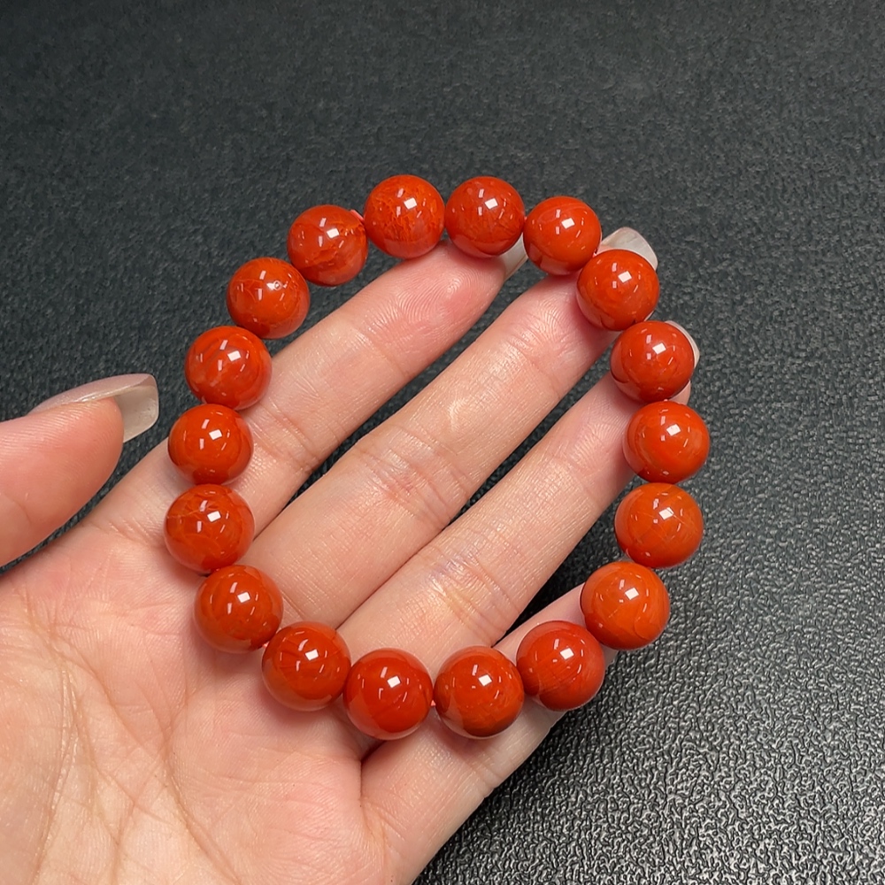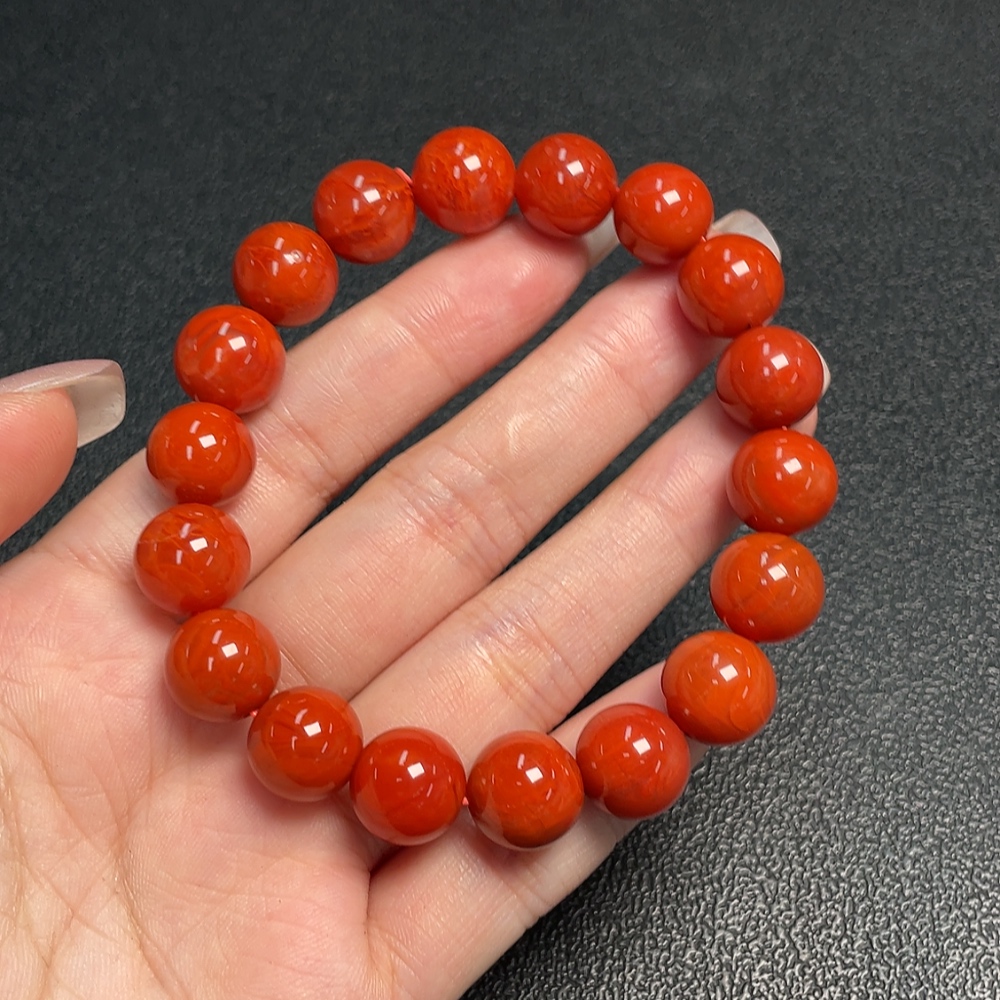 South Red Agate Bracelet with Visible Organic Matter, Total Weight Approx. 39.09g, Size About 11.4mm