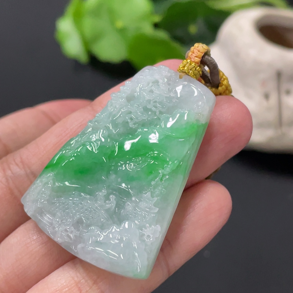 Jadeite landscape pendant, total weight approximately 22.1g