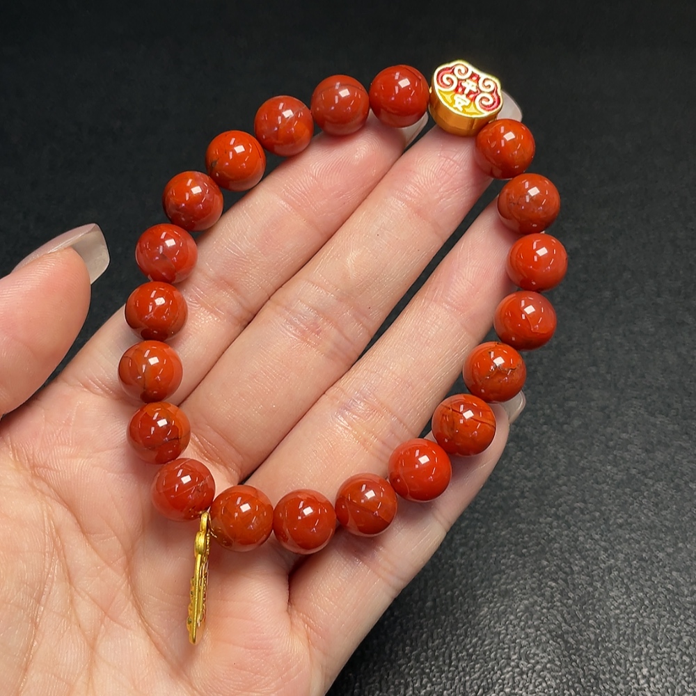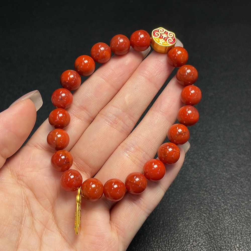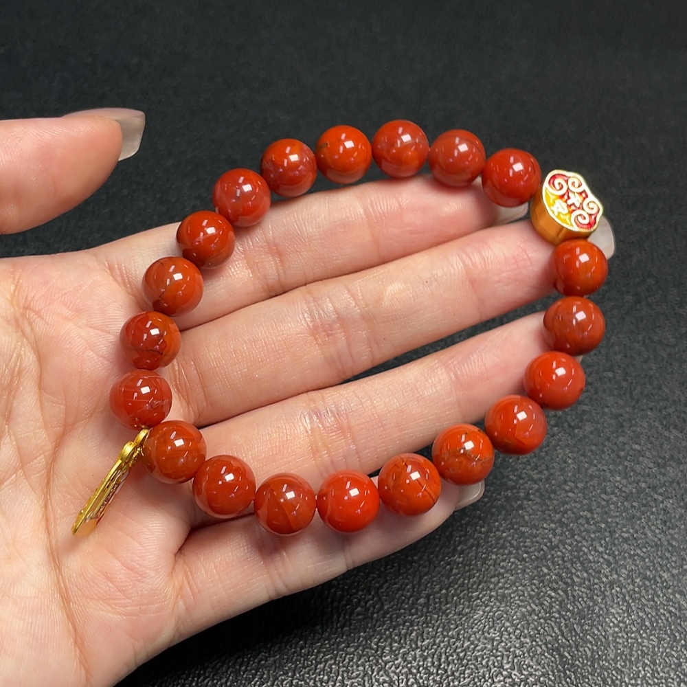 Red Agate Bracelet with Visible Organic Matter, Total Weight Approx. 29.28g, Size About 9.8mm, Non-Gold