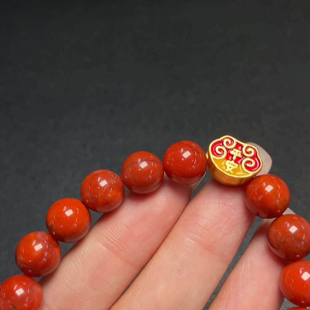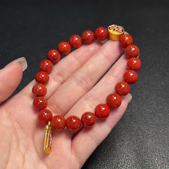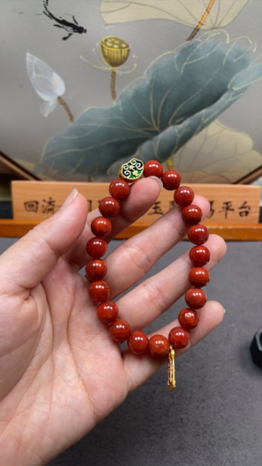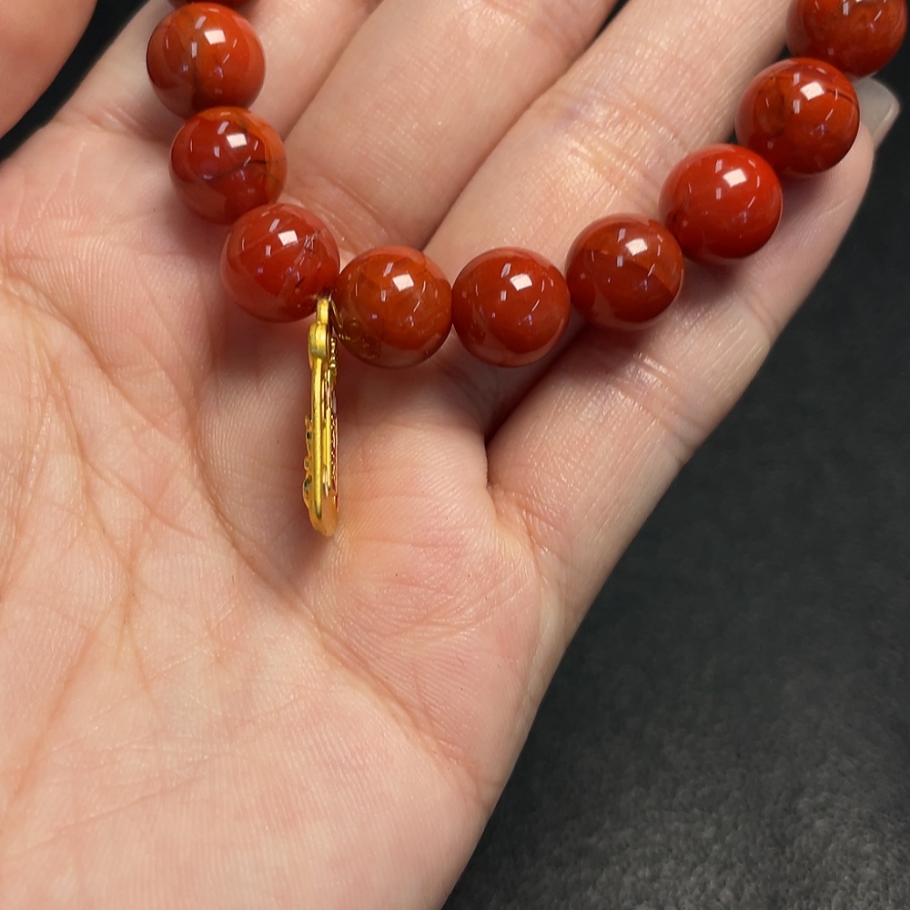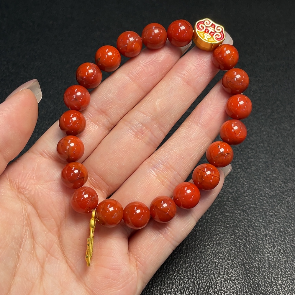 Red Agate Bracelet with Visible Organic Matter, Total Weight Approx. 29.28g, Size About 9.8mm, Non-Gold