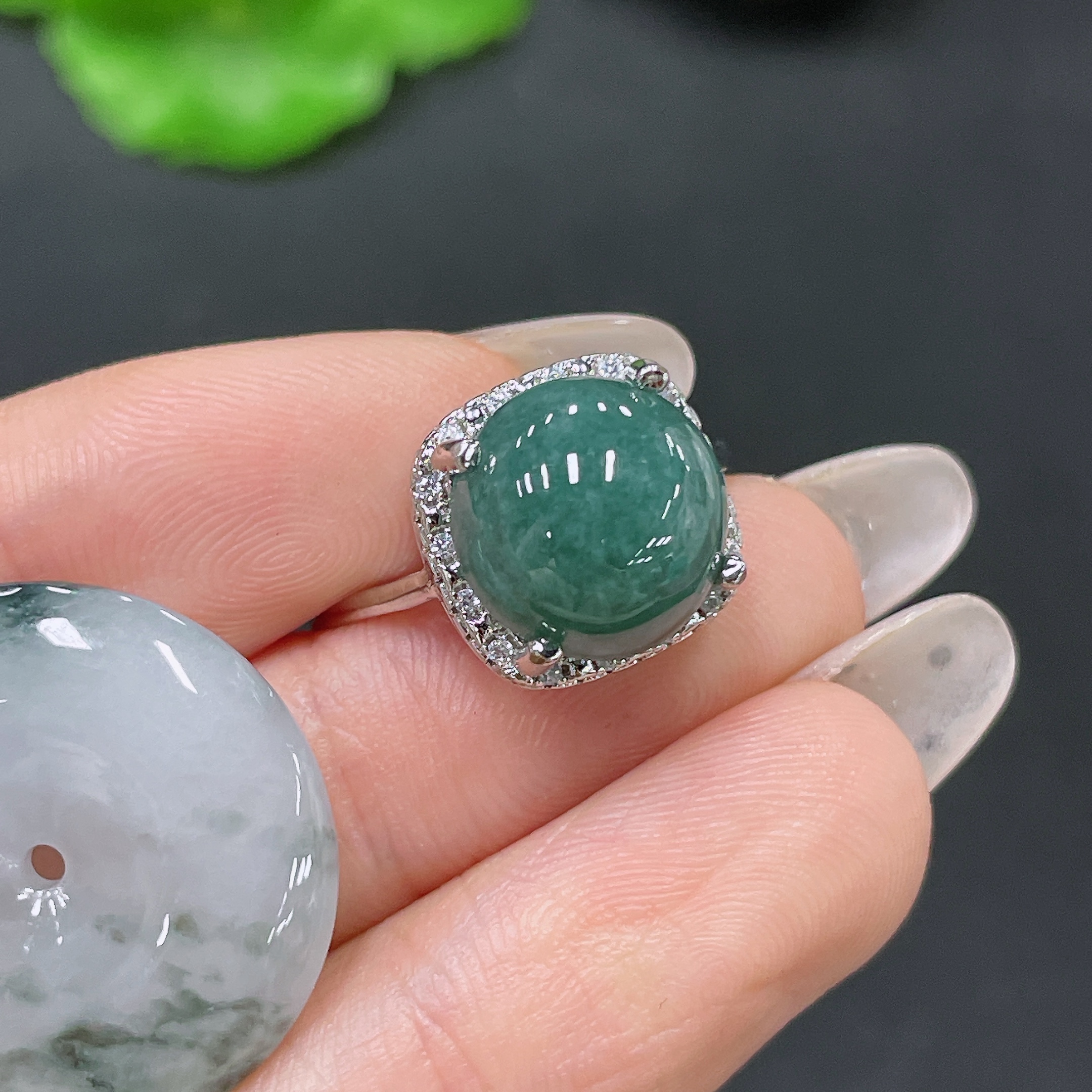 Jadeite Safety Buckle Pendant/Cabochon Setting Ring Non-Gold Adjustable