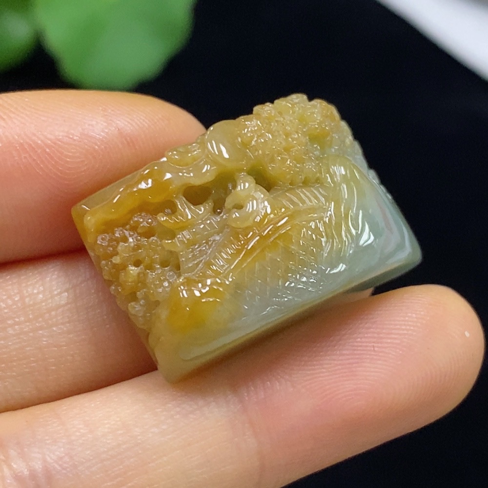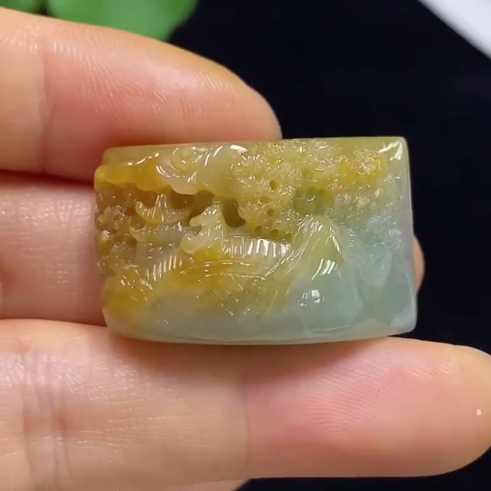 Jadeite Landscape Pendant Total Weight Approximately 16.43g Yellow Part Color Origin Undetermined