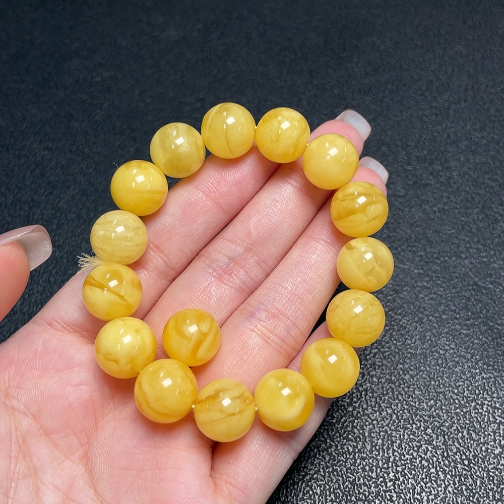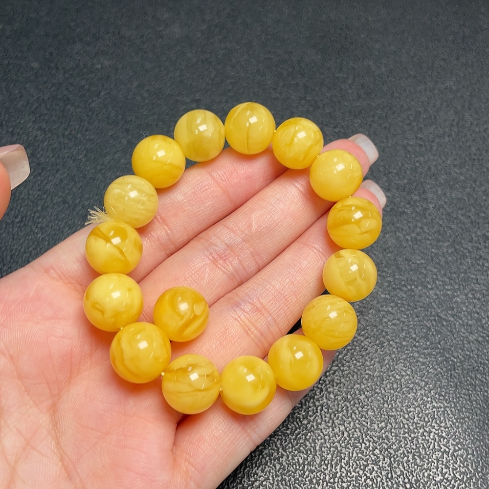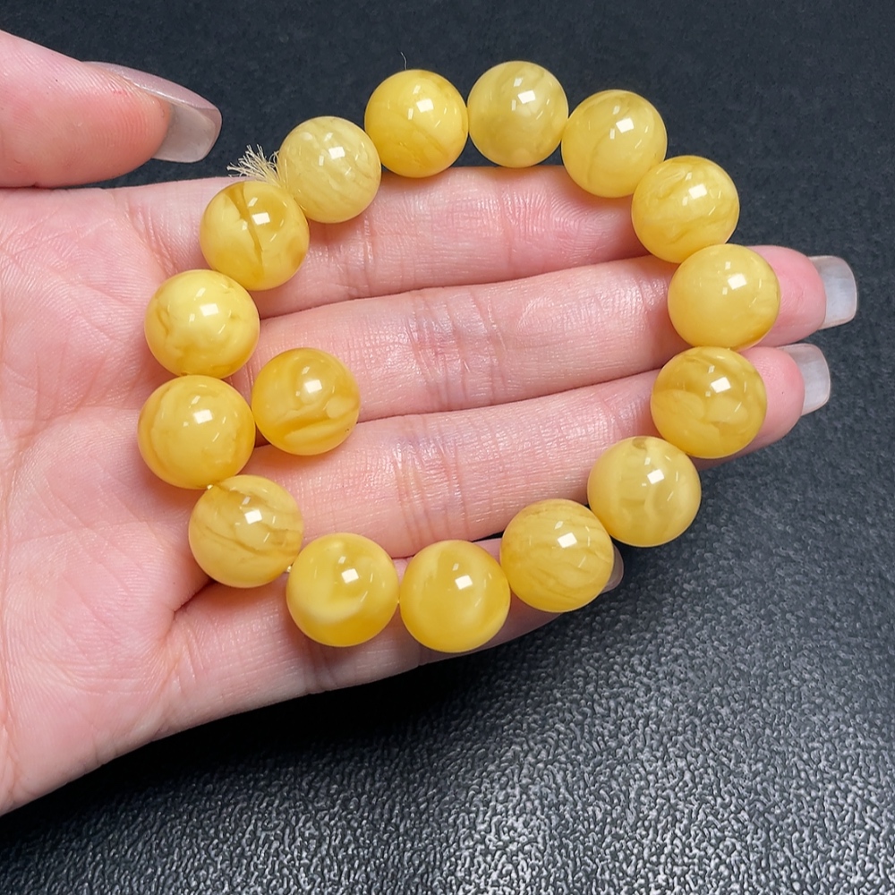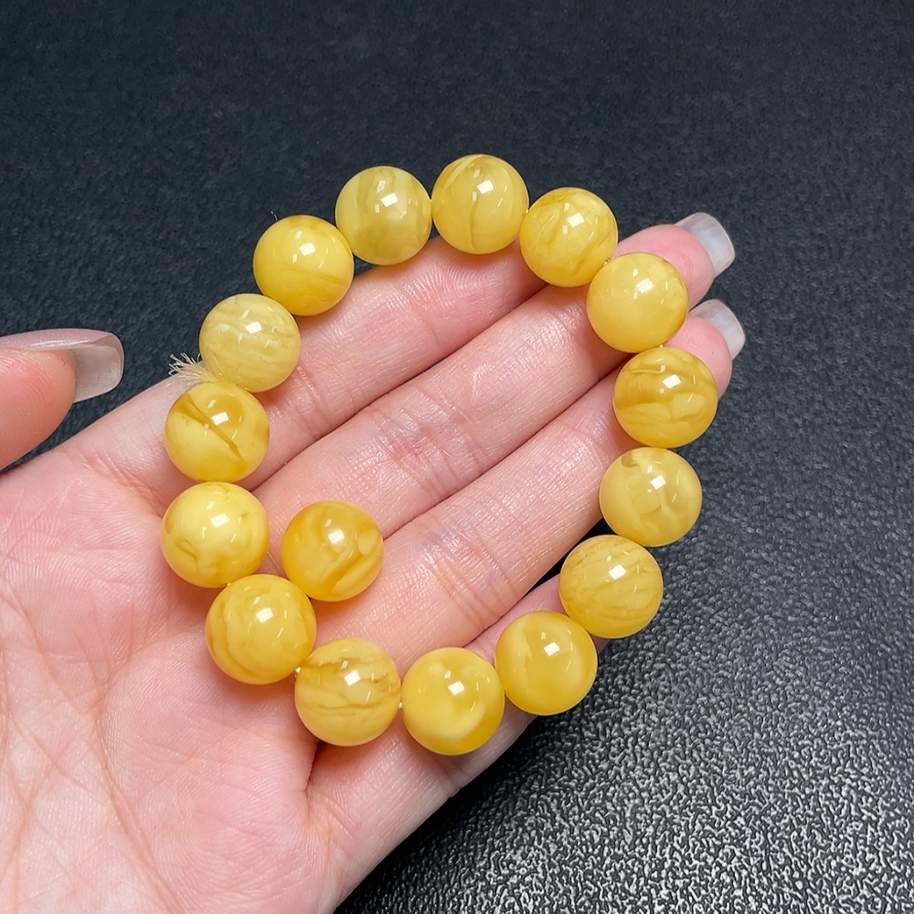 Amber Beeswax Bracelet + Beads, Total Weight Approx. 16.19g, Size About 12.1mm