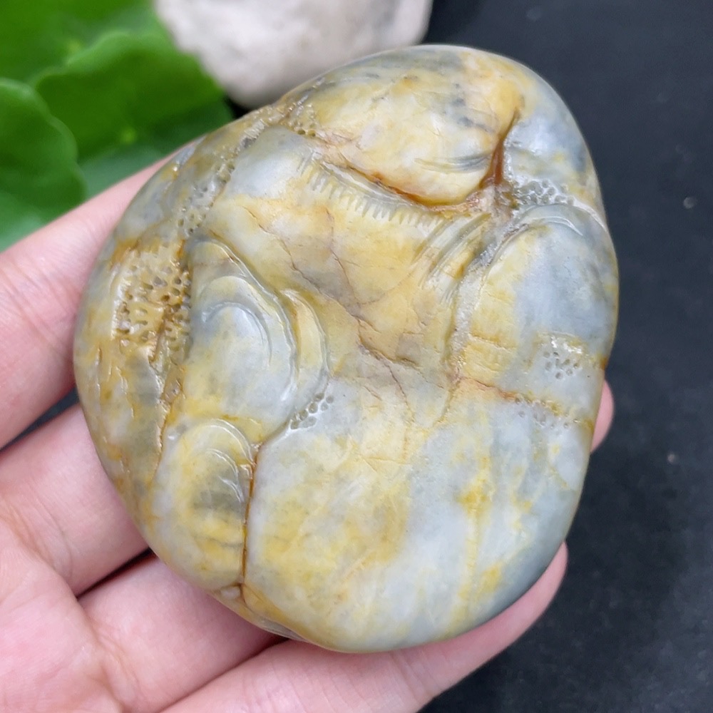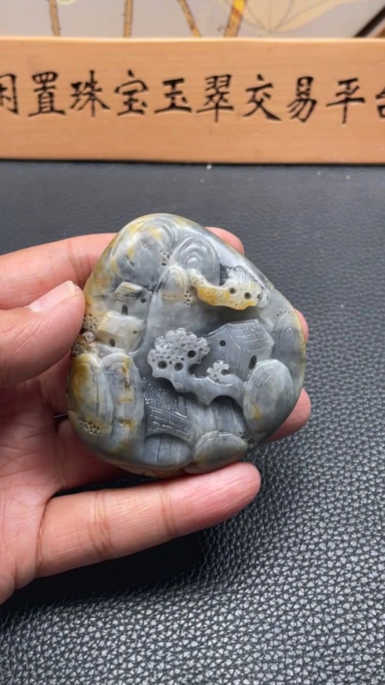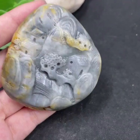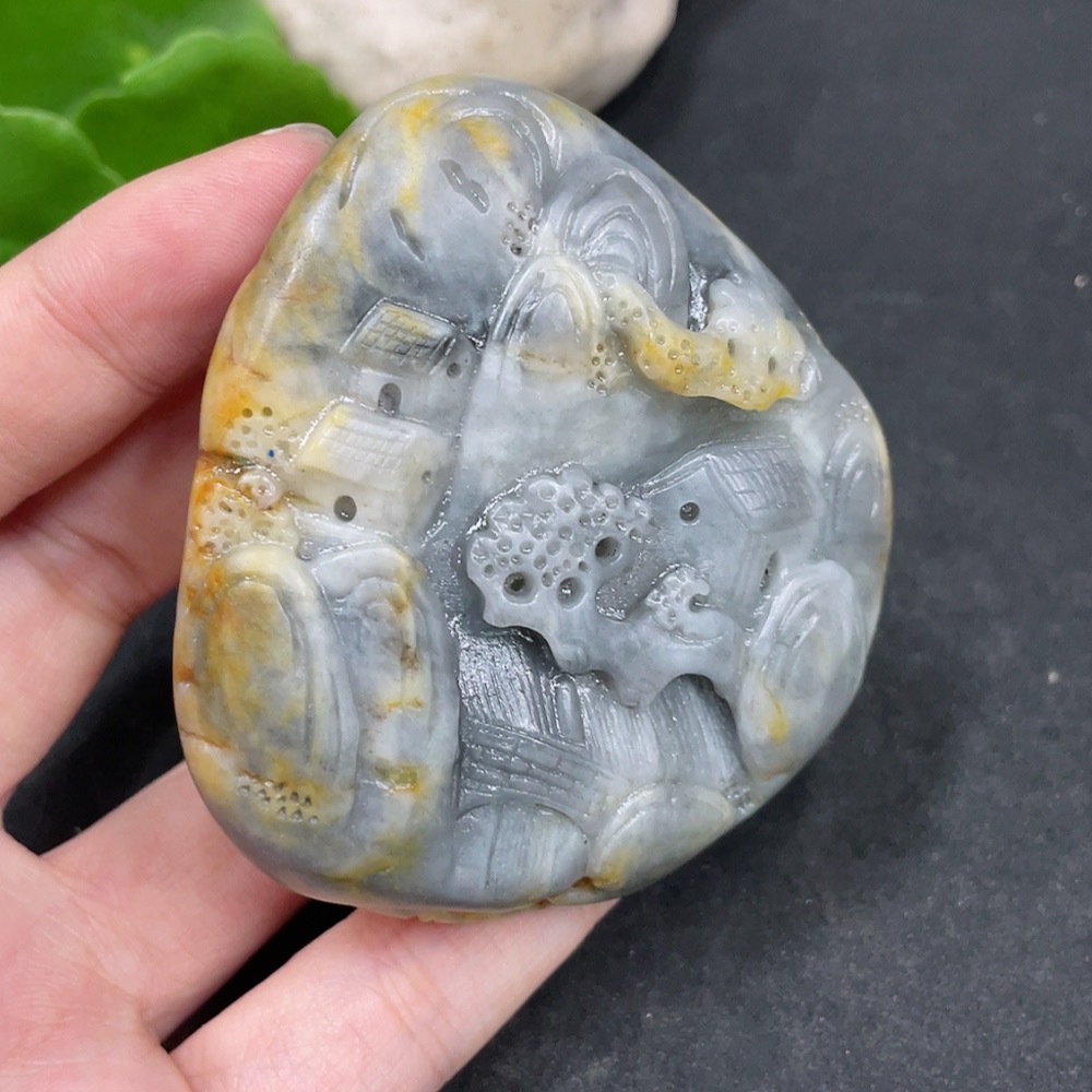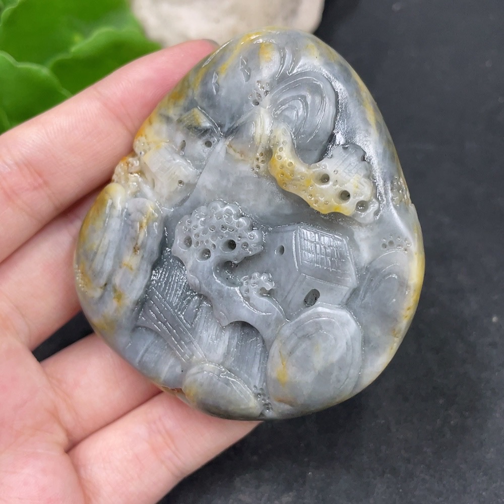 Hetian Jade Handheld Carving - Landscape, Undetermined Skin Color Origin, Contains Other Mineral Components, Total Weight Approximately 131.3g