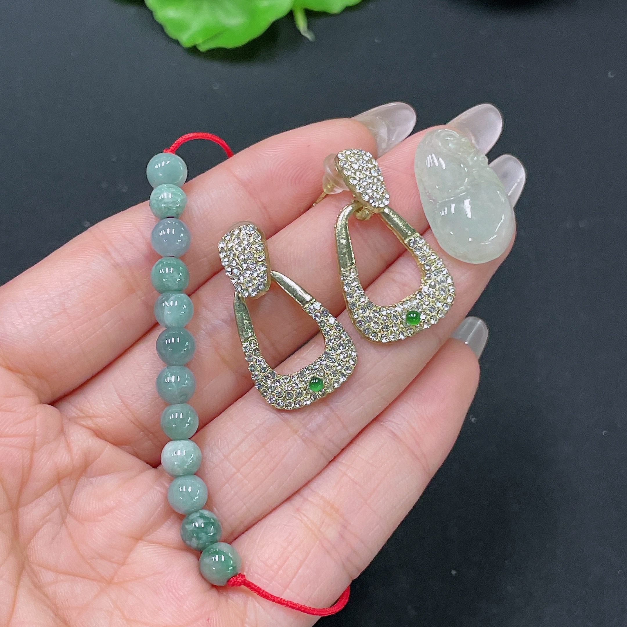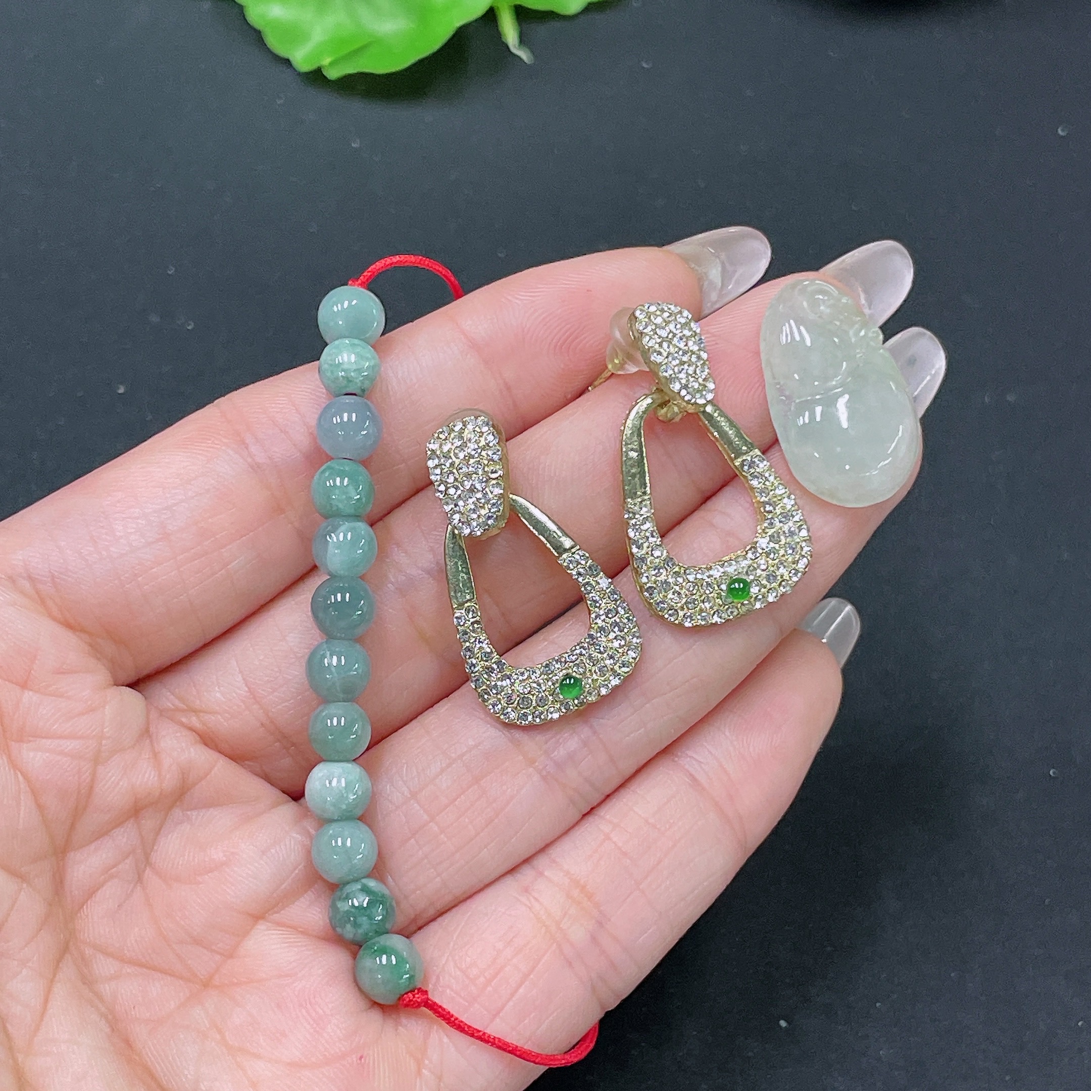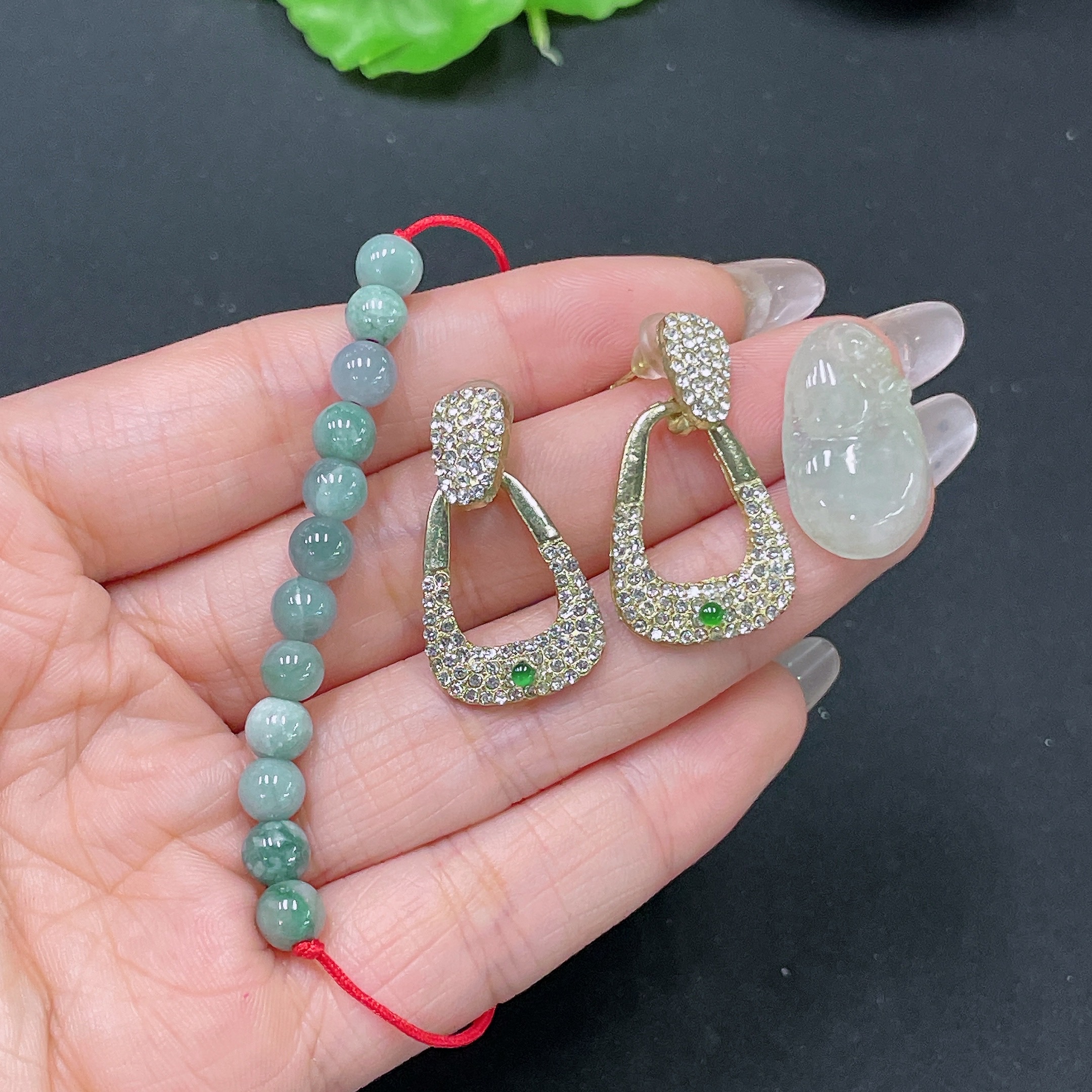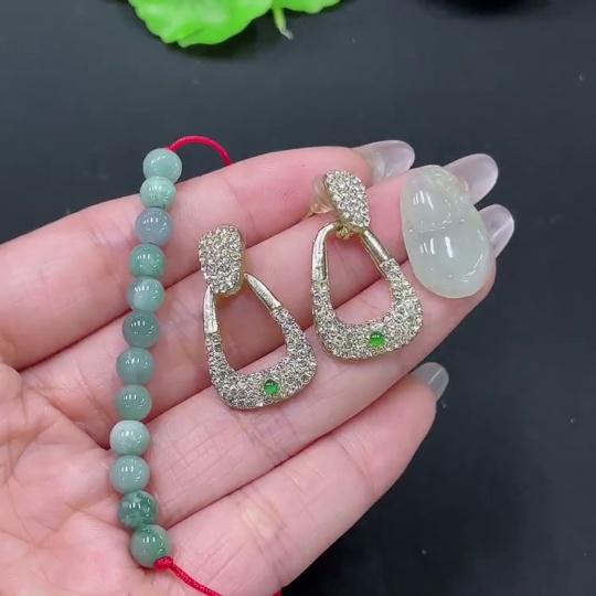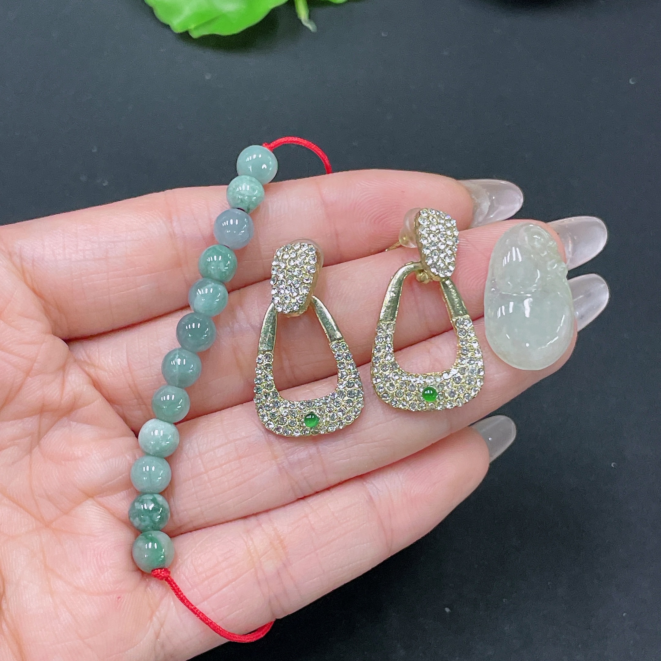 Jadeite Hand Bracelet/Inlaid Earrings Non-Gold