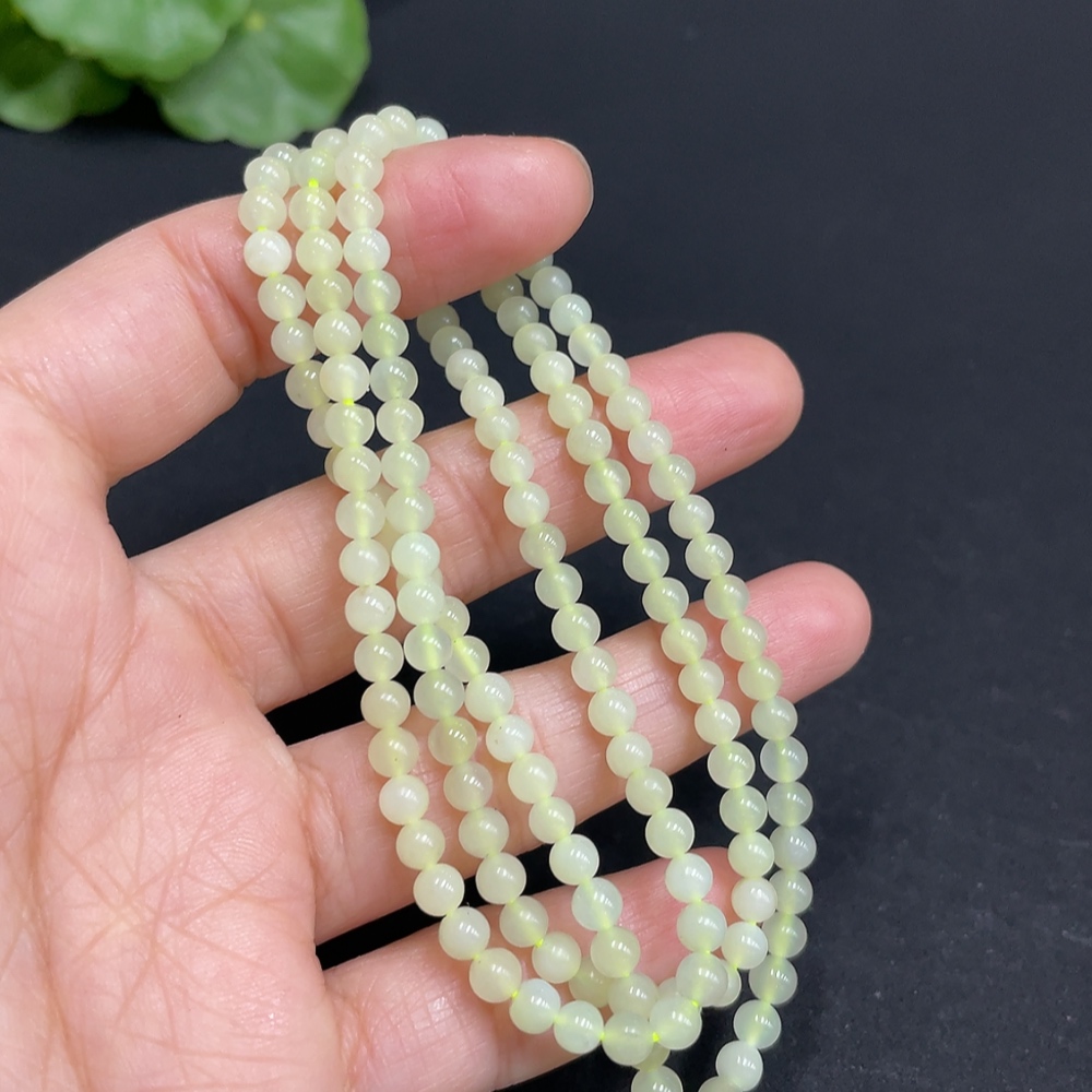 Hetian Jade Bead Necklace, approx. 3.8mm, total weight approx. 14.3g