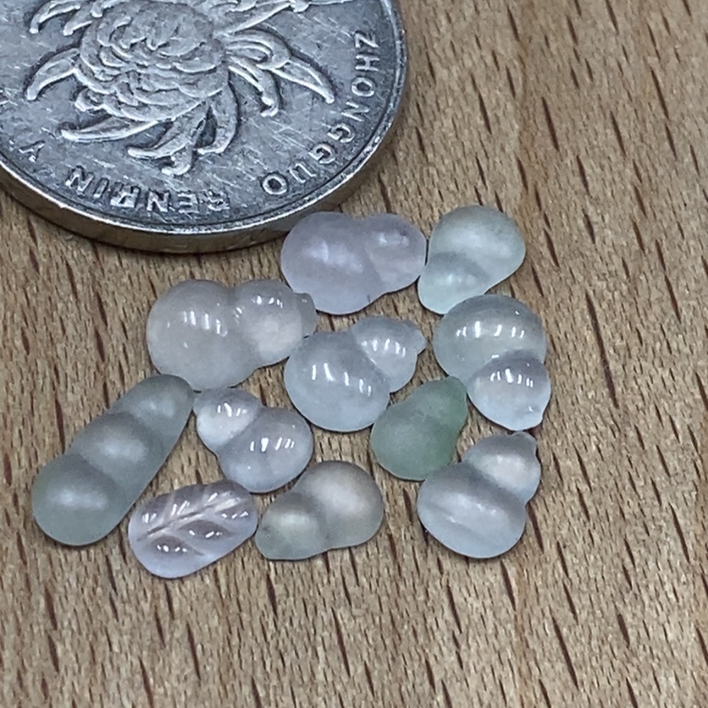 Jadeite Gourd/Leaf Inlaid Pieces Sell as a Lot Rough Pieces Total Weight Approx. 1.95g Including Small Bag