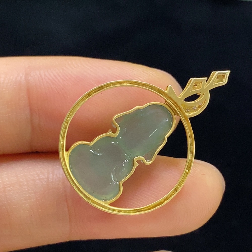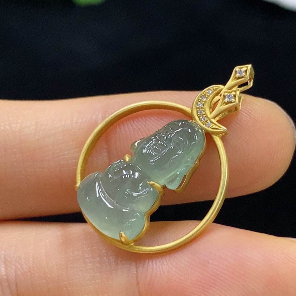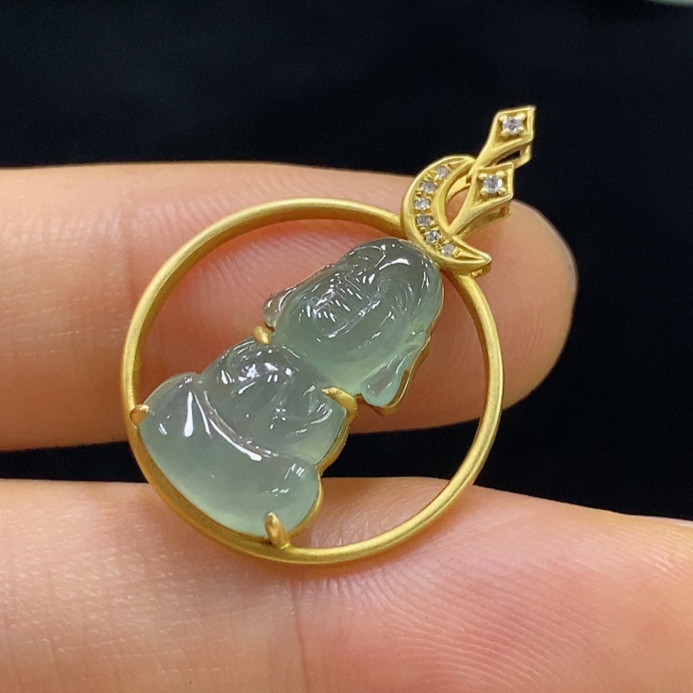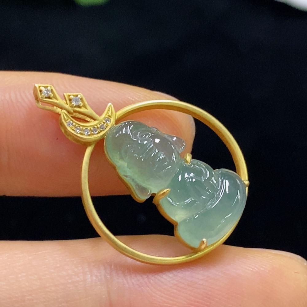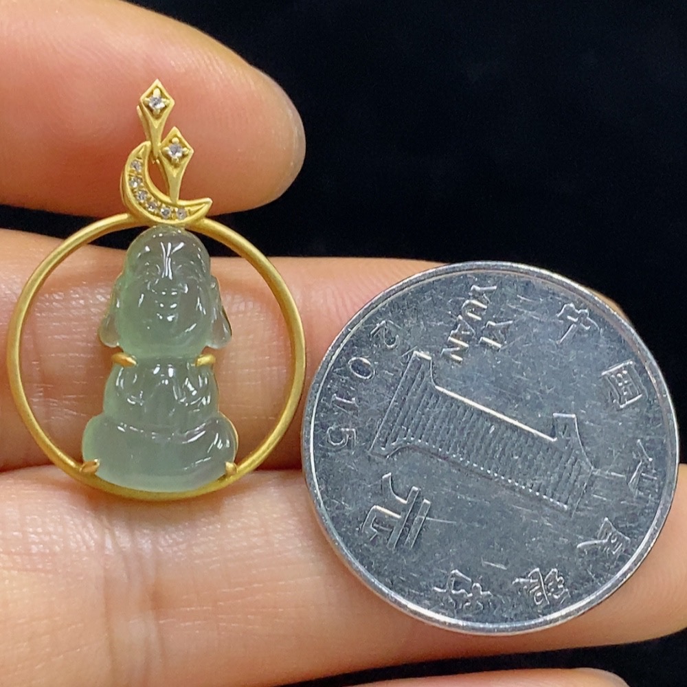 Jadeite Buddha Pendant Set in 18k Gold with Diamond Accents, Total Weight Approximately 3 Grams