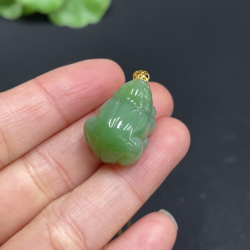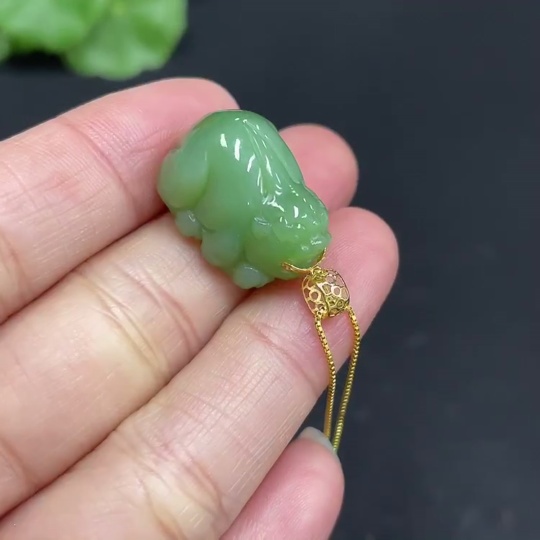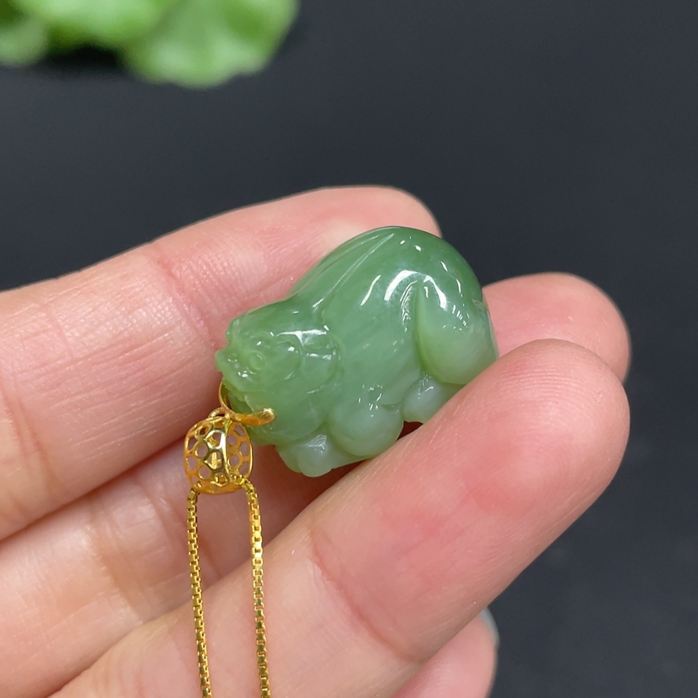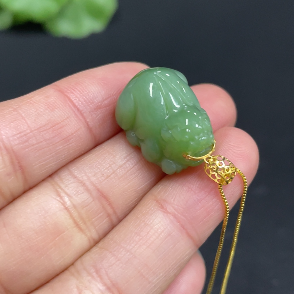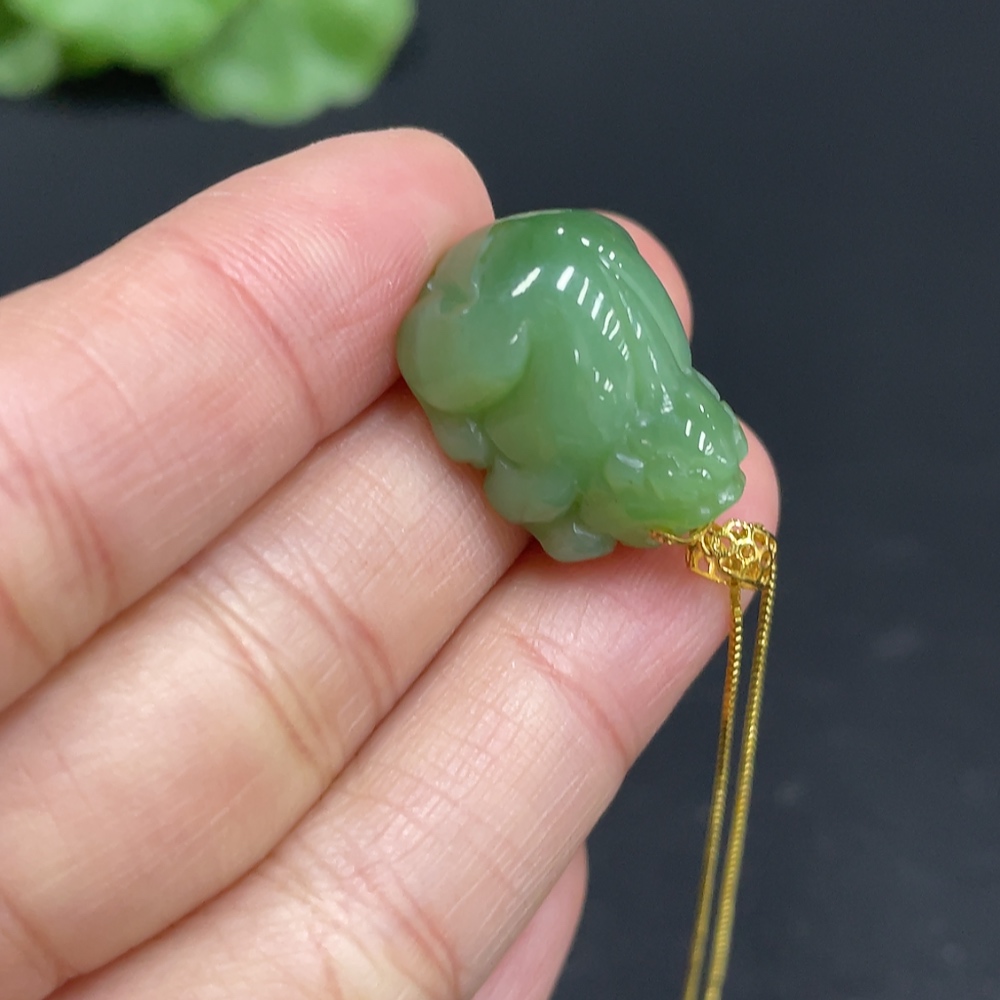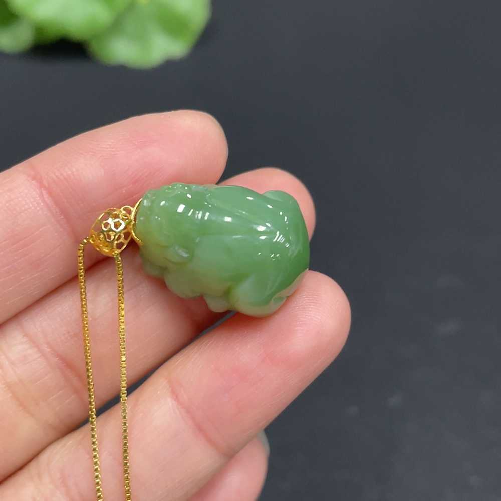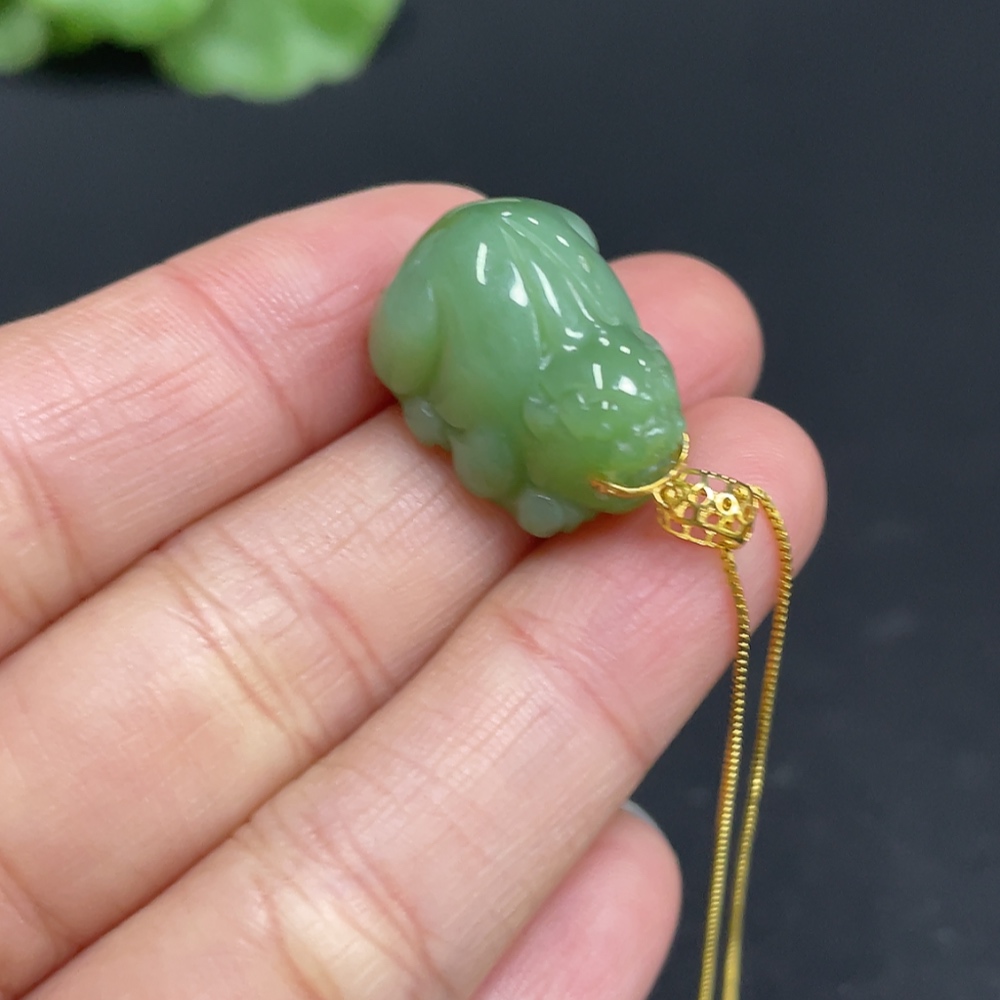 Hetian Jade Pendant Pi Xiu with 18K Gold Clasp and Non-Gold Chain (Total Weight Approx. 6.6g Including Chain)