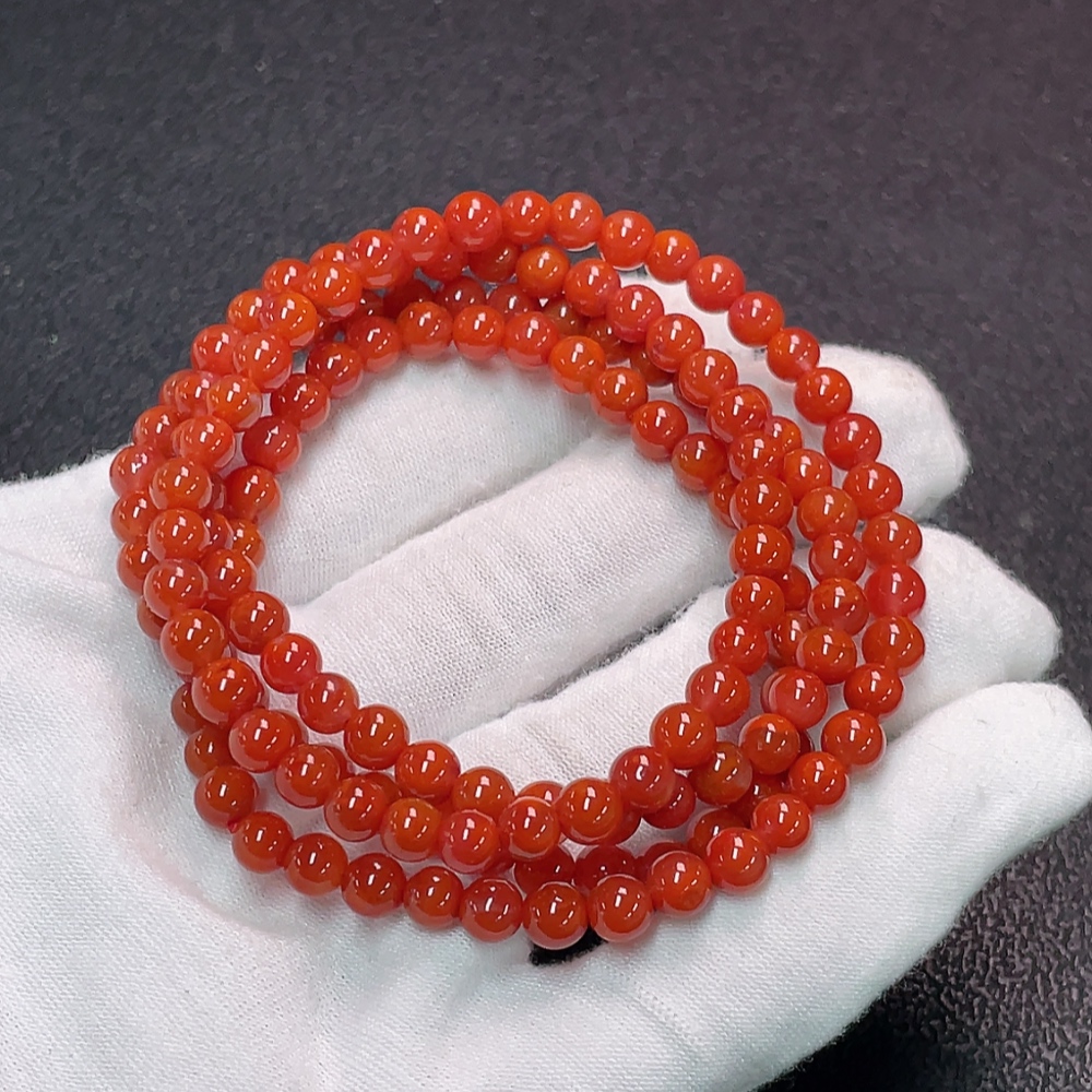 South Red Agate Bead Strand with Visible Organic Matter, Total Weight Approx. 27.26g, Size About 5mm