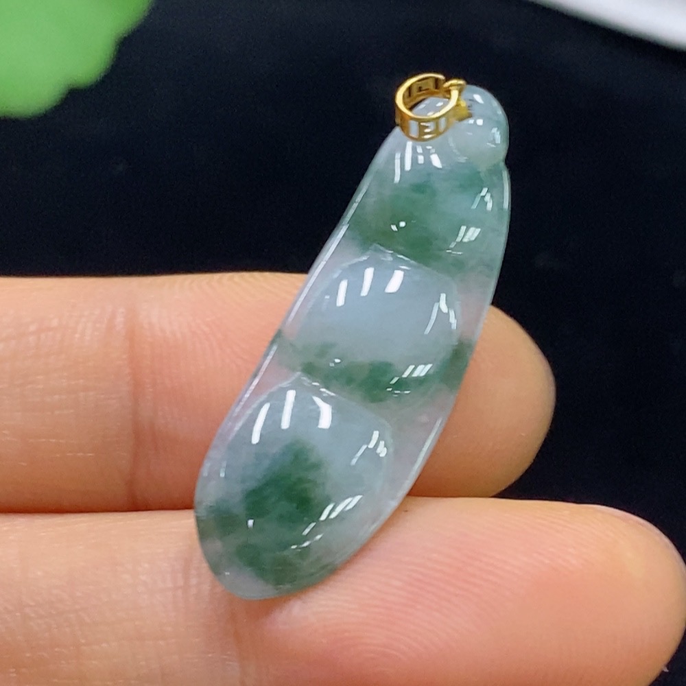 Jadeite Lucky Bean Pendant 18k Total Weight Approx. 2.83g