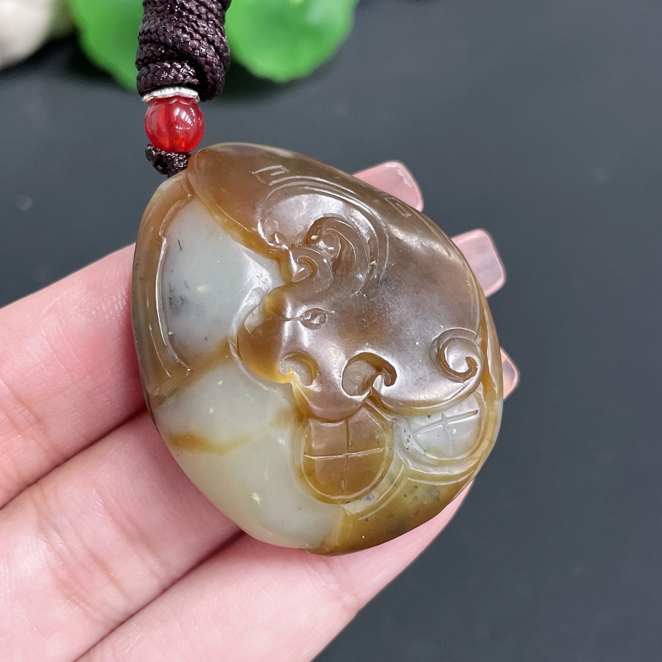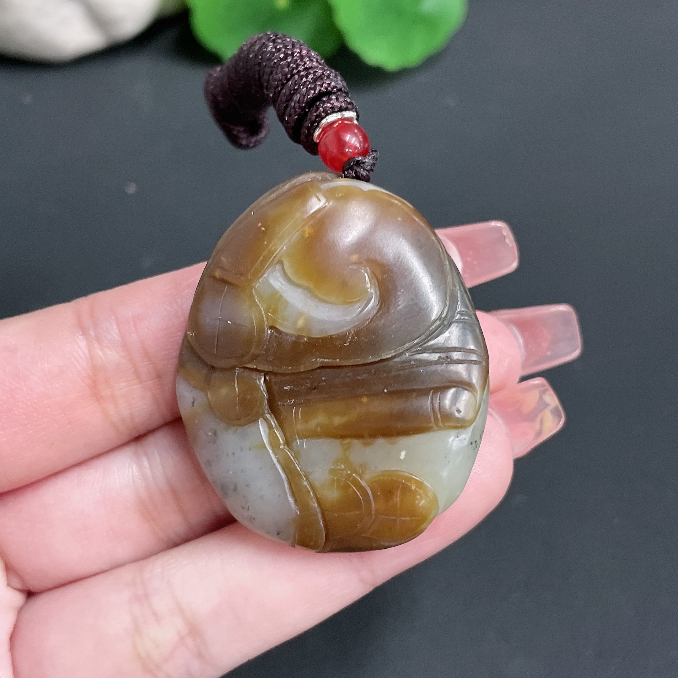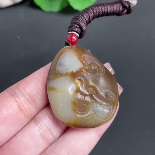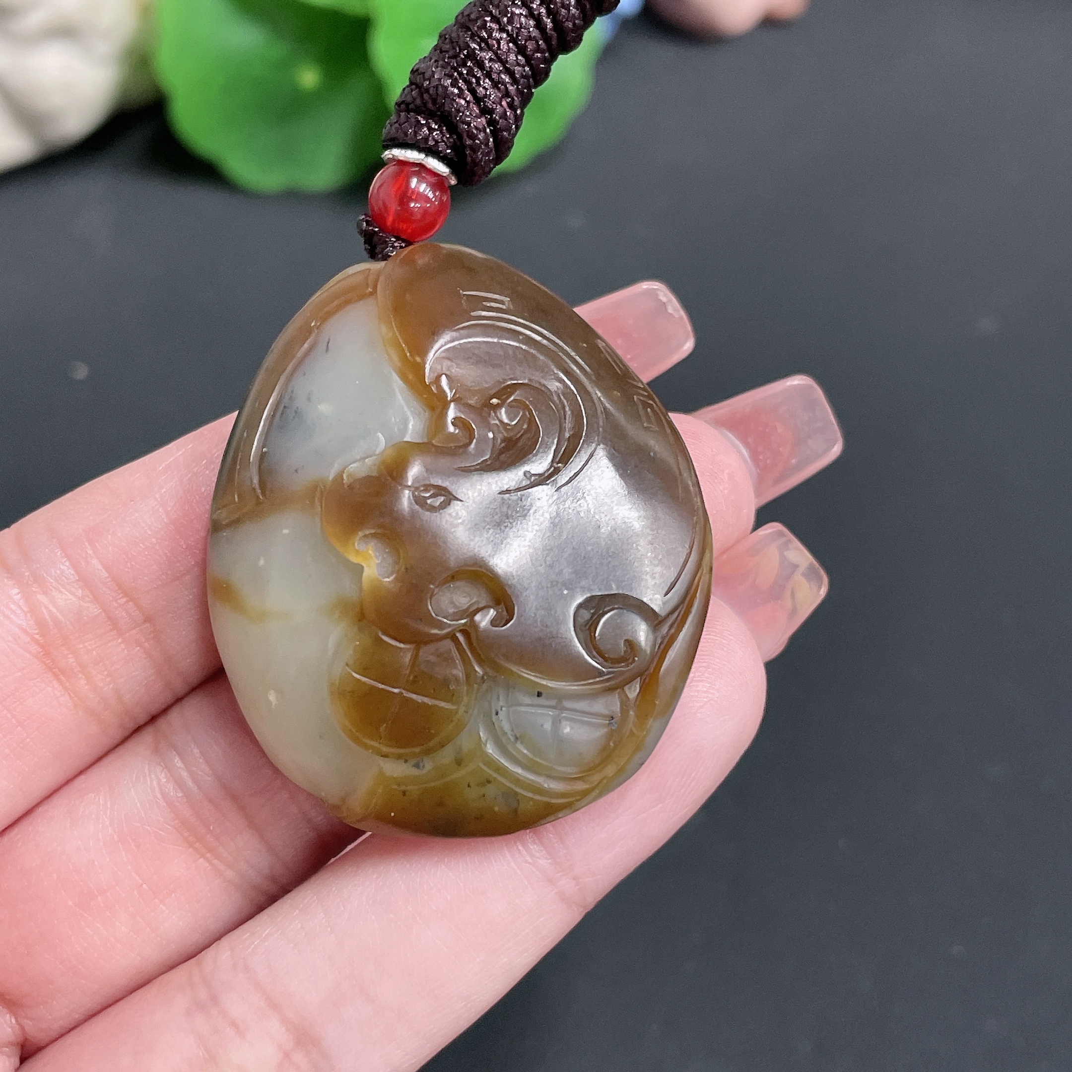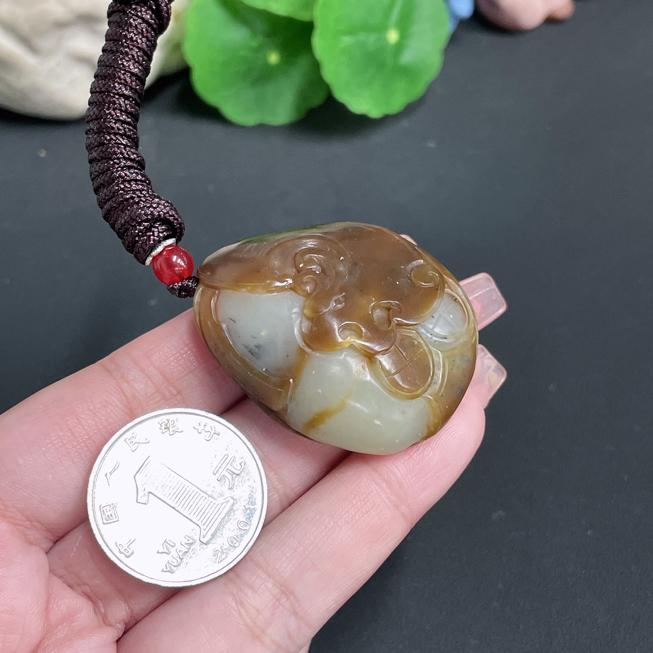 Hetian Jade Pendant Antique Style with Cord Total Weight 34.83g